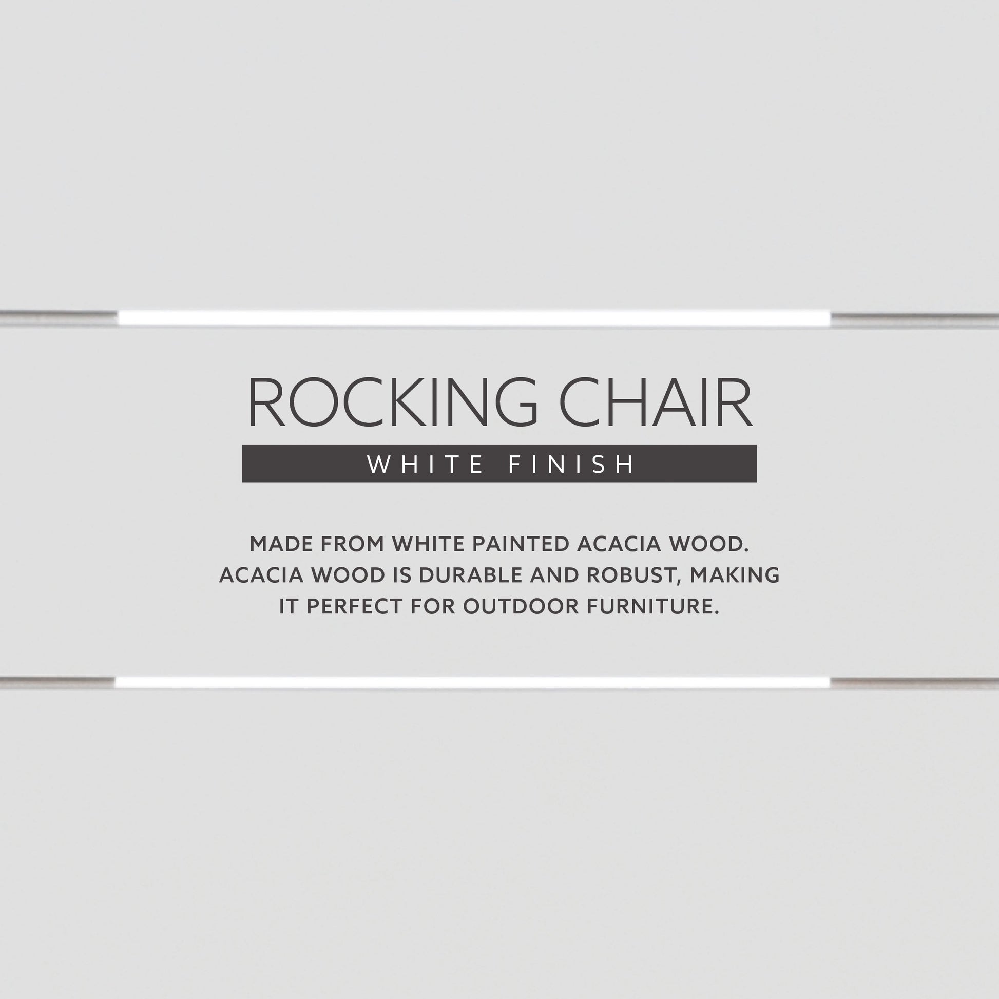 Laissez vos soucis s'envoler sur ce fauteuil à bascule d'extérieur classique. Fabriqué en bois d'acacia robuste, avec une élégante finition blanche ou noire, ce meuble dégage un charme côtier qui illuminera tout espace extérieur. Le dossier à lattes, l'assise profonde et les larges accoudoirs offrent un confort ergonomique, tandis que le doux mouvement de bascule invite à la détente sur une terrasse, un porche ou un balcon. Naturellement résistant à l'humidité, aux UV, à la pourriture et aux termites, le bois d'acacia vous garantit de nombreuses années d'utilisation. Que ce soit pour savourer un café au lever du soleil ou profiter d'une douce soirée, ce fauteuil à bascule apportera beauté et sérénité à votre espace extérieur.