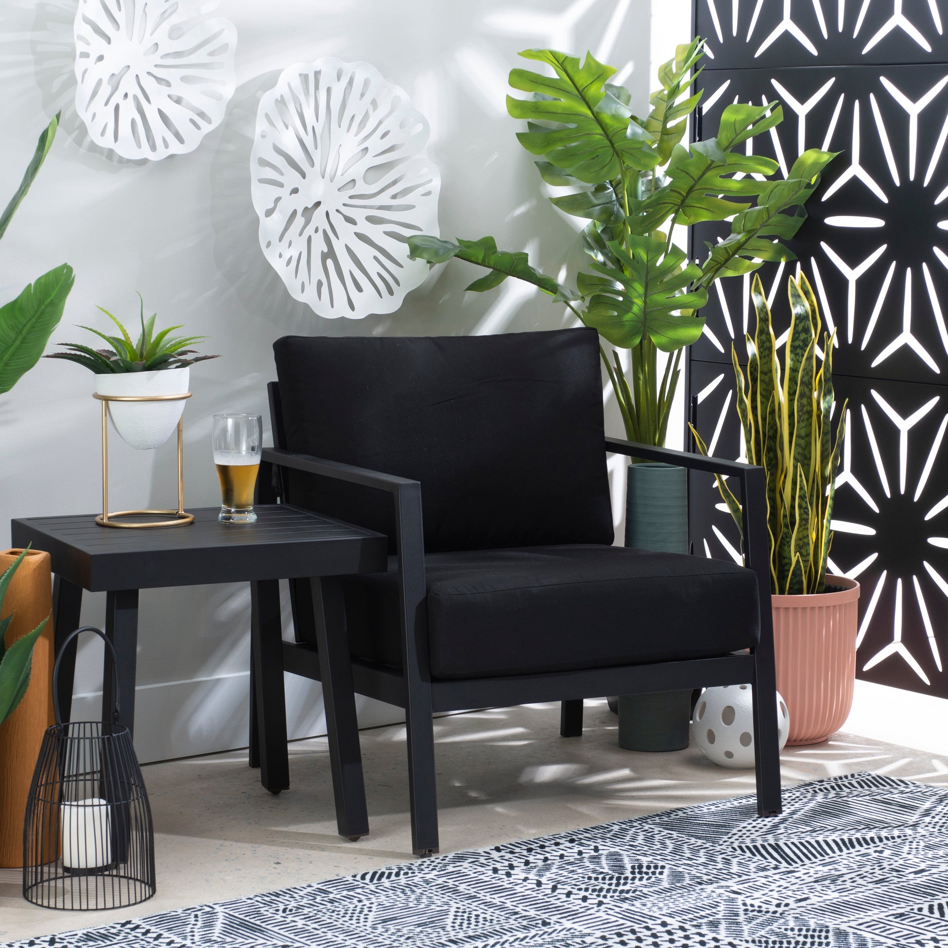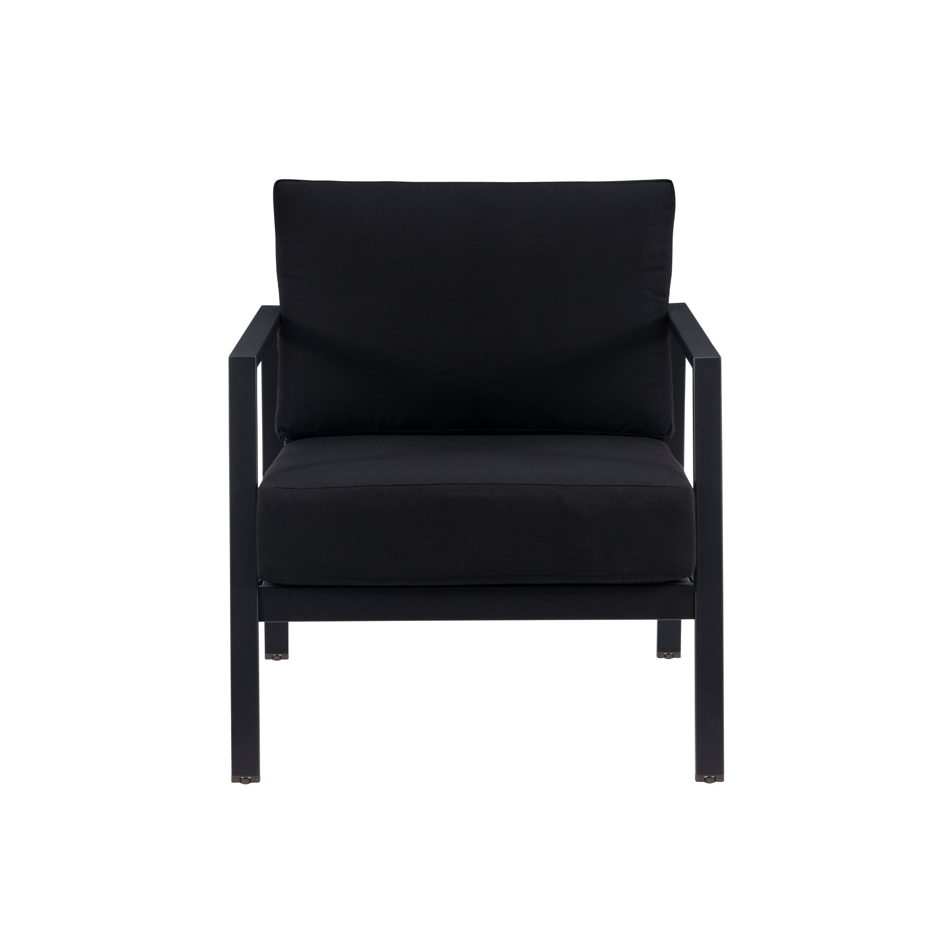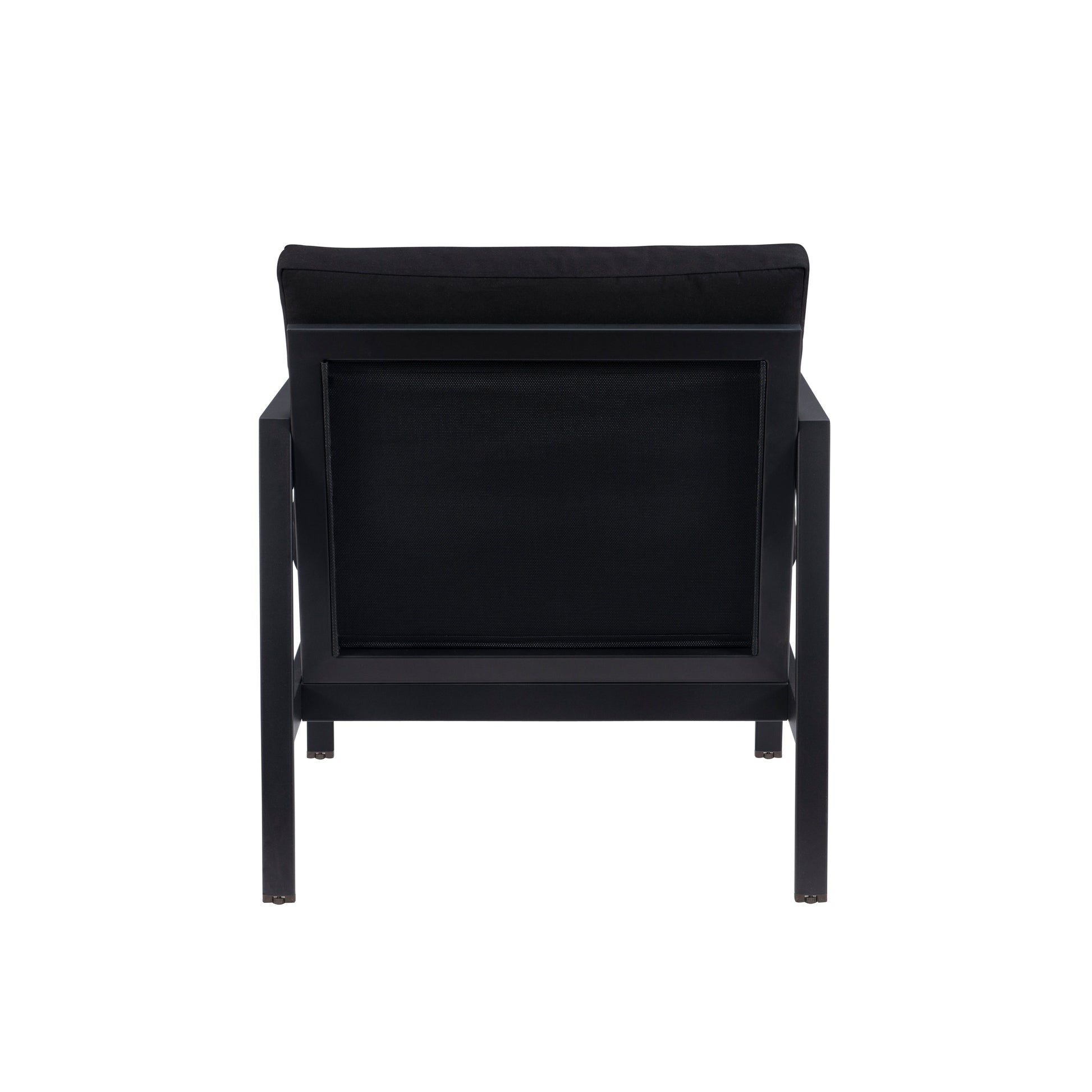 Élégant, confortable et conçu pour l'extérieur, ce fauteuil moderne est l'accessoire idéal pour votre terrasse, votre véranda ou votre toit-terrasse. Sa structure en aluminium noir thermolaqué allie robustesse et légèreté, facilitant son déplacement tout en conservant sa solidité. Les coussins moelleux, revêtus de tissu Sunbrella haut de gamme, résistent à la décoloration, aux taches et aux moisissures, préservant ainsi leur éclat saison après saison. Compact et confortable, ce fauteuil combine un style intemporel et une conception nécessitant peu d'entretien, pour un indispensable de votre extérieur.