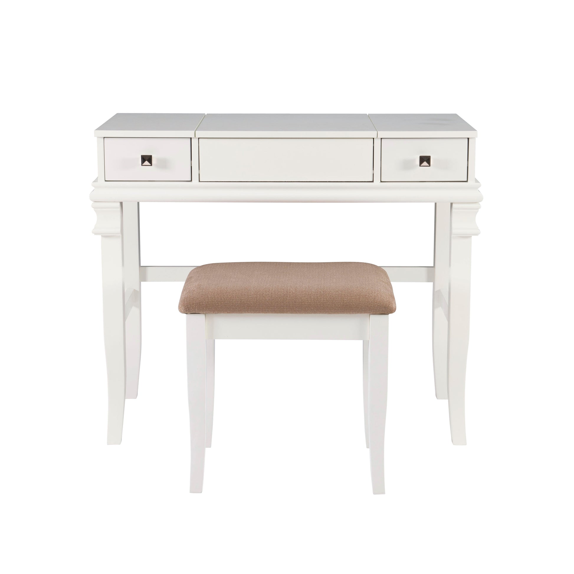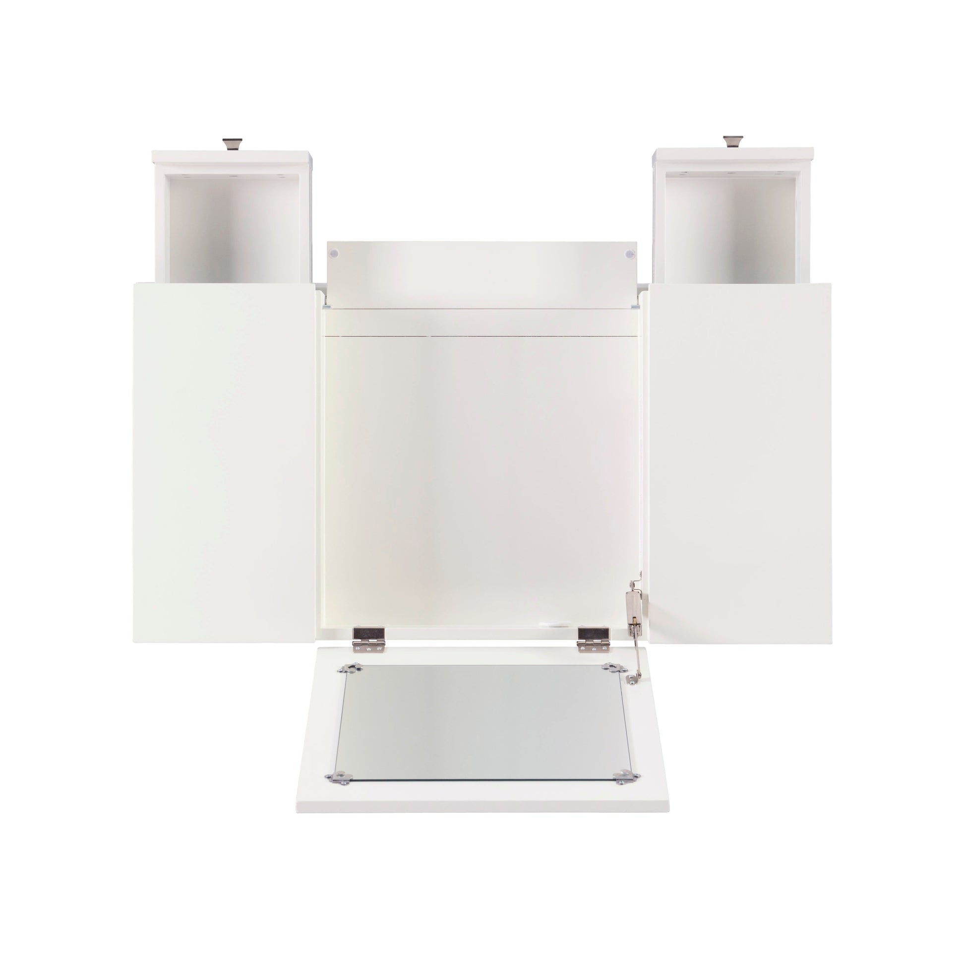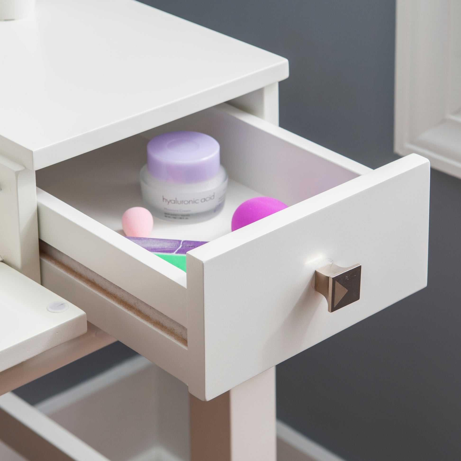 - Rangement fonctionnel : Un miroir rabattable et de multiples tiroirs permettent de ranger soigneusement vos produits de beauté.