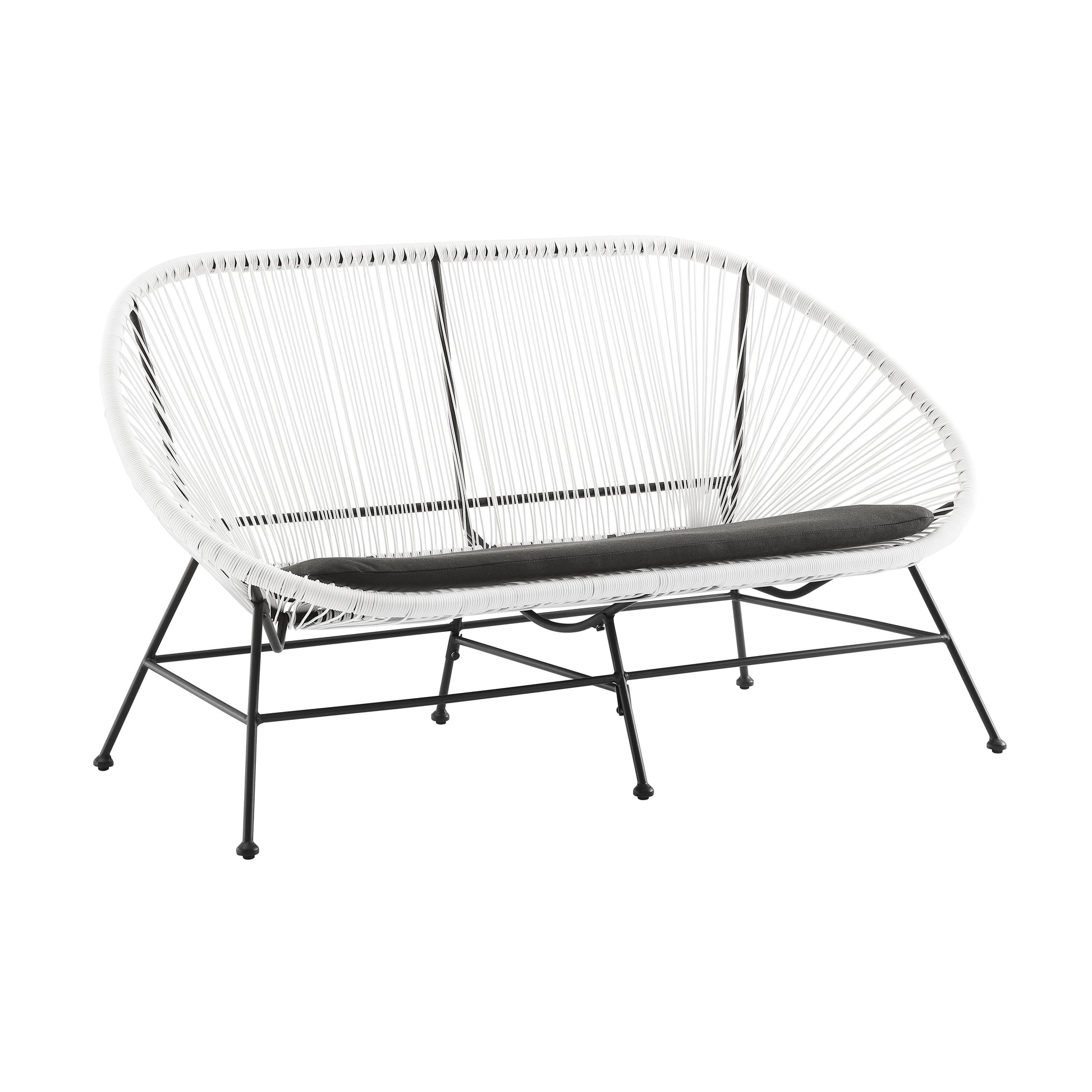 Confort et style modernes pour deux ! Ce canapé deux places en osier tressé, véritable pièce maîtresse, est idéal pour les terrasses et les toits-terrasses contemporains. Son tressage en corde blanche résistante aux intempéries est tendu par une structure en acier se prolongeant par des pieds évasés pour une stabilité optimale. Une finition noire thermolaquée complète ce coloris bicolore et offre une protection antirouille durable. Léger et respirant, ce canapé s'inspire du design du milieu du siècle dernier, tout en répondant aux exigences de confort actuelles.