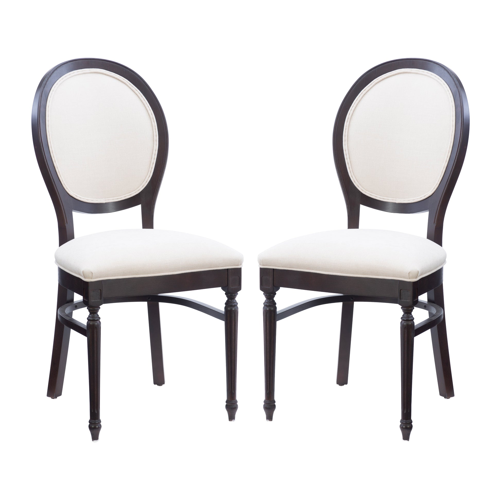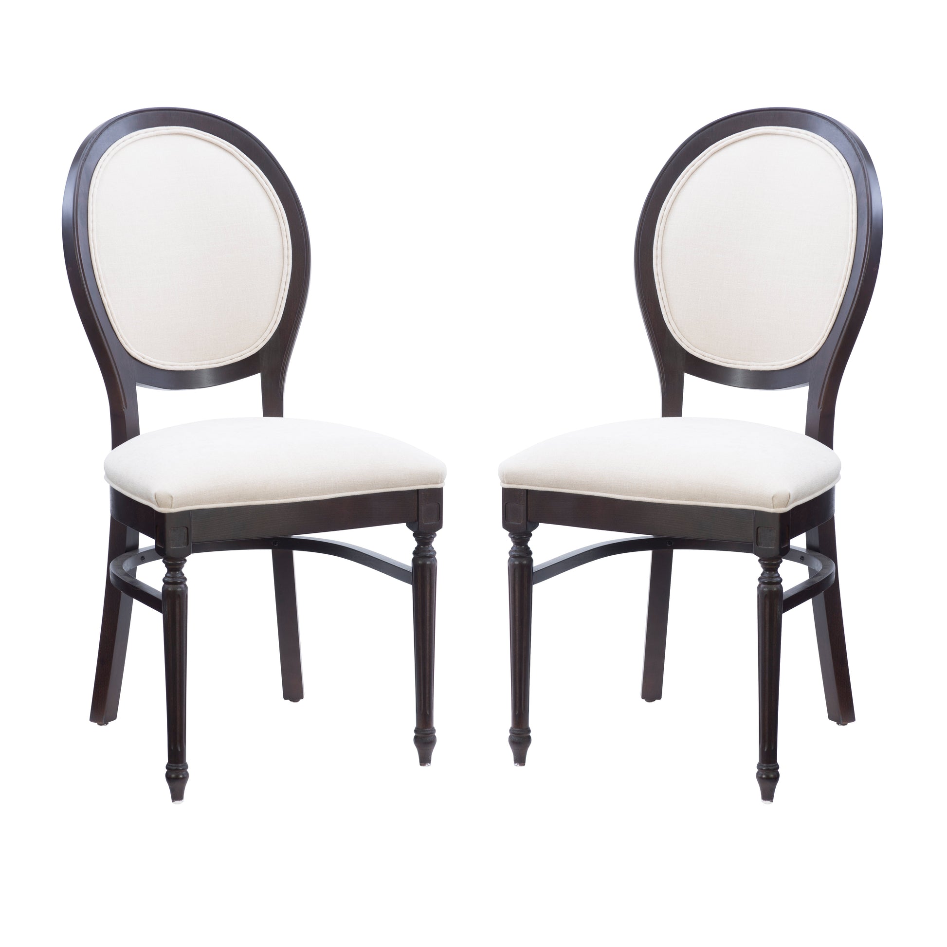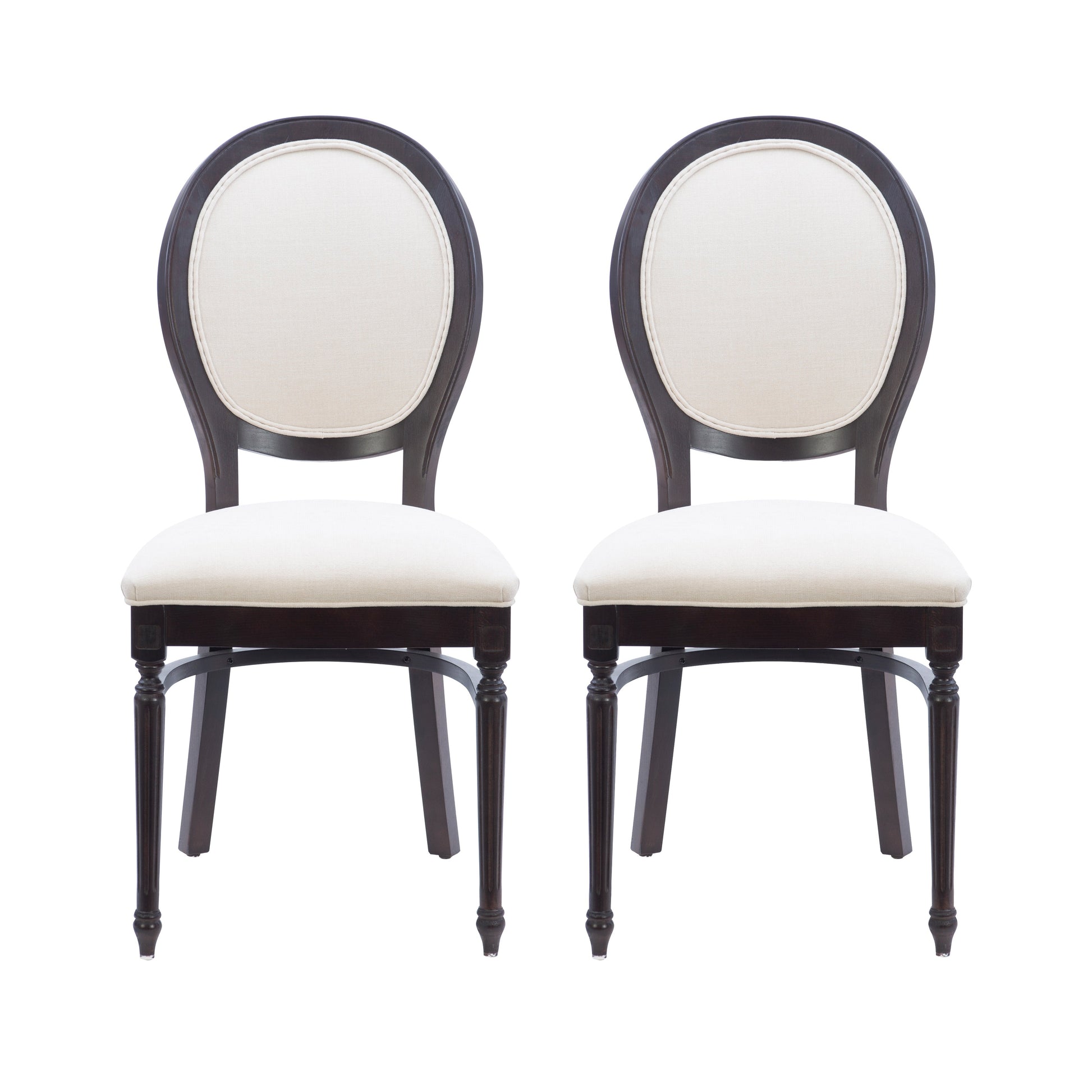En hommage au design intérieur français de l'époque Louis XVI, ces deux chaises d'appoint dégagent une élégance indéniable grâce à leurs lignes épurées. Le dossier ovale offre un excellent maintien grâce à un rembourrage aux teintes neutres, assorti à l'assise généreusement garnie. Une teinture brun foncé est appliquée sur les structures en hêtre massif, créant un effet bicolore du plus bel effet. Pour une protection durable contre l'usure, une couche de vernis transparent est également appliquée. Livrées entièrement montées, ces chaises sont prêtes à sublimer votre salle à manger dès leur réception.