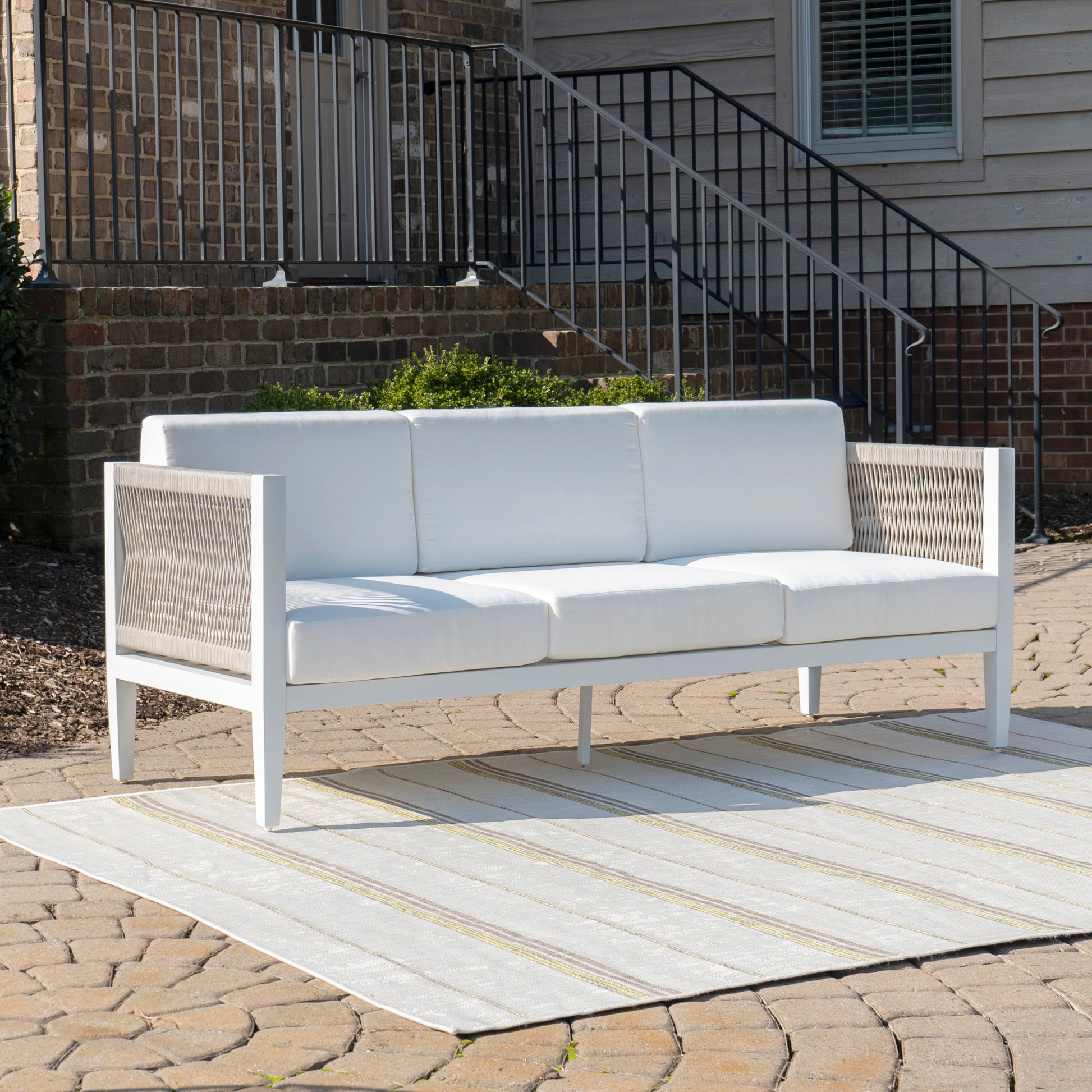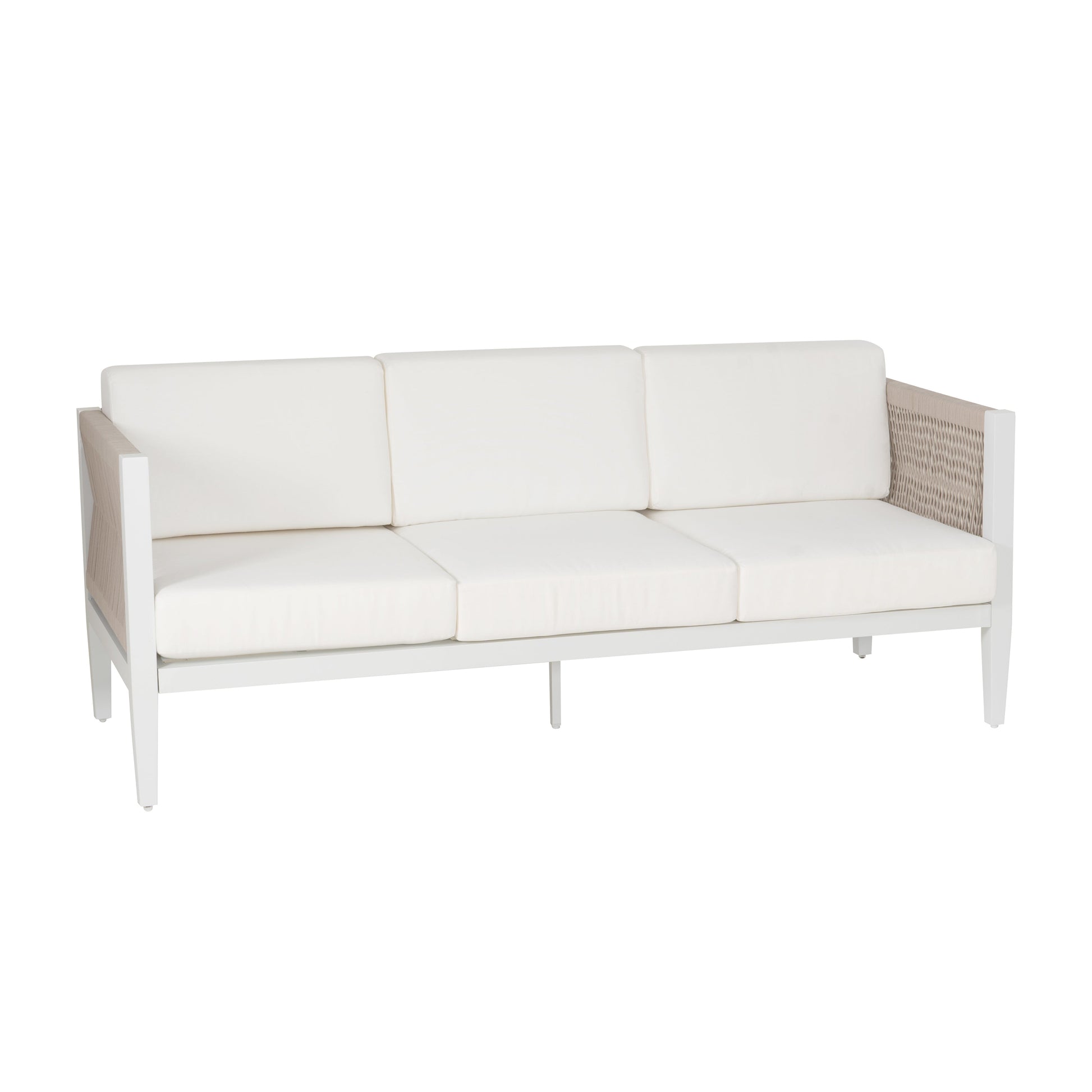 Offrez-vous une parenthèse de sérénité en plein air avec notre canapé d'extérieur 3 places, une fusion exquise de sophistication et de robustesse. Sa structure légère en aluminium, revêtue d'une élégante finition laquée blanche, s'harmonise parfaitement avec le tissu en polyester blanc immaculé. Profitez pleinement du grand air avec un canapé qui allie style et résistance aux intempéries. Supportant jusqu'à 306 kg et doté d'une hauteur d'assise confortable de 44,5 cm, ce canapé est l'atout idéal pour sublimer votre espace extérieur avec style et confort. Montage facile.