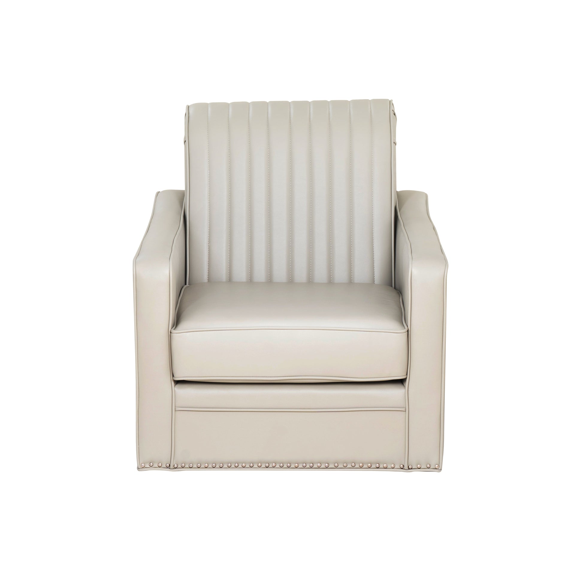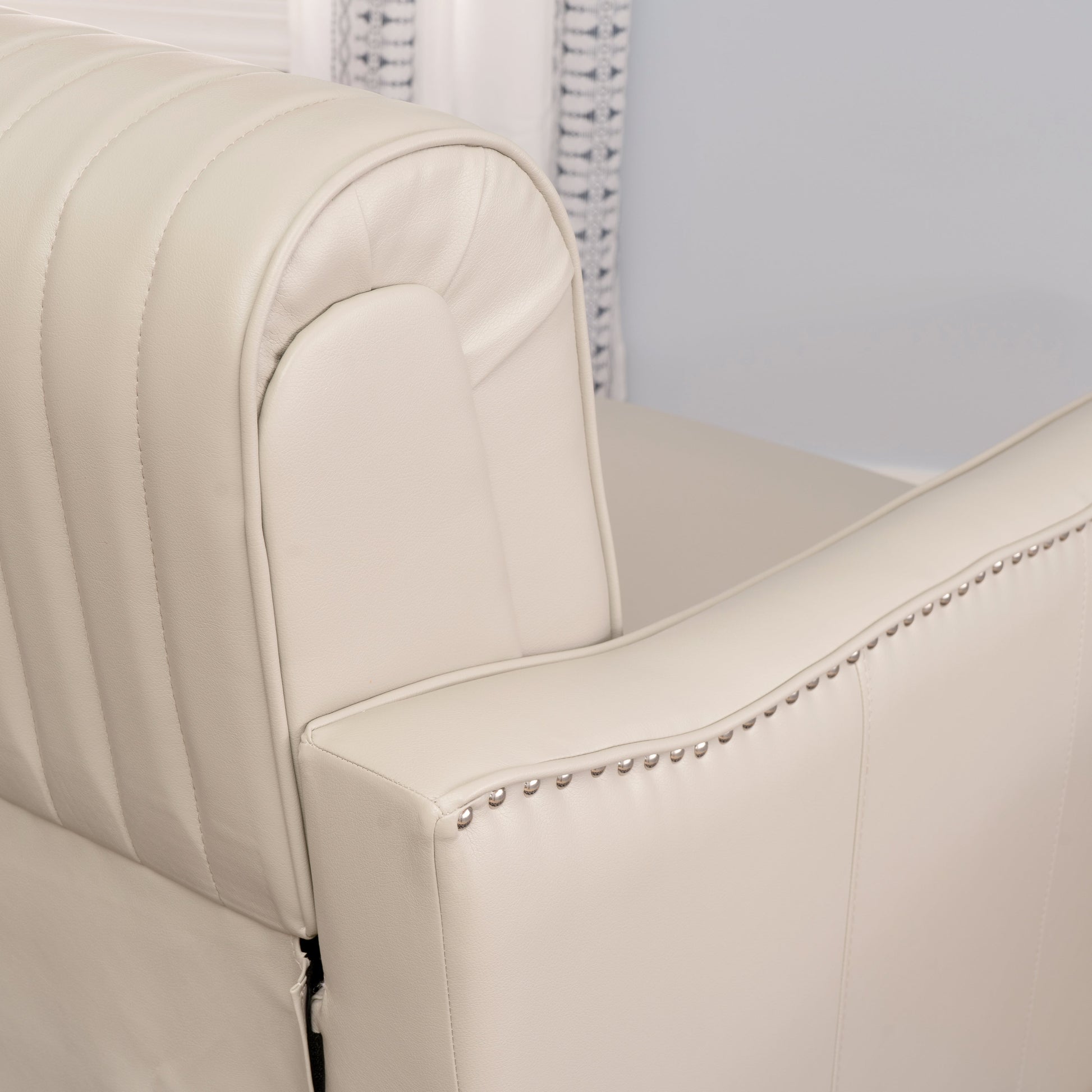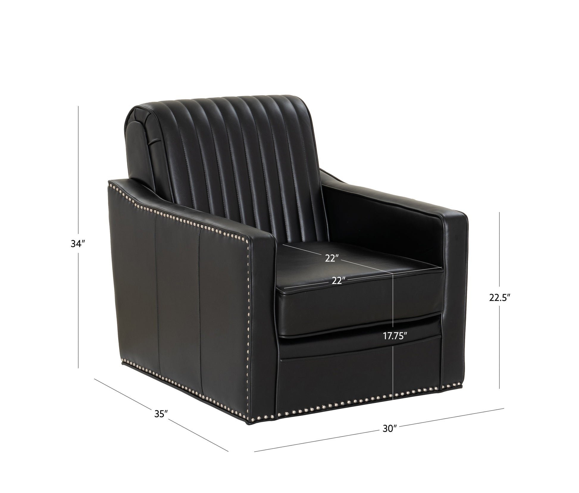 Attirez tous les regards et détendez-vous avec élégance grâce à ce fauteuil pivotant au design épuré. Revêtu de similicuir souple et orné de clous décoratifs en nickel, il allie sophistication moderne et confort au quotidien. Son piètement pivotant à 360° et son dossier capitonné profilé offrent à la fois élégance et fonctionnalité, tandis que ses coussins moelleux assurent un soutien durable. Disponible en noir, crème ou bleu marine, chaque finition apporte une touche raffinée unique, idéale pour sublimer un salon, un bureau ou un coin détente. Avec sa silhouette sculptée, sa structure robuste et son montage rapide, ce fauteuil allie durabilité et style haut de gamme, parfaitement adapté aux intérieurs contemporains.