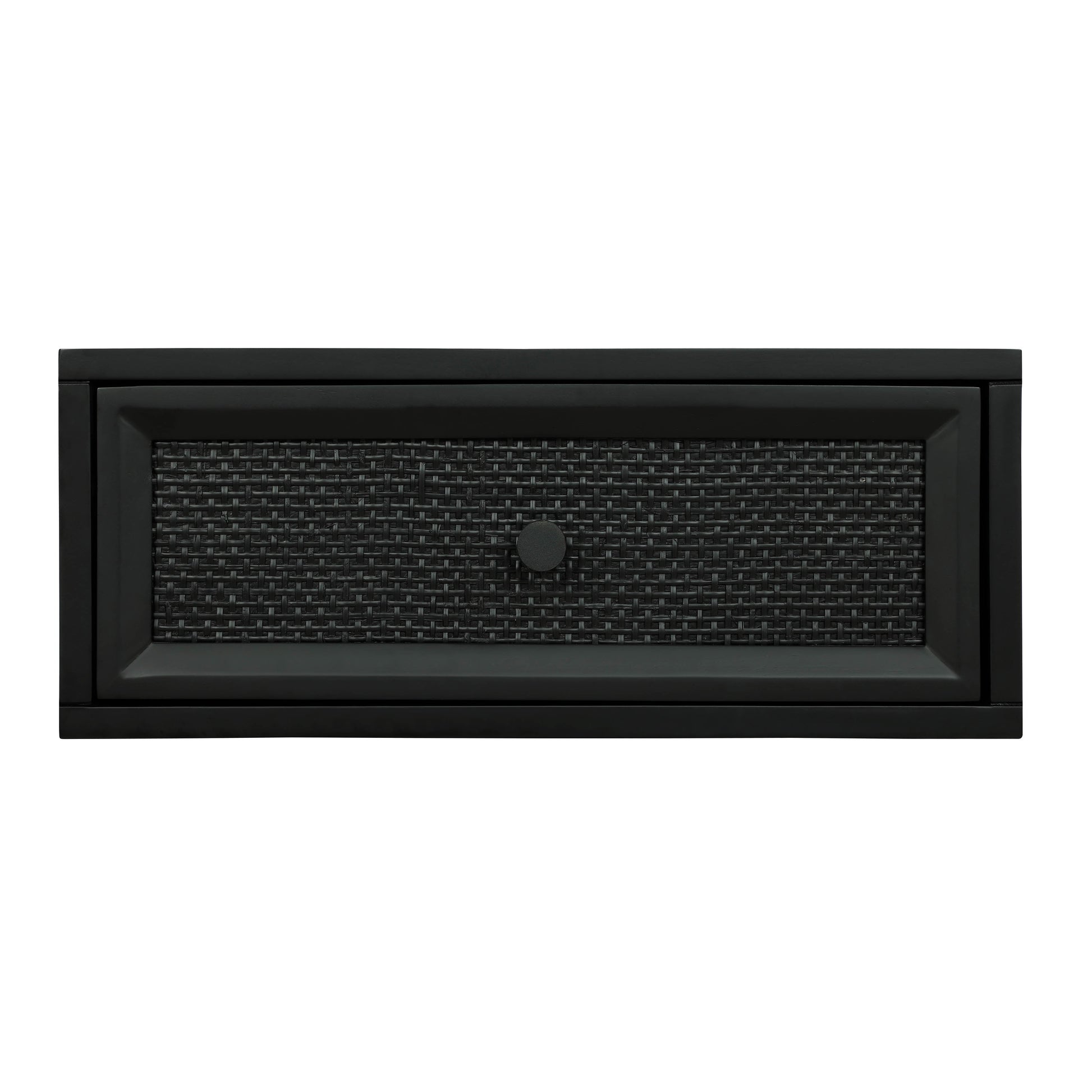- Façade de tiroir en rotin texturé : Un panneau en rotin tressé apporte une touche organique à la structure moderne et épurée. Sa texture naturelle crée une ambiance chaleureuse et contrastée, idéale pour les espaces modernes ou de style transitionnel.