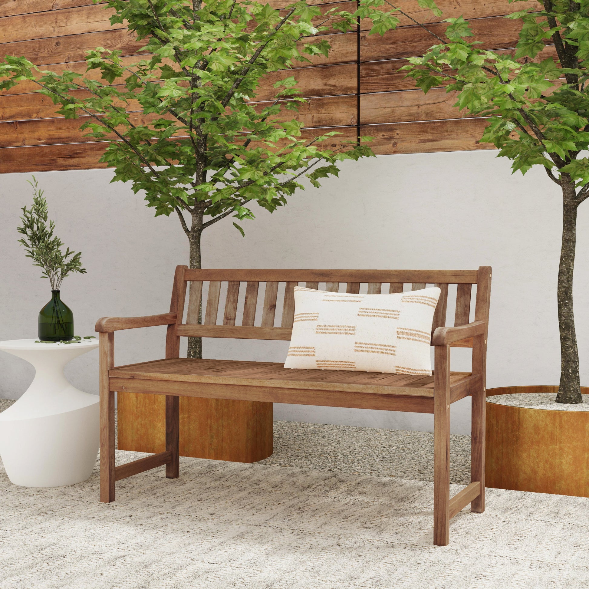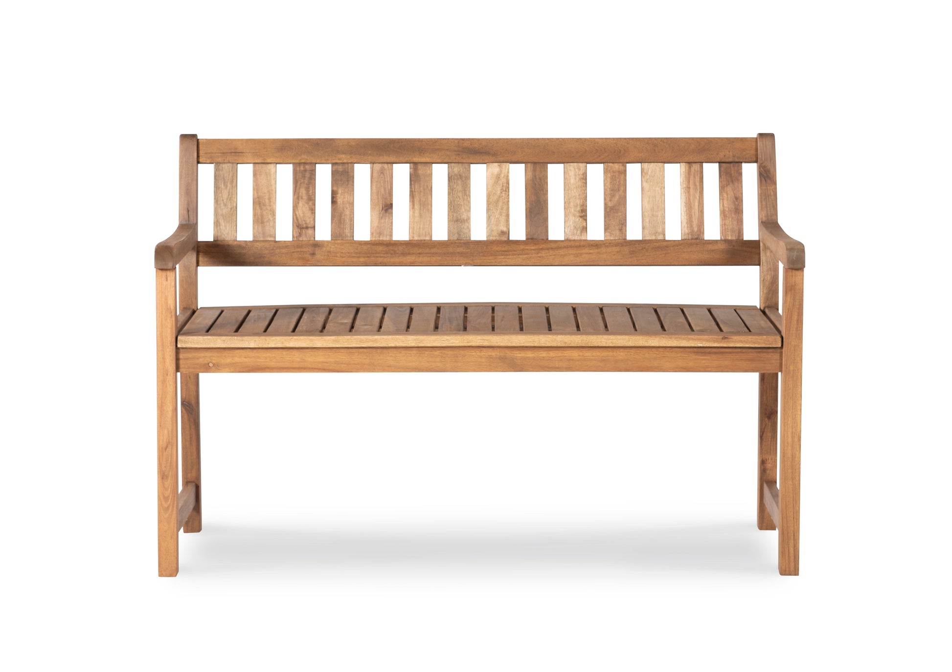 Fabriqué en bois d'acacia robuste et fini dans une chaleureuse teinte gland, ce banc d'extérieur apporte une touche classique et une détente durable aux terrasses, vérandas et allées de jardin. Son assise et son dossier à lattes favorisent la circulation de l'air par temps chaud, rappelant les silhouettes traditionnelles des bancs de parc, tandis que ses accoudoirs légèrement incurvés invitent à la détente. Naturellement résistant aux intempéries et facile d'entretien, il peut accueillir confortablement deux personnes – idéal pour savourer un café le matin, lire l'après-midi ou discuter entre amis. Placez-le sous un arbre ou près de votre table de jardin pour créer un espace extérieur accueillant.