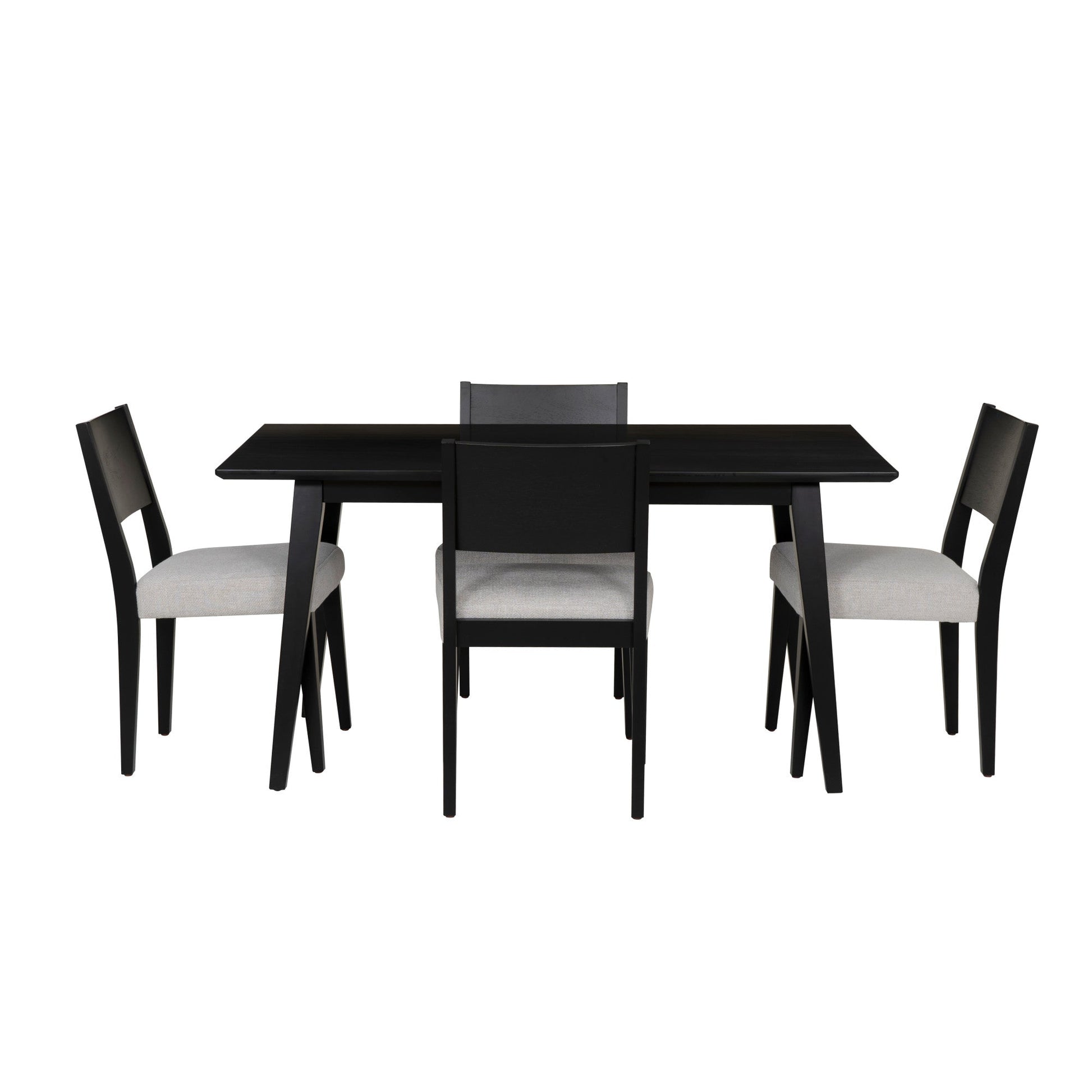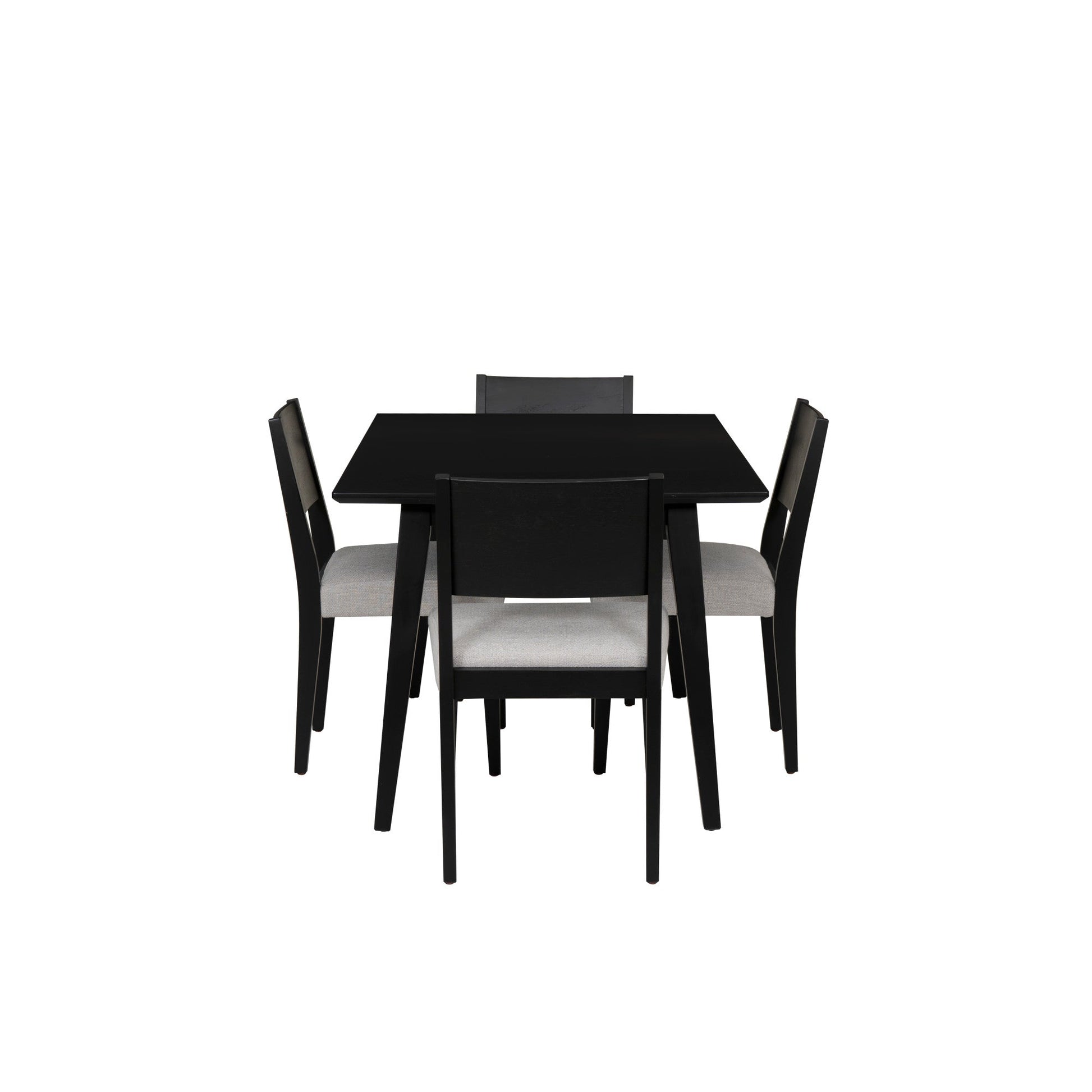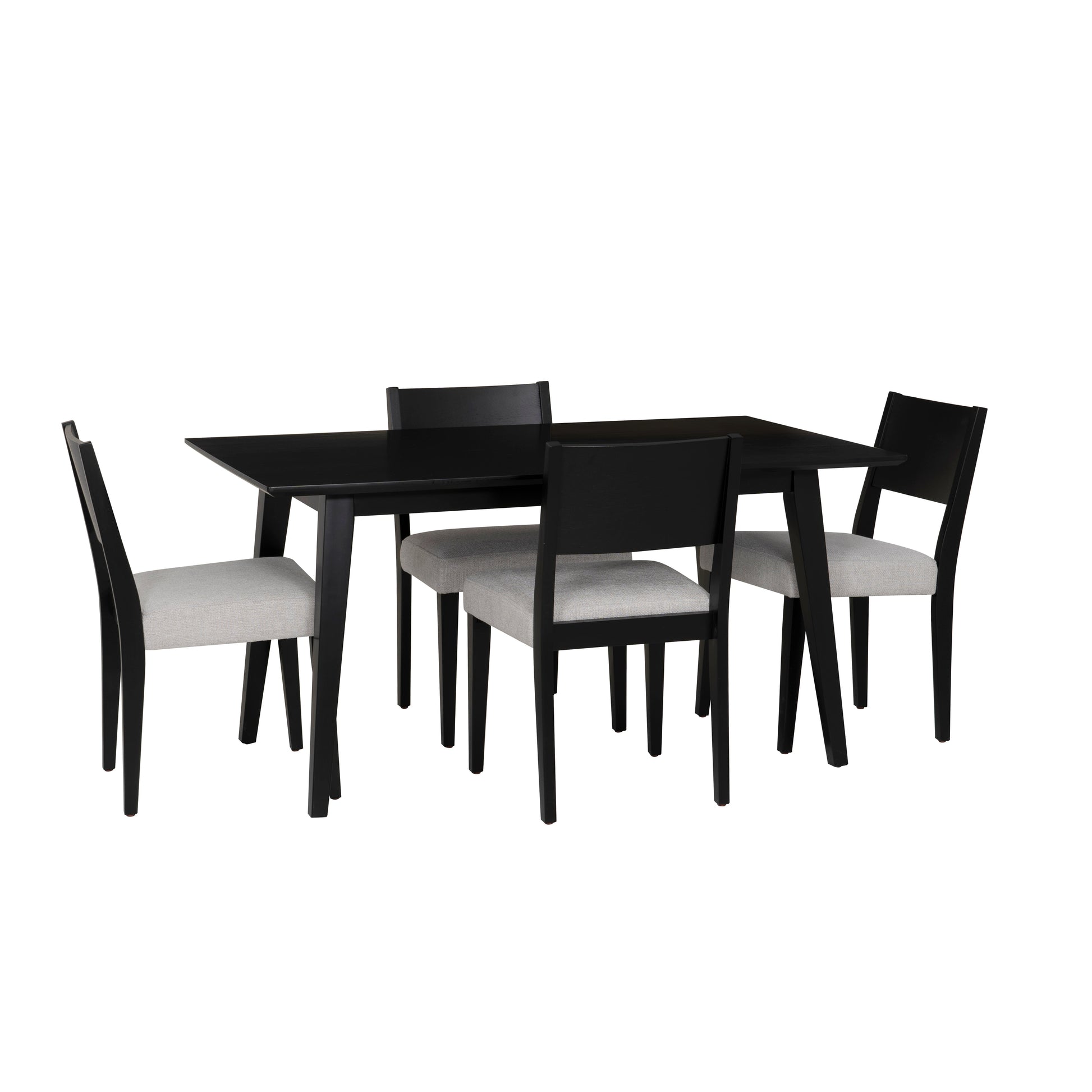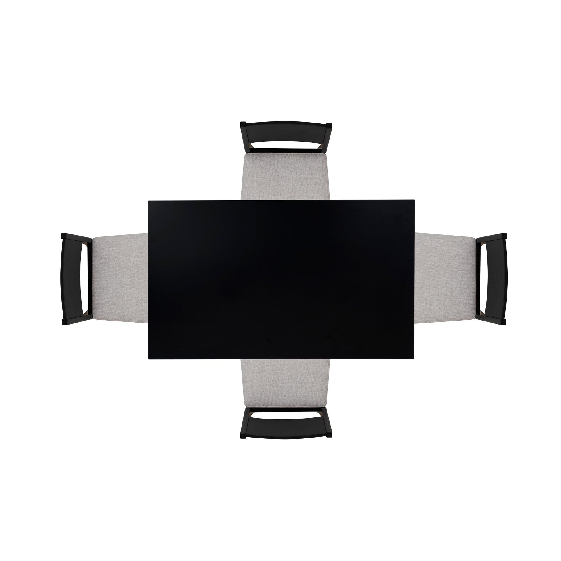 Apportez équilibre et raffinement à votre salle à manger avec cet ensemble 5 pièces, un mariage harmonieux d'élégance moderne et de confort au quotidien. La table rectangulaire arbore une élégante finition noire légèrement brillante et un plateau spacieux en bois d'hévéa résistant. Quatre chaises assorties vous enveloppent de confort grâce à leurs assises rembourrées de mousse, leur soutien en sangles et leur revêtement en polyester gris clair doux qui contraste joliment avec la structure noire. Que ce soit pour un repas entre amis ou un dîner tranquille à la maison, cet ensemble structure votre espace avec une élégance discrète et une simplicité d'utilisation au quotidien.