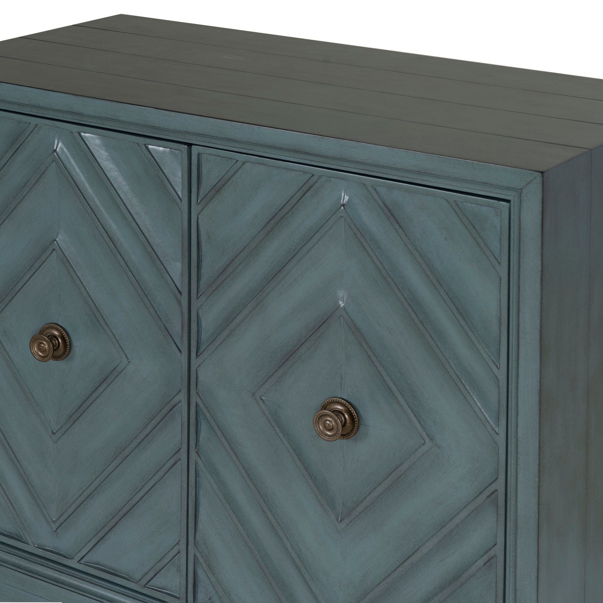Apportez une touche d'élégance à votre intérieur avec ce magnifique meuble à deux portes. Sa finition laquée bleu vif et son motif losanges original sur la façade lui confèrent un style à la fois ludique et raffiné. Fabriqué en MDF et pin robustes, ce meuble allie esthétique et fonctionnalité, supportant jusqu'à 50 kg sur le plateau et 23 kg par étagère intérieure. Le montage est un jeu d'enfant : il suffit de fixer les pieds ! Idéal pour ranger vos objets du quotidien ou mettre en valeur votre décoration, ce meuble d'appoint est conçu pour sublimer votre intérieur tout en s'y intégrant harmonieusement.