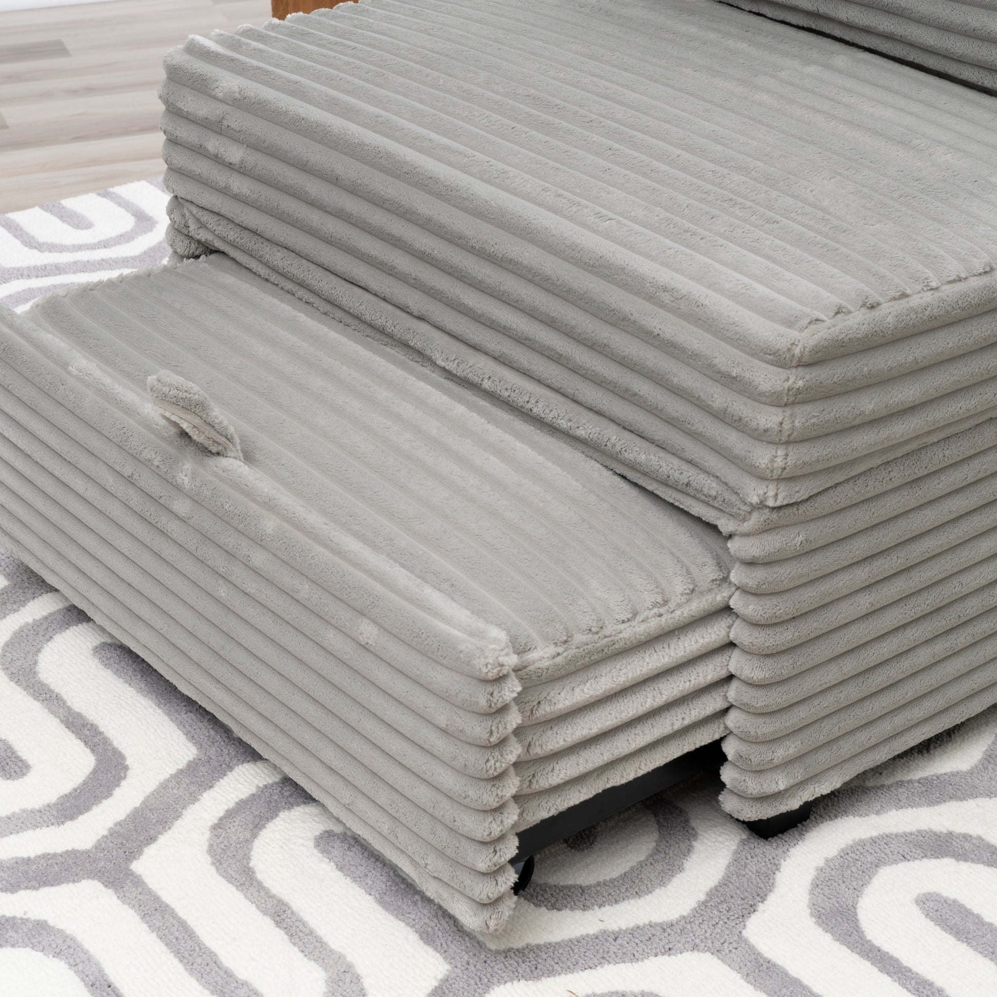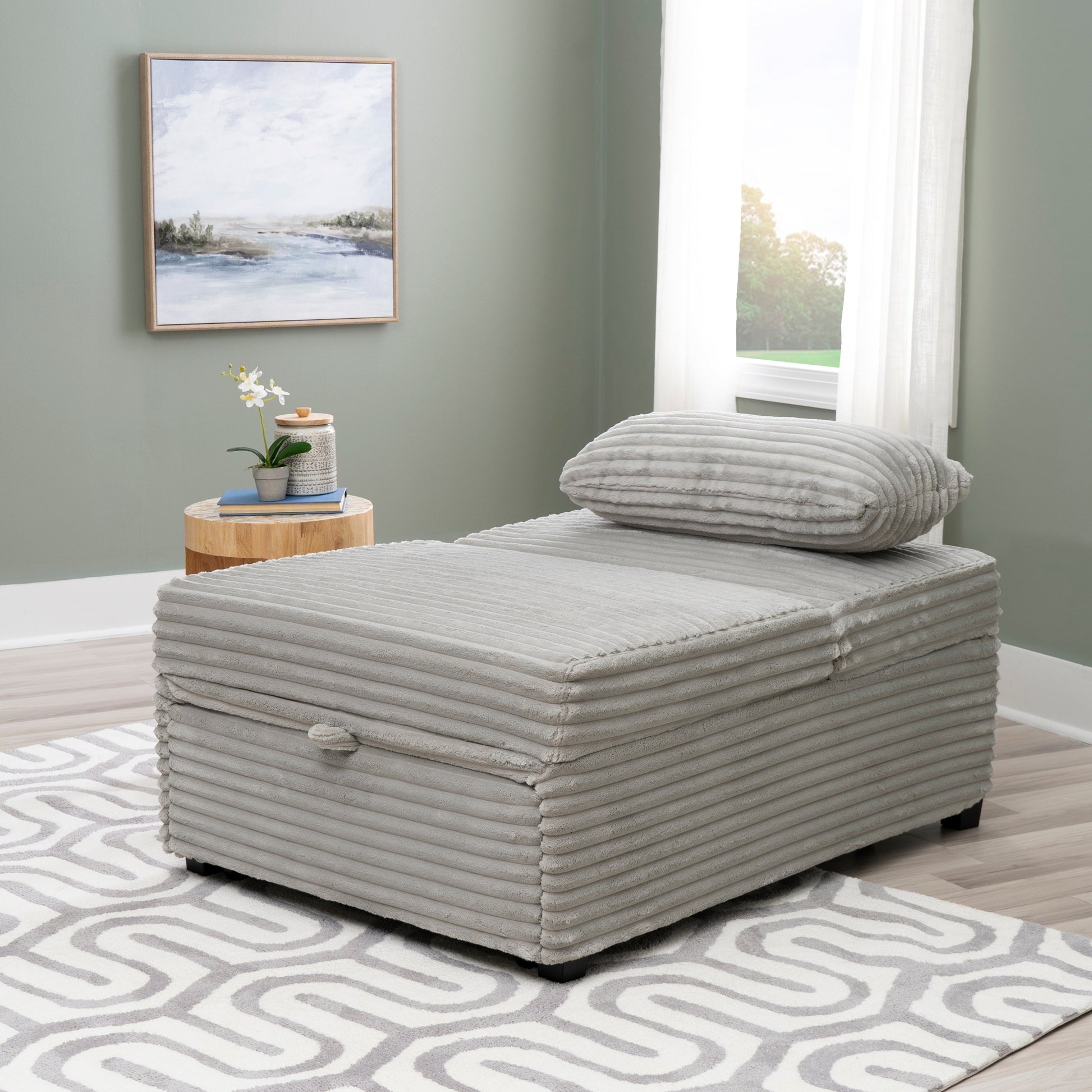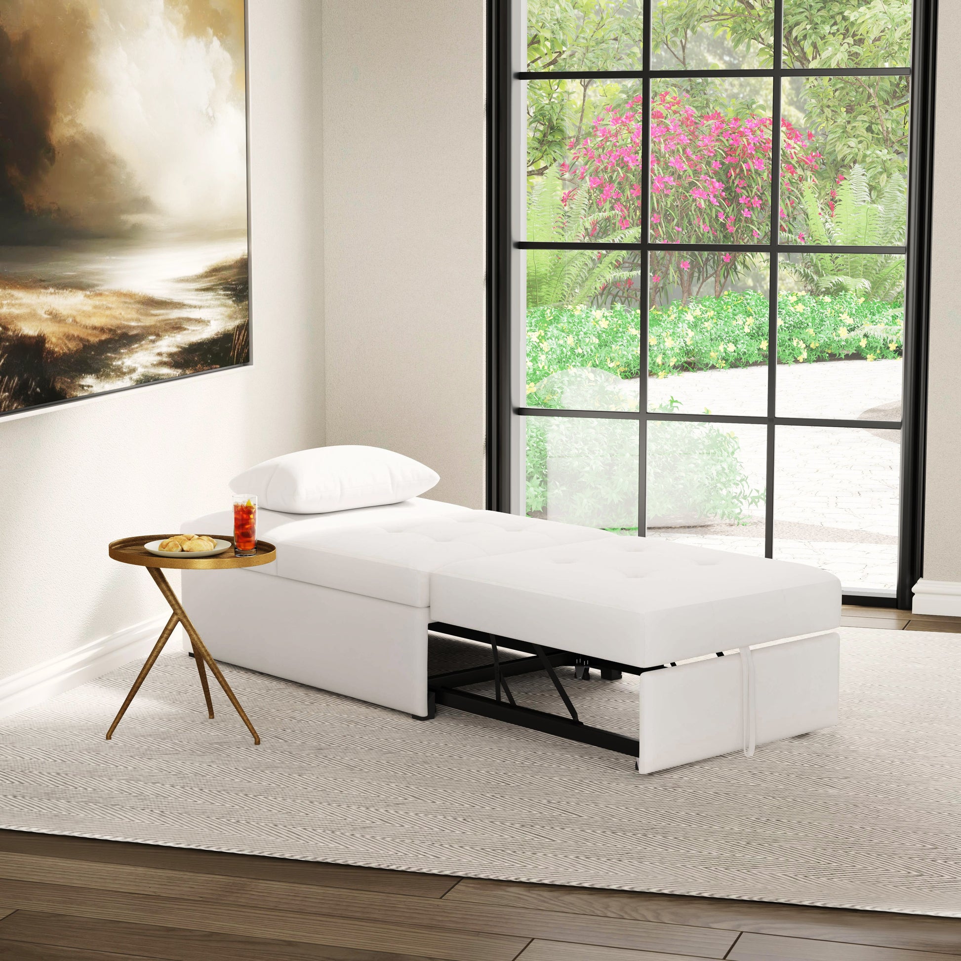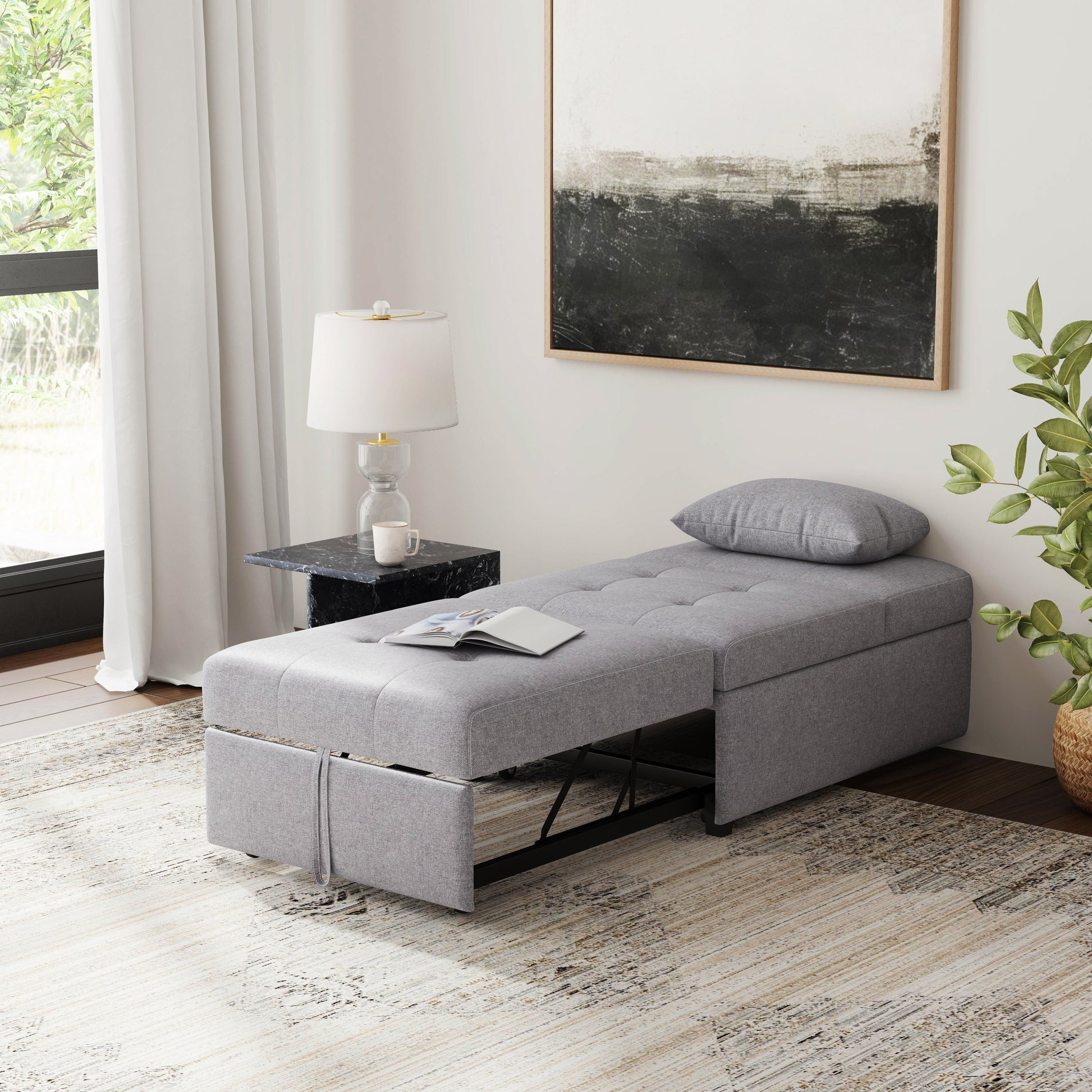 Mécanisme de transition sans effort : Le mécanisme de conversion en métal lisse permet de transformer facilement le meuble en fauteuil, en pouf ou en lit. Cette fonctionnalité pratique réduit le stress et fait gagner du temps, idéal pour les familles actives.