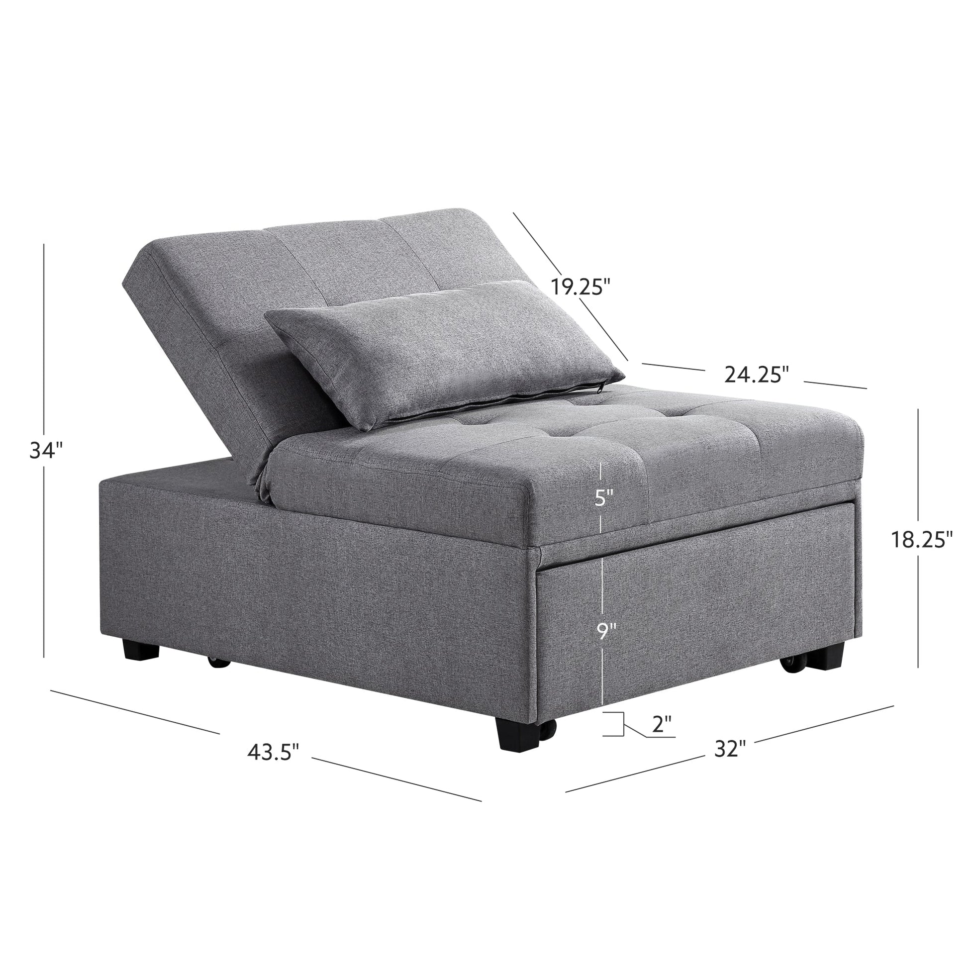 - Idéal pour les petits espaces multifonctionnels : conçu pour les logements compacts, ce meuble optimise l’espace dans les appartements, les studios ou les chambres d’étudiant. Sa capacité à combiner plusieurs fonctions en un seul élément permet un gain de place tout en offrant fonctionnalité et style moderne. La structure mesure 110,5 cm x 81,3 cm en configuration fauteuil et repose-pieds, et 190,5 cm x 81,3 cm lorsqu’elle est dépliée en lit simple.