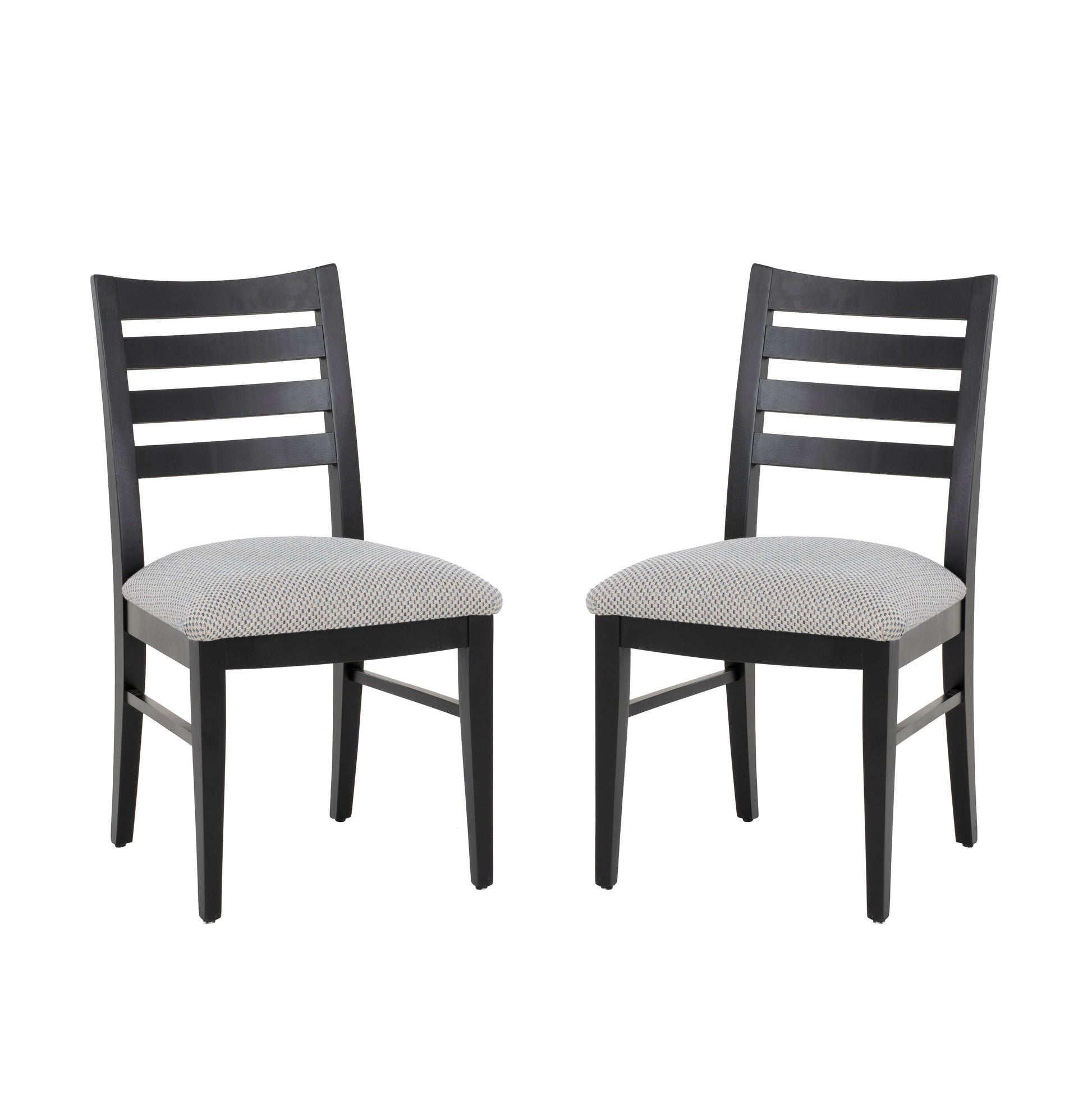 Affirmez votre style avec élégance intemporelle à table grâce à cet ensemble de 2 chaises d'appoint, fabriquées aux États-Unis en érable massif. La structure noire laquée contraste avec le confort de l'assise rembourrée, revêtue d'un polyester tissé beige et bleu pour une texture subtile et un style raffiné. Le dossier à barreaux classique apporte soutien et charme traditionnel, tandis que le montage, entièrement assemblé, est un jeu d'enfant. Conçues pour supporter jusqu'à 136 kg par chaise, ces chaises vous garantissent qualité, confort et sérénité à chaque repas.