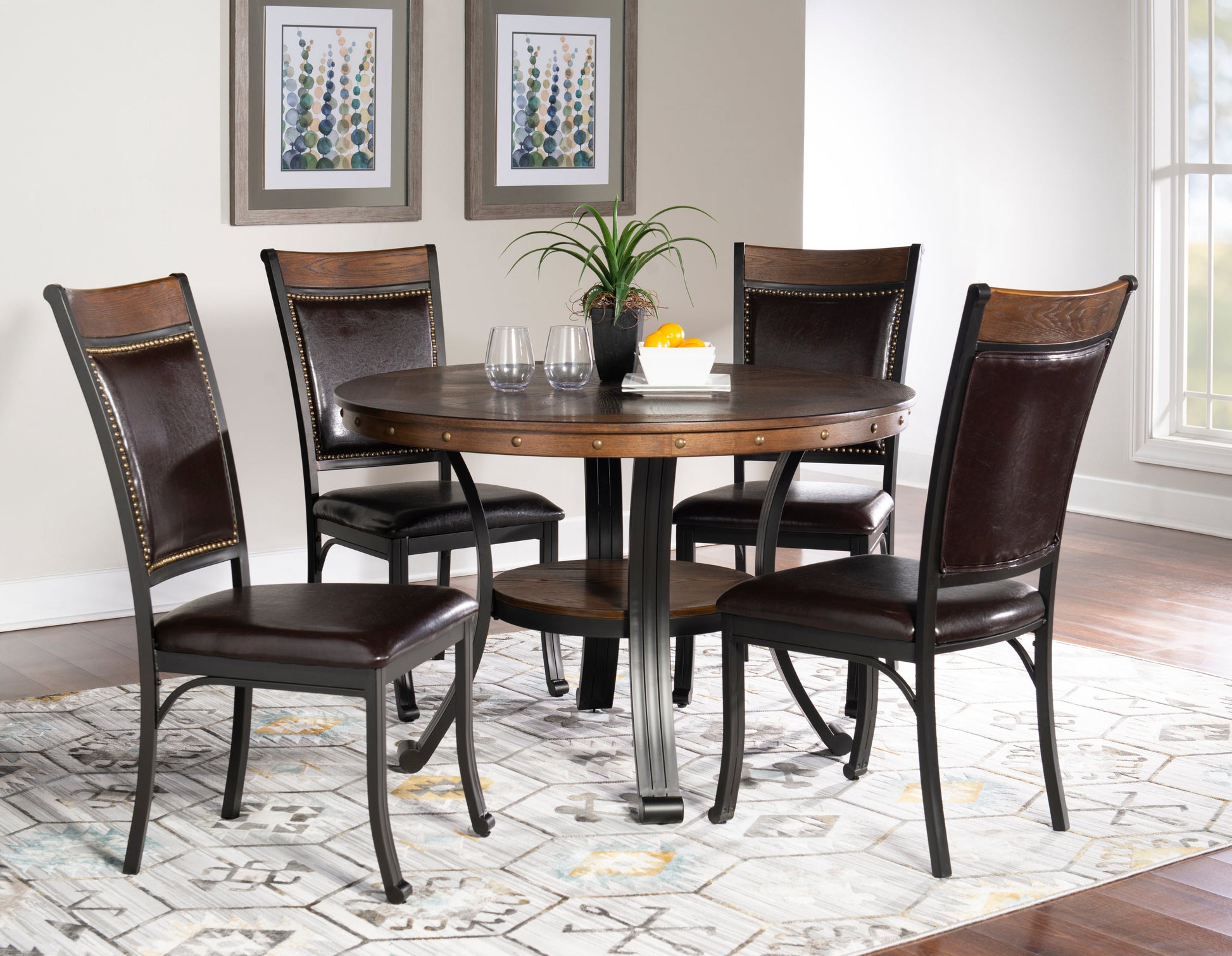 Ensemble complet 5 pièces : Comprend une table à manger ronde de 45 pouces et quatre chaises assorties, parfait pour les repas quotidiens ou les réunions informelles.