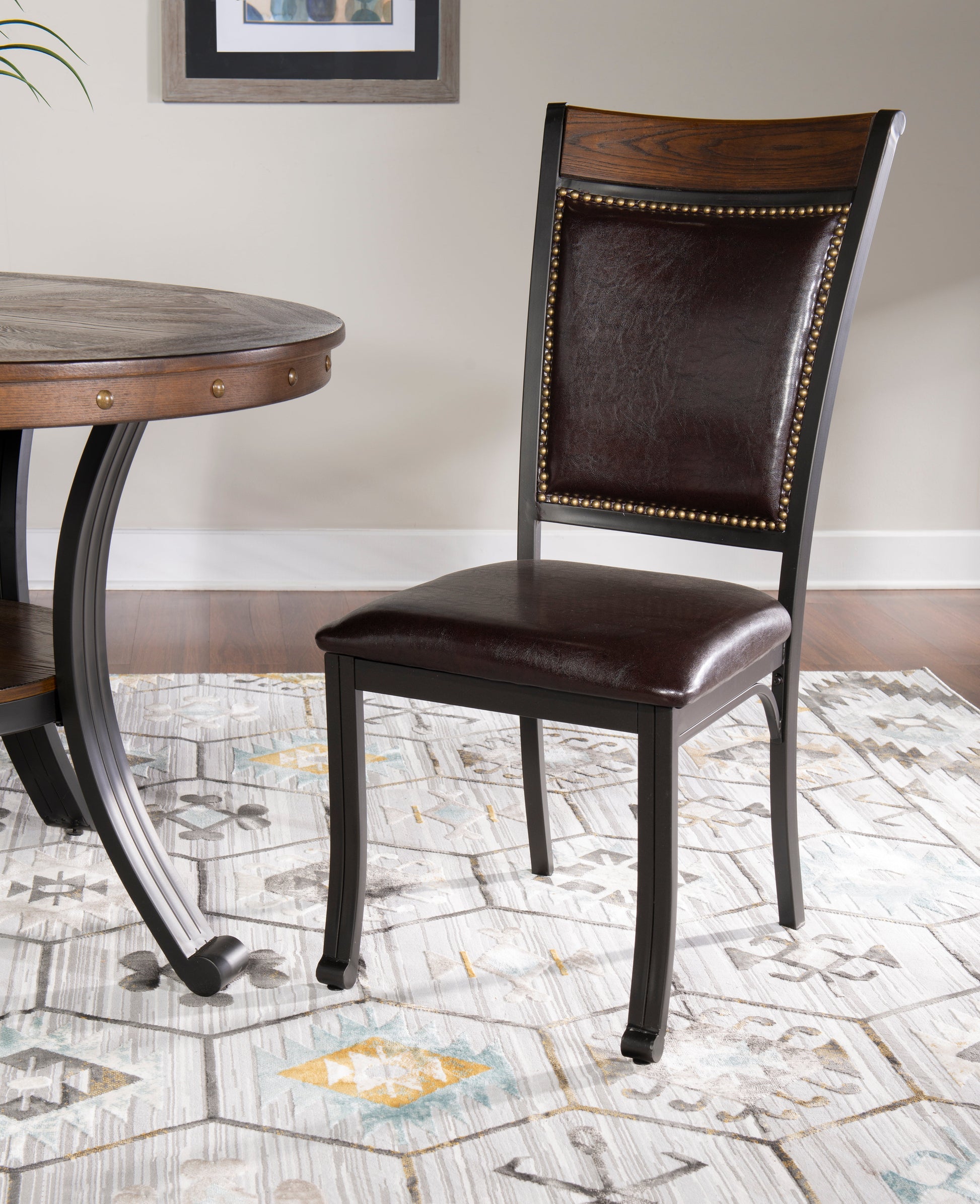 - Garniture cloutée en laiton antique : Apporte une touche raffinée et un détail intemporel aux dossiers de la table et des chaises.