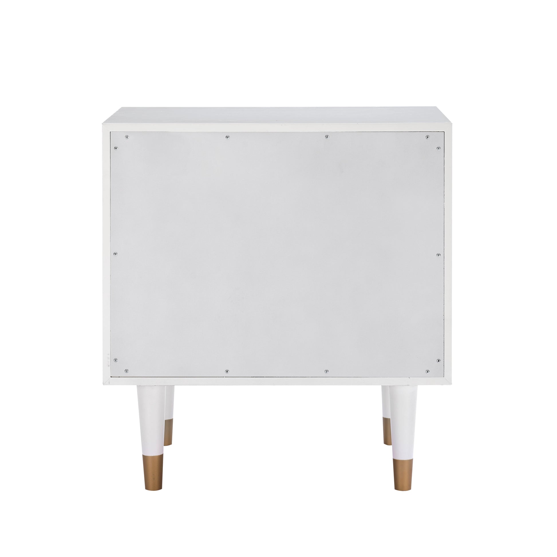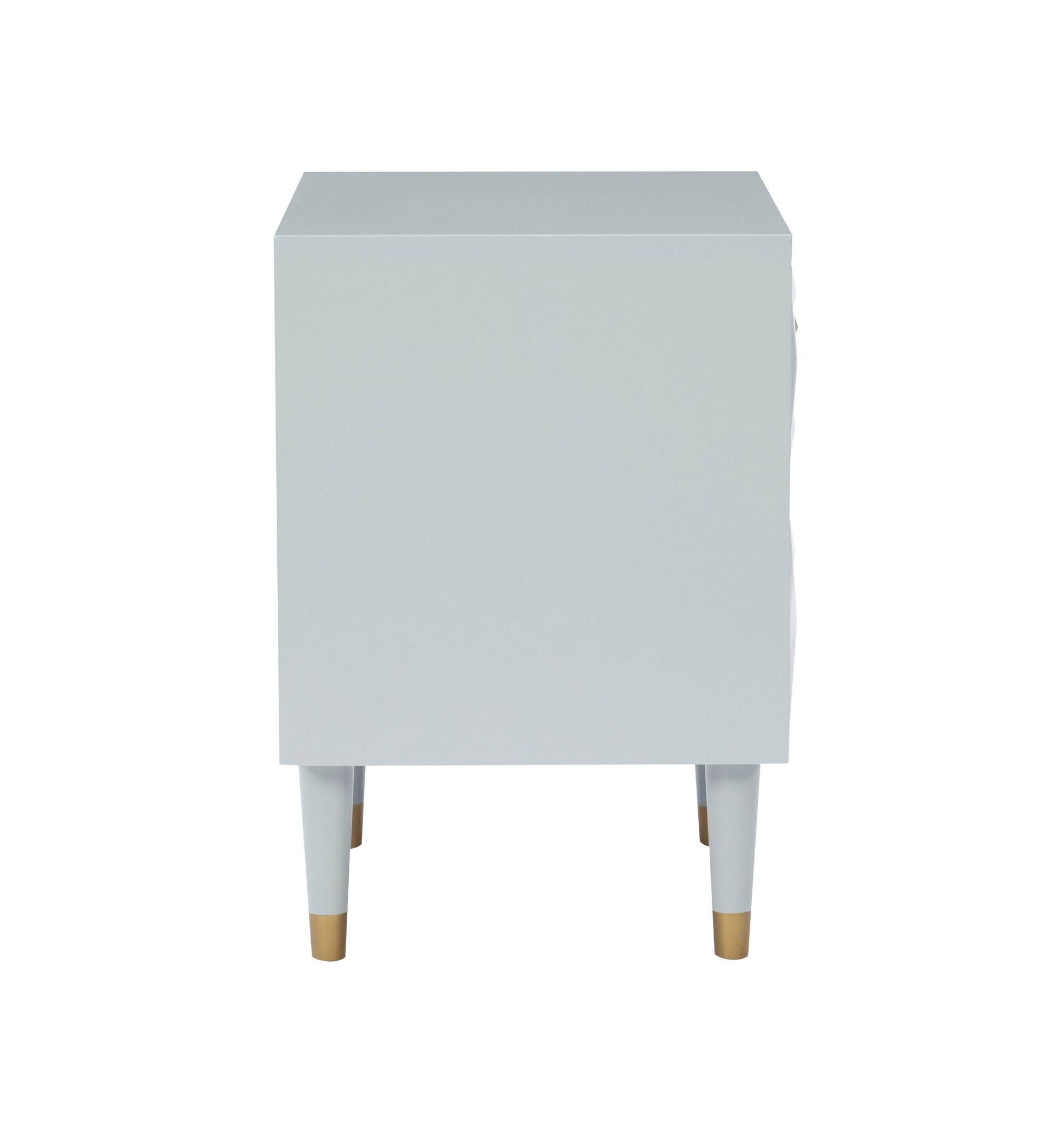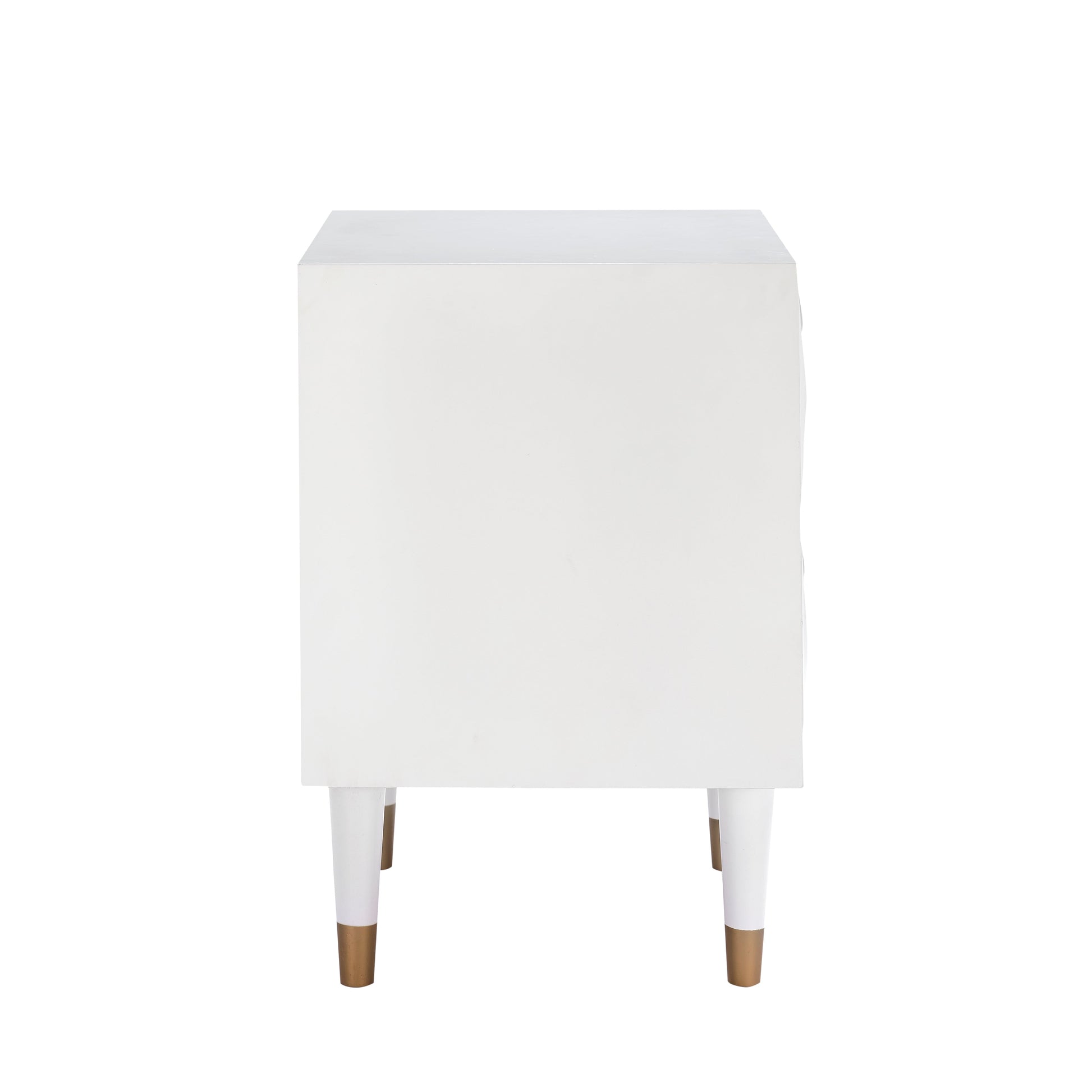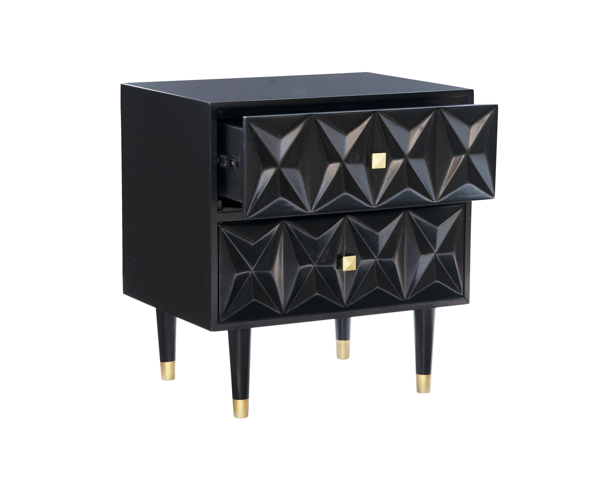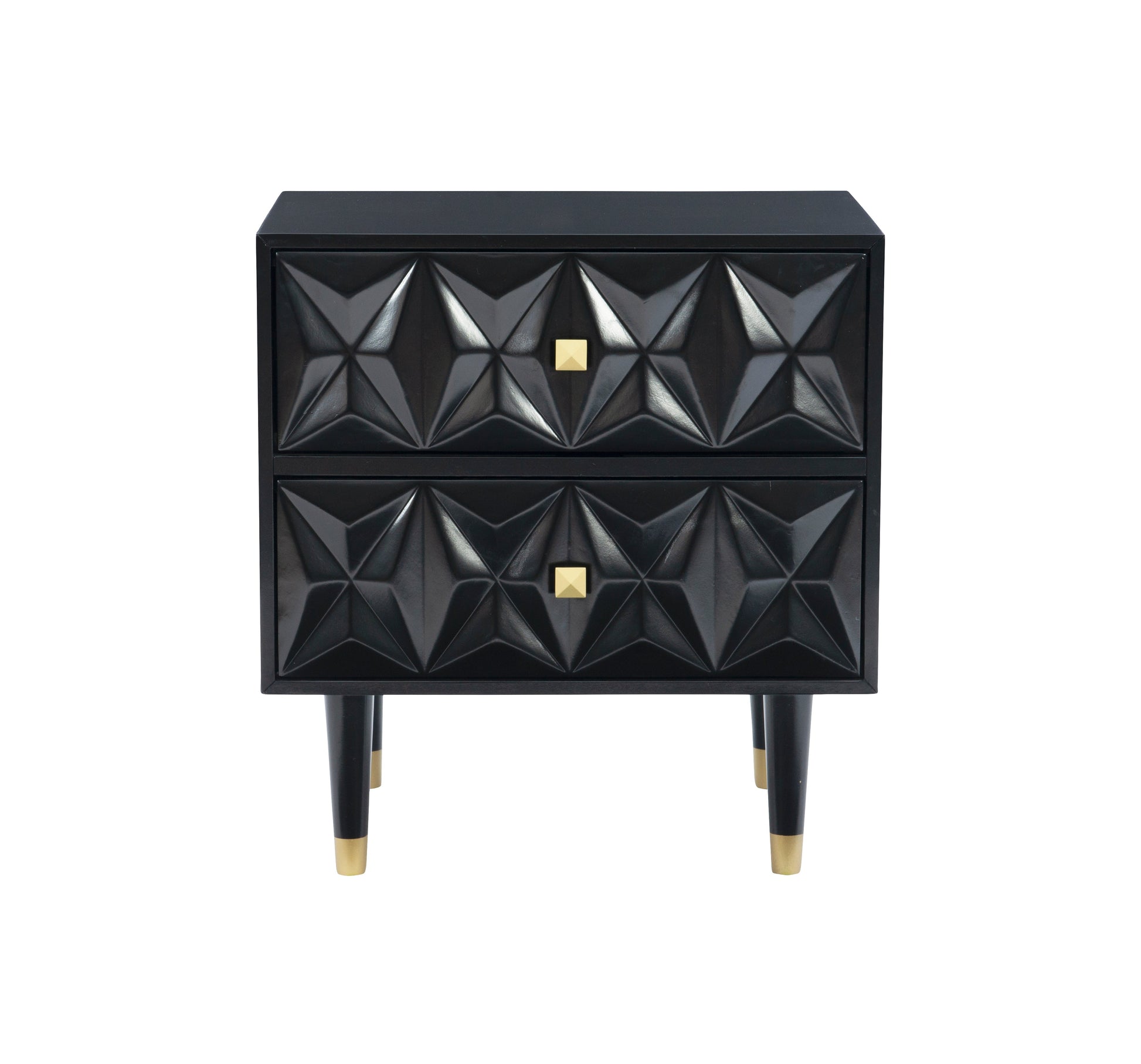 Avec sa façade à motifs géométriques, cette table de chevet apportera texture et profondeur à votre chambre. Sa façade texturée est ornée de poignées carrées dorées et de pieds ronds plaqués or. Un véritable atout charme ! Deux tiroirs profonds offrent un espace de rangement généreux pour vos livres, appareils électroniques et autres objets. Sa finition lui permet de s'intégrer facilement à tout type de décoration.
