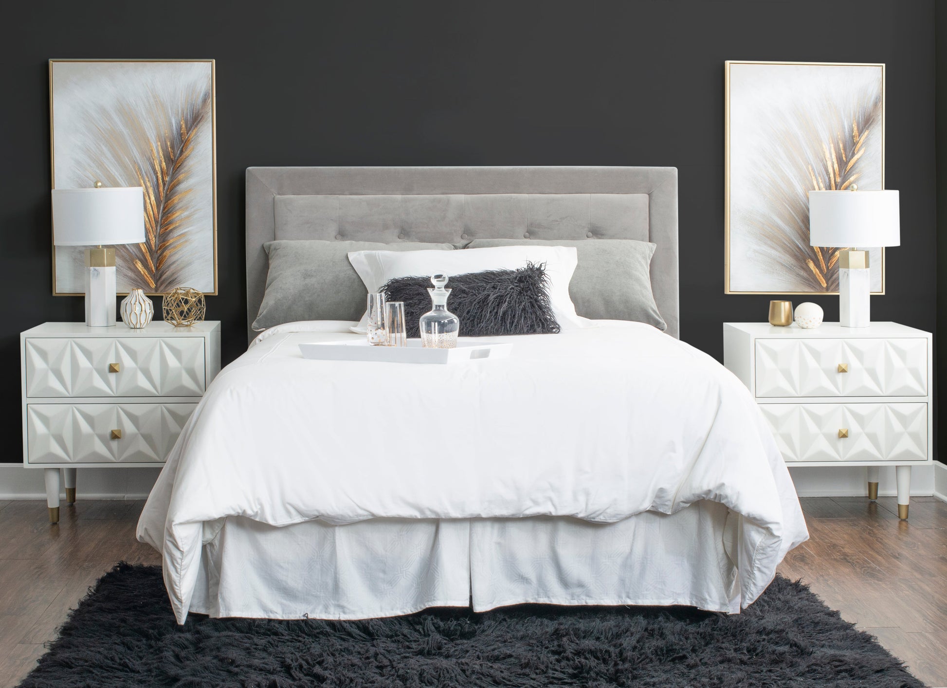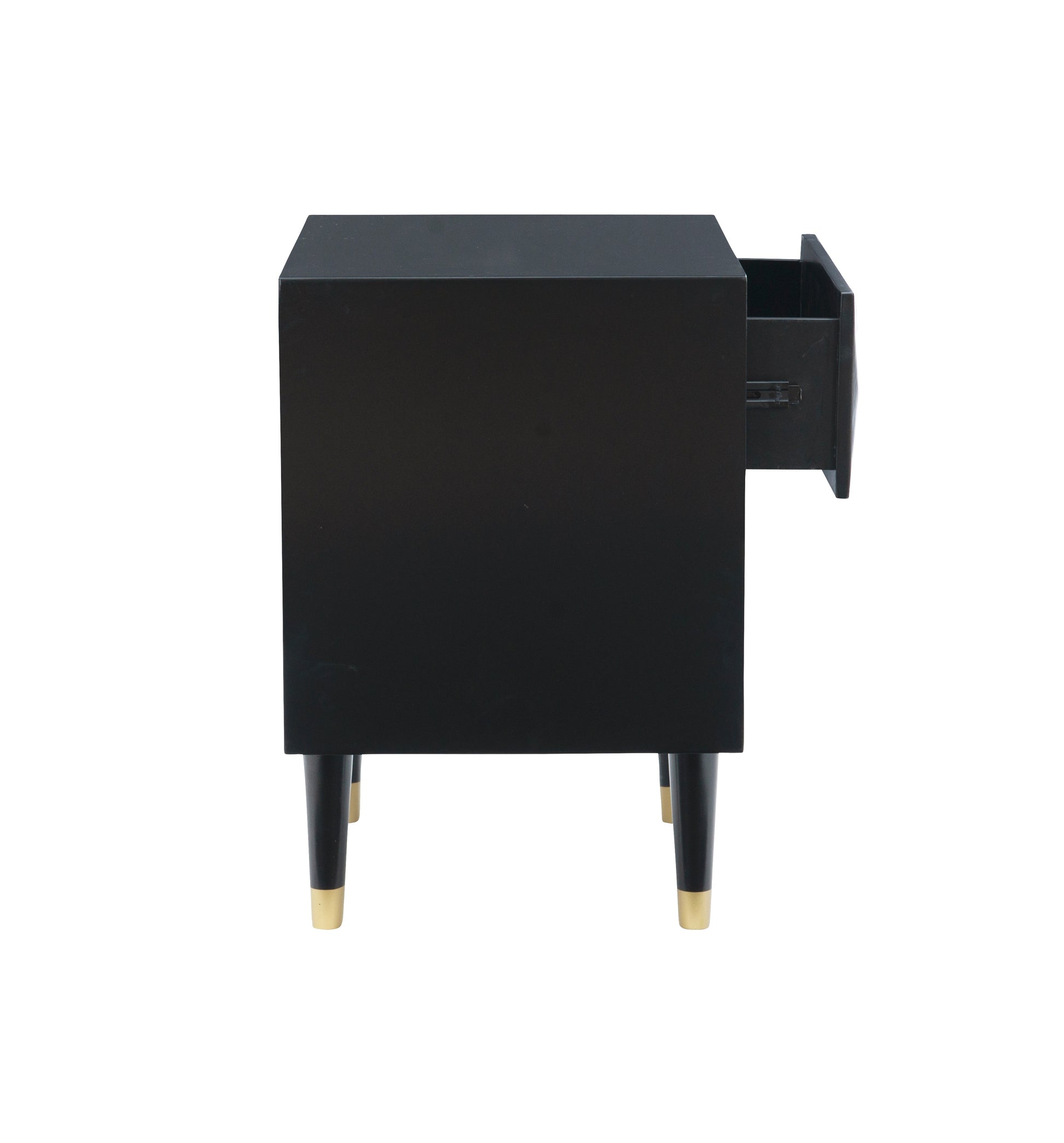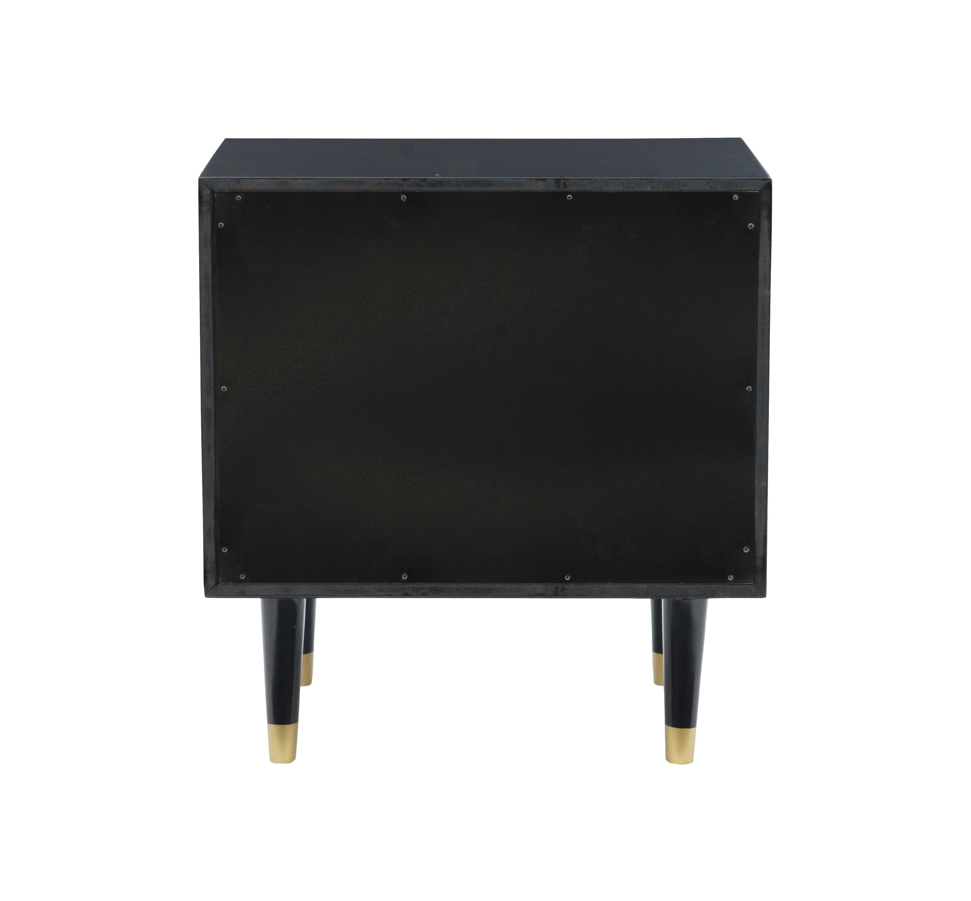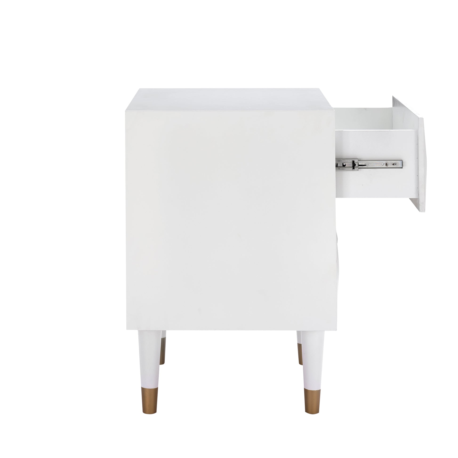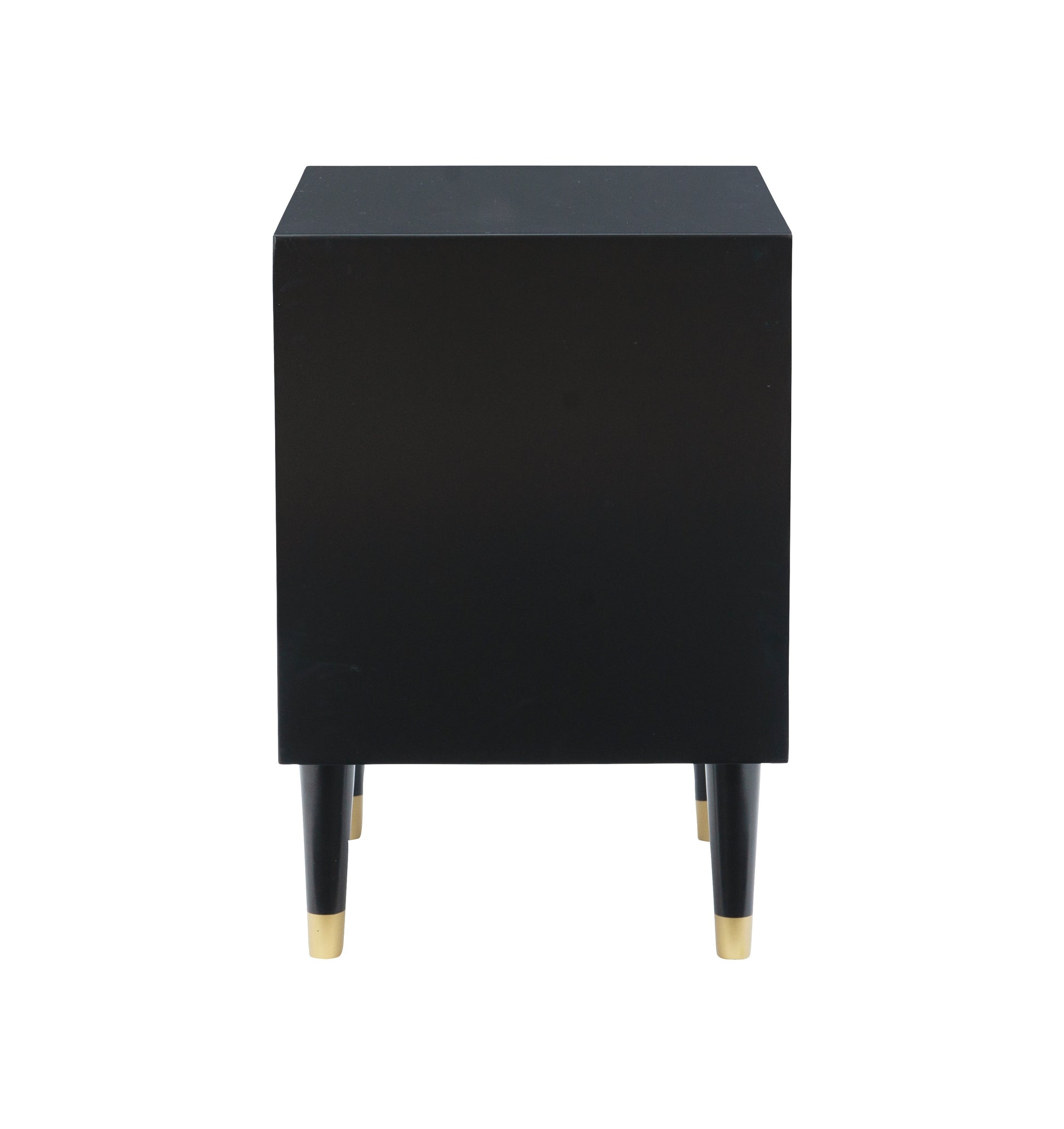 Avec sa façade à motifs géométriques, cette table de chevet apportera texture et profondeur à votre chambre. Sa façade texturée est ornée de poignées carrées dorées et de pieds ronds plaqués or. Un véritable atout charme ! Deux tiroirs profonds offrent un espace de rangement généreux pour vos livres, appareils électroniques et autres objets. Sa finition lui permet de s'intégrer facilement à tout type de décoration.