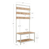 Les porte-manteaux n'ont jamais été aussi chics et fonctionnels. Écharpes, manteaux, chapeaux et sacs trouveront facilement leur place sur les nombreux crochets. L'étagère inférieure est idéale pour ranger les jouets et les chaussures, et le banc robuste est parfait pour se détendre après une longue journée. Le placage en bois gris clair classique et la structure en métal gris résistant, ou le placage en bois naturel lumineux et la structure en métal blanc résistant, s'harmoniseront à merveille avec votre décoration intérieure tout en apportant une touche pratique à votre maison.