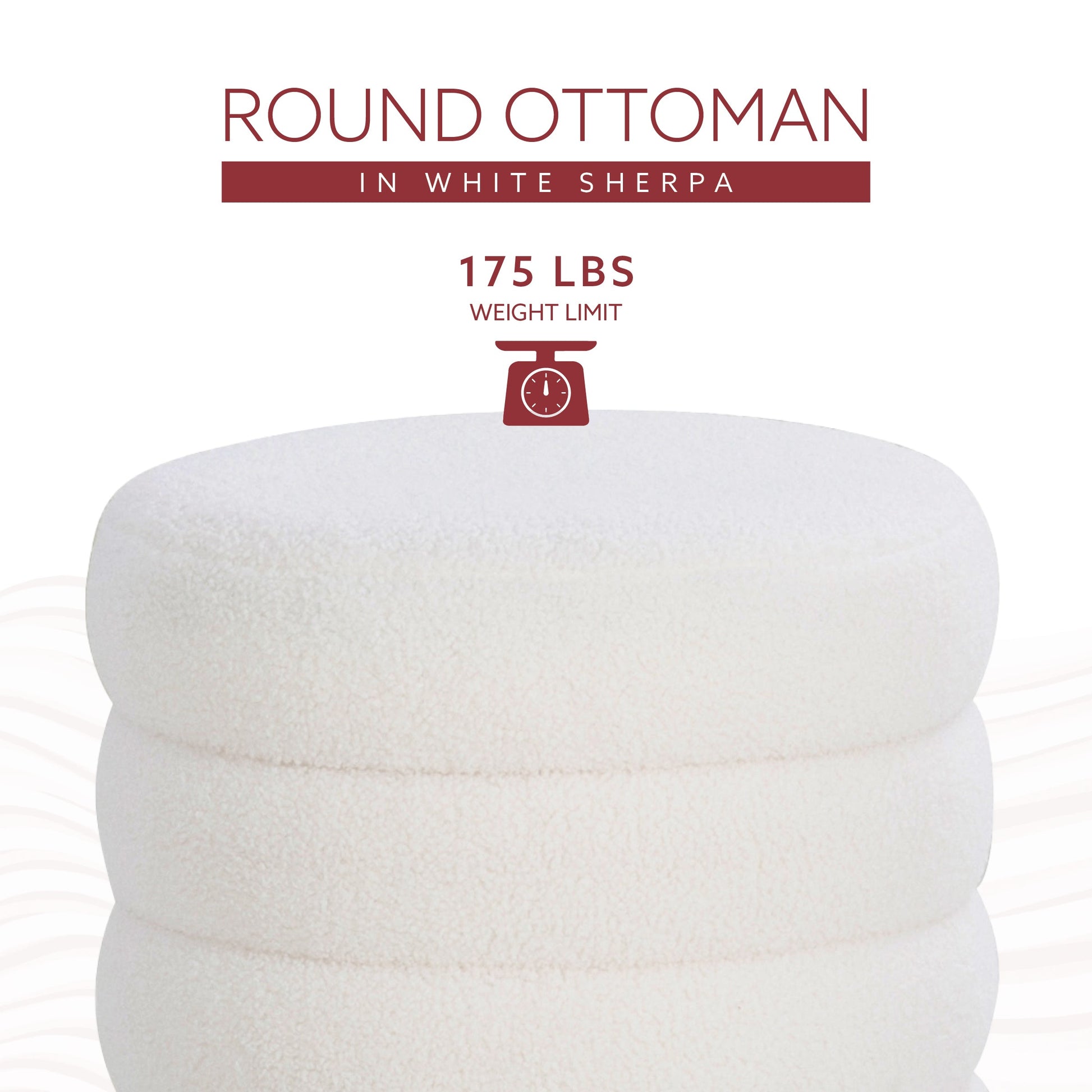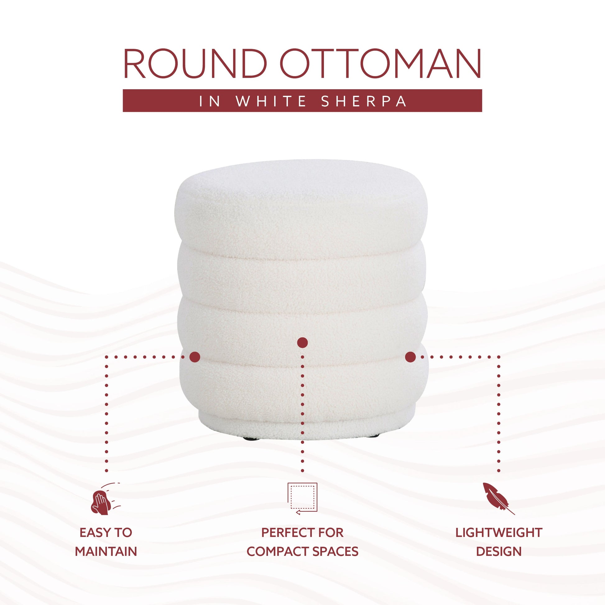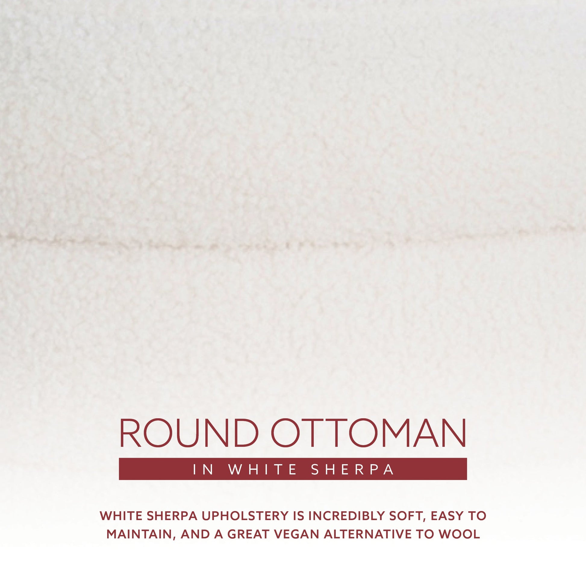 Allongez vos jambes ou installez-vous confortablement ! Doux et accueillant, ce pouf rond en sherpa est l'accessoire idéal pour votre salon ou votre chambre. Placez-le à côté de votre canapé comme repose-pieds pratique ou utilisez-le seul pour accueillir vos invités. Son revêtement en sherpa blanc imite la laine, tout en étant végan, incroyablement doux et bien plus facile d'entretien. Parfait pour le salon, la chambre d'enfant, la chambre à coucher ou même une chambre d'étudiant.
