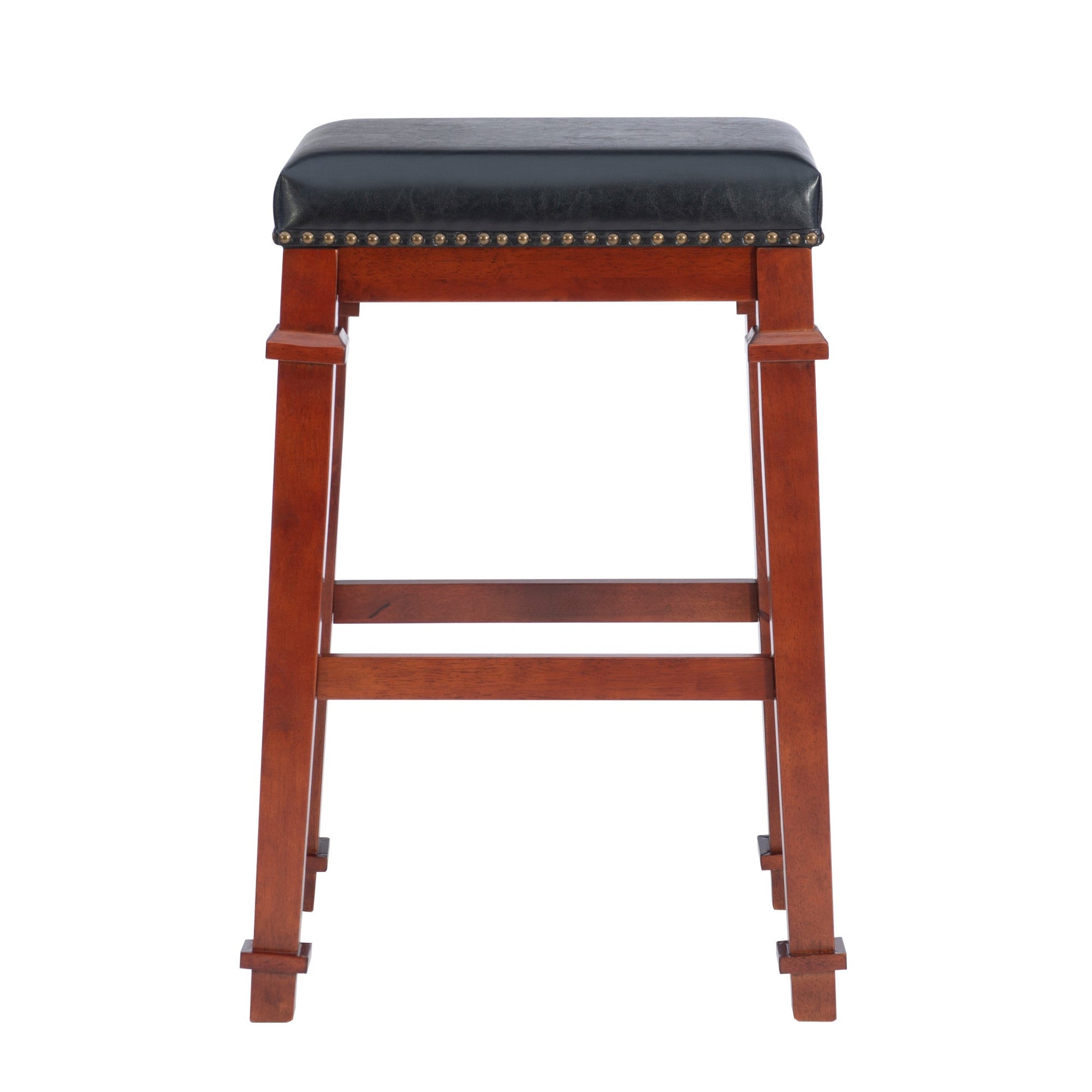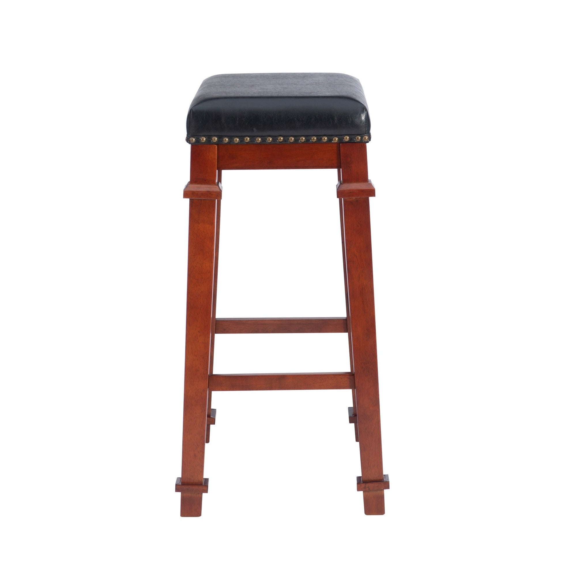 Ajoutez une touche traditionnelle à votre bar, comptoir ou table haute avec ce tabouret sans dossier. Fabriqué en bois, il présente des pieds évasés ornés d'une bordure décorative. Choisissez entre une hauteur bar ou comptoir, et une finition cerisier avec un coussin en similicuir noir, une finition noire avec un coussin en tweed noir et blanc, ou une finition marron avec un coussin en tweed marron. Les tabourets de bar ont une hauteur d'assise de 76 cm, et les tabourets de comptoir, de 61 cm.