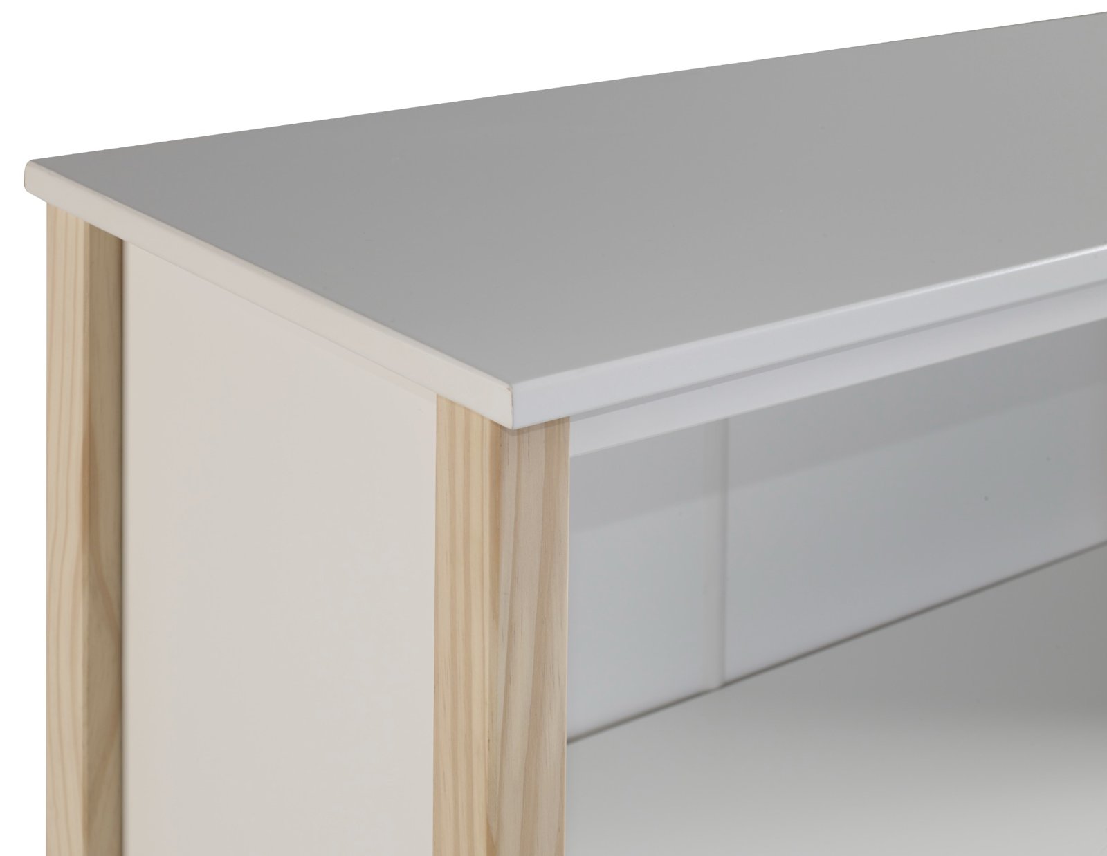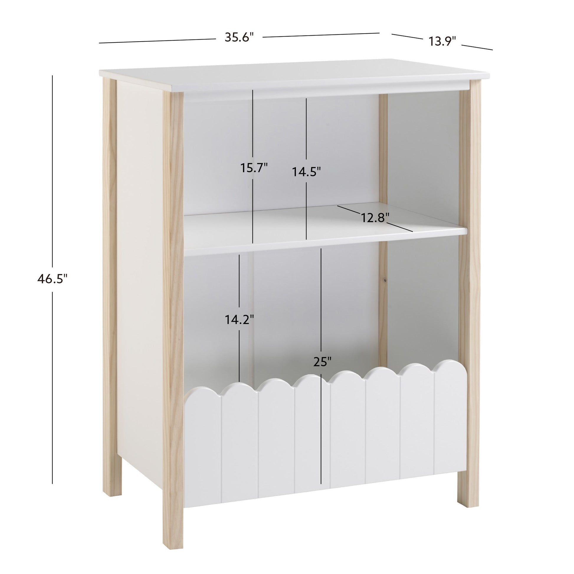Créez un espace de jeu à la fois ordonné et charmant pour votre enfant avec cette bibliothèque d'inspiration champêtre. Dotée de deux étagères supérieures et d'un grand bac inférieur orné d'un détail de clôture, elle est idéale pour ranger livres, jouets et peluches. Sa finition blanche éclatante, associée à des accents de pin naturel, s'intègre harmonieusement à tous les styles de décoration, tandis que ses pieds carrés robustes lui assurent une grande stabilité. À la fois ludique et pratique, ce meuble transforme le rangement en un moment agréable et élégant.