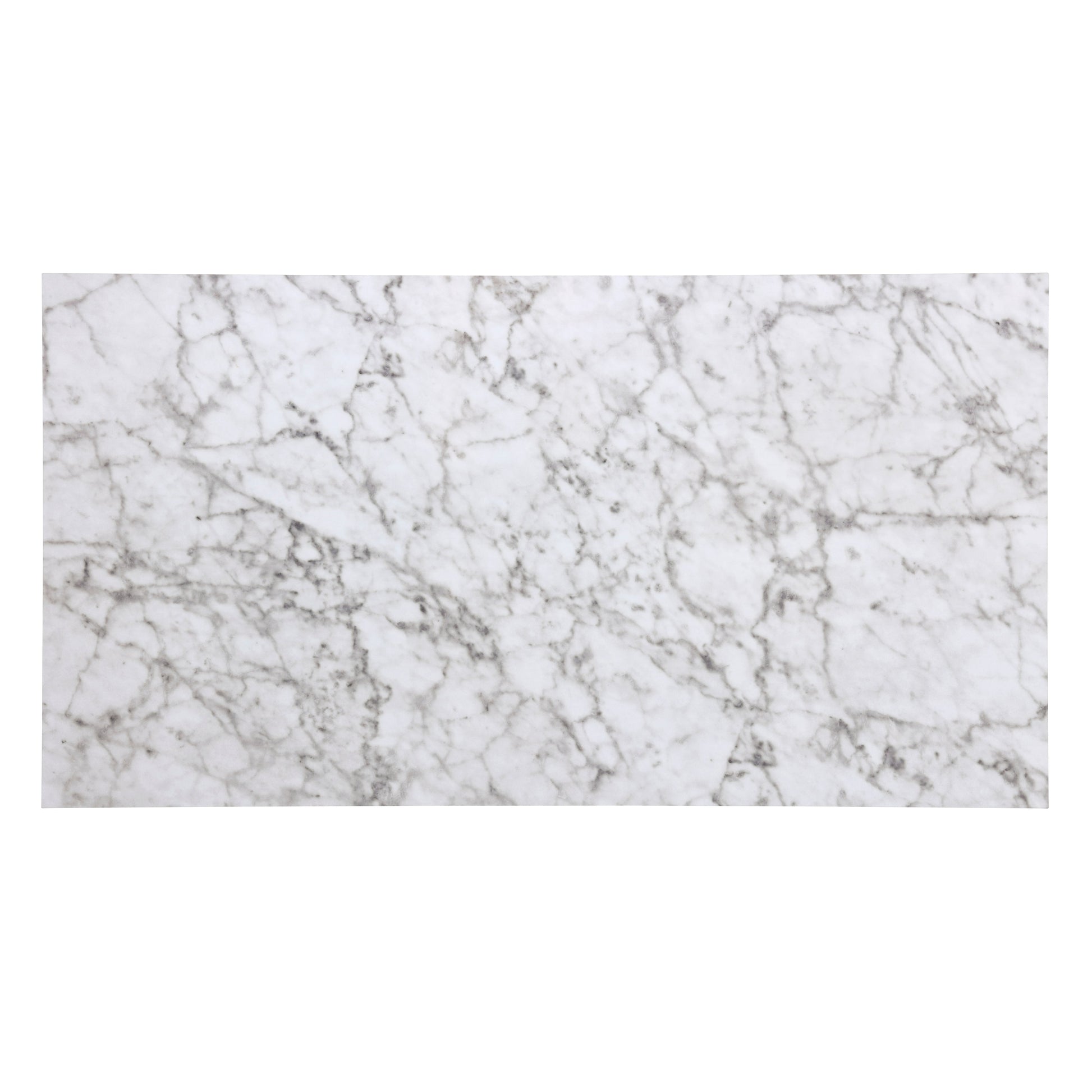 - Plateau de table imitation marbre : Ce plateau présente une surface lisse en papier imitation marbre blanc veiné de gris clair, alliant élégance et durabilité. Résistant à l’usure quotidienne, il imite à la perfection l’aspect de la pierre véritable, à un prix bien plus abordable.