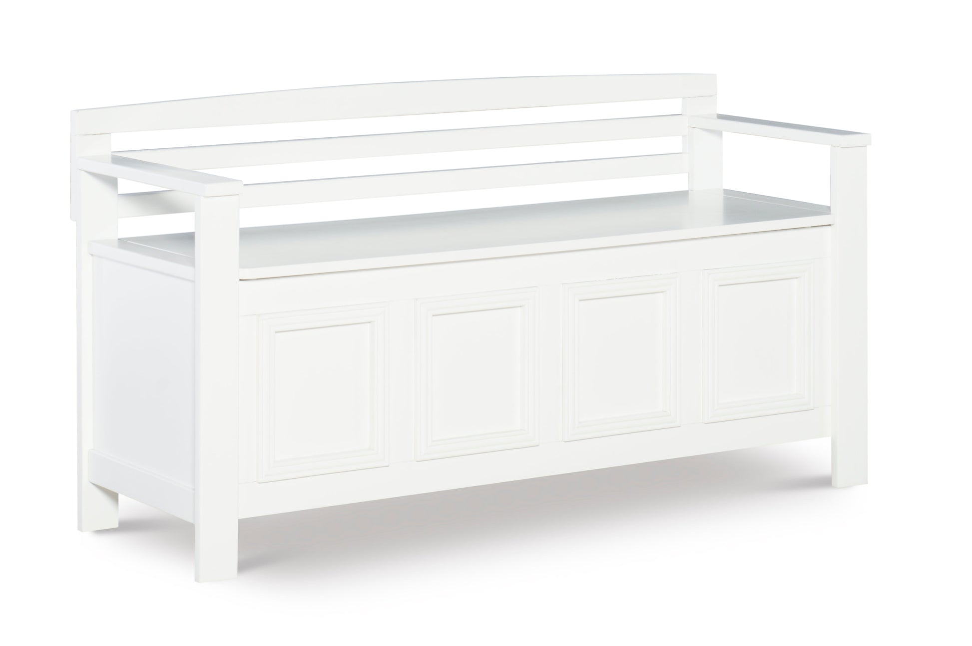 Créez un espace de rangement et d'assise supplémentaire dans votre entrée ou votre vestibule grâce à ce banc de rangement Laredo, à la fois esthétique et fonctionnel. Son couvercle rabattable permet d'accéder facilement aux objets rangés dans le compartiment. Le dossier en forme d'échelle et la façade décorative sont mis en valeur par une finition blanche. Un ajout élégant et pratique à toute maison.