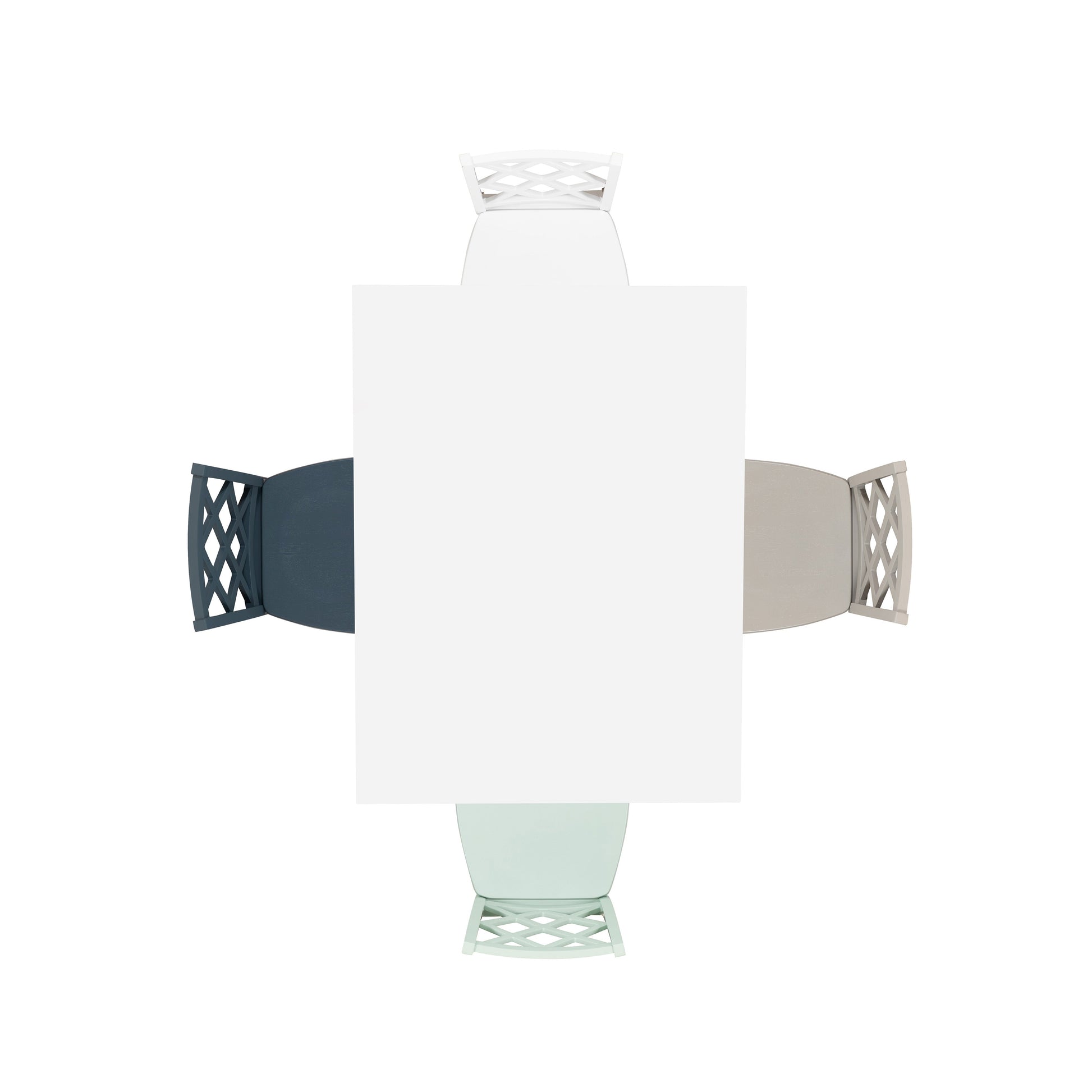 - Choisissez la couleur qui vous inspire : cet ensemble est également disponible avec des chaises à la finition uniforme. Choisissez parmi le vert menthe, le blanc, le gris et le graphite pour trouver la teinte parfaite pour votre espace. Chaque couleur apporte une touche de fraîcheur et d’originalité, vous permettant de personnaliser votre décoration et d’exprimer votre style.