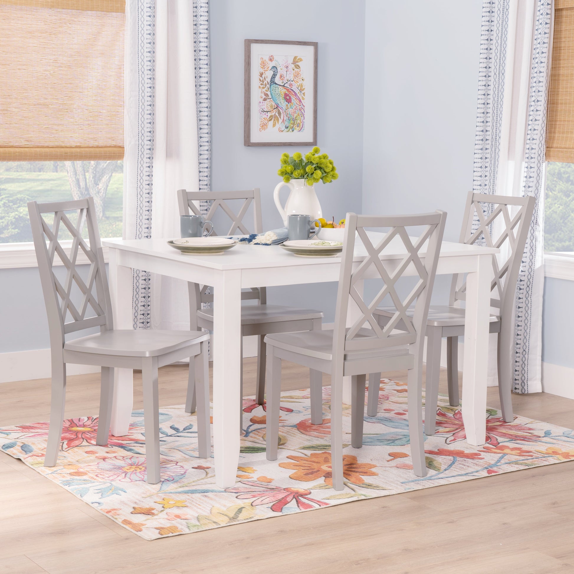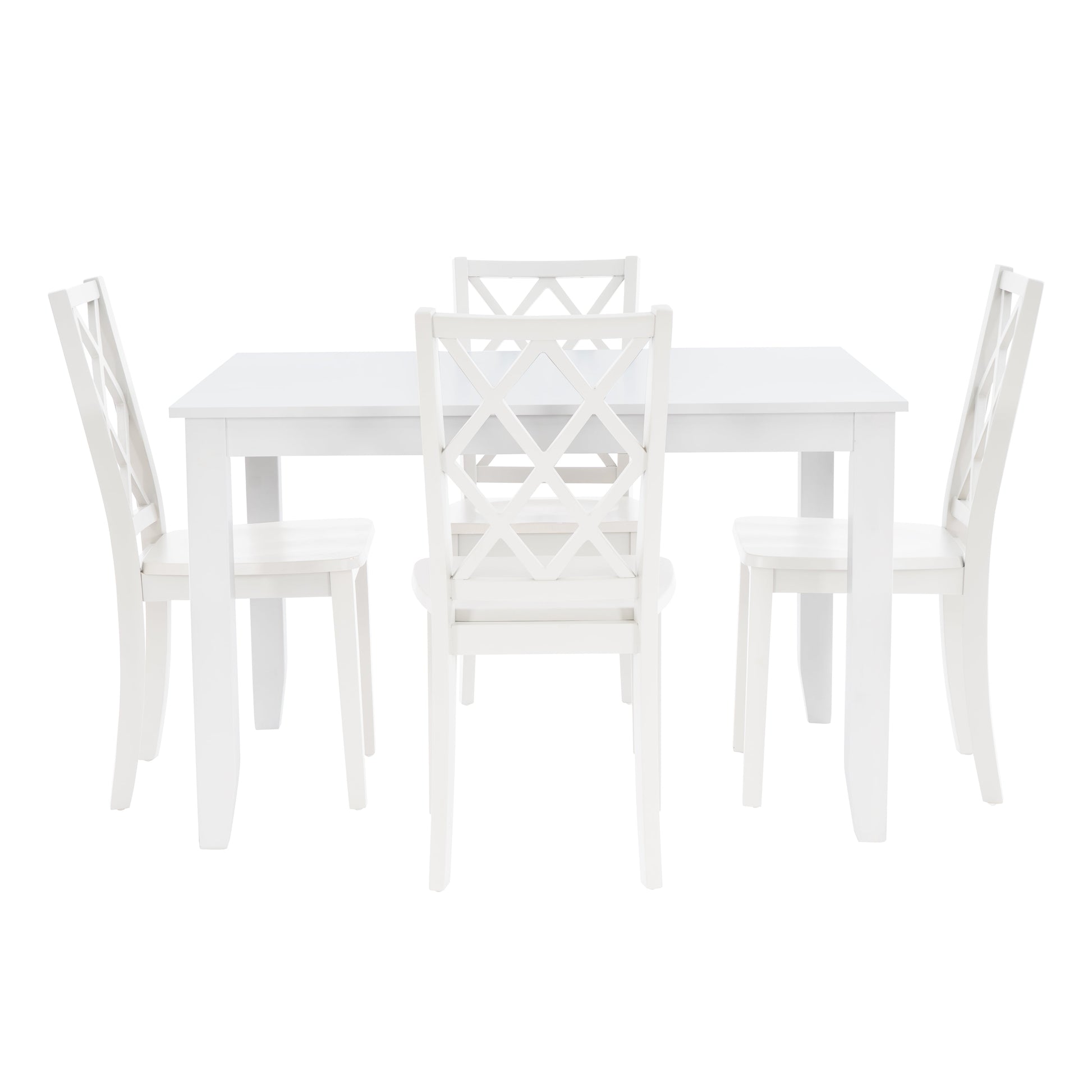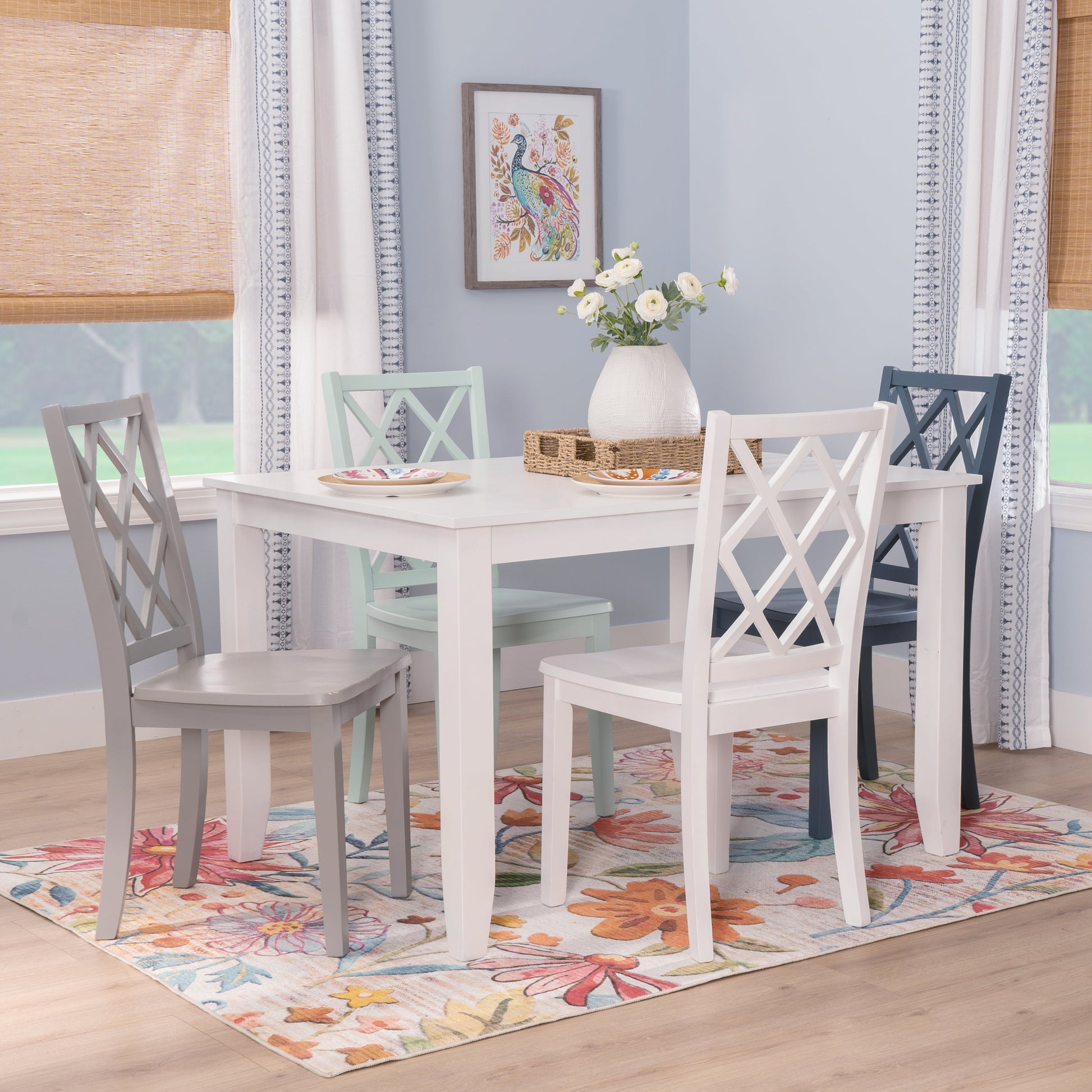 Créez une ambiance chaleureuse et conviviale dans votre salle à manger avec cet élégant ensemble 5 pièces. Composé d'une table rectangulaire robuste en similicuir blanc, cet ensemble est mis en valeur par 4 chaises aux finitions graphite, grises, menthe, blanches ou multicolores, offrant un contraste à la fois audacieux et raffiné. Le dossier ajouré de chaque chaise apporte une touche champêtre classique tout en conservant une allure aérée et contemporaine. Fabriqué en bois et MDF résistants, cet ensemble est conçu pour durer au quotidien, que ce soit pour les repas, les réunions de famille ou les moments de partage. Idéal pour la cuisine, la salle à manger ou le coin repas, cet ensemble s'intègre harmonieusement dans les intérieurs modernes comme traditionnels.