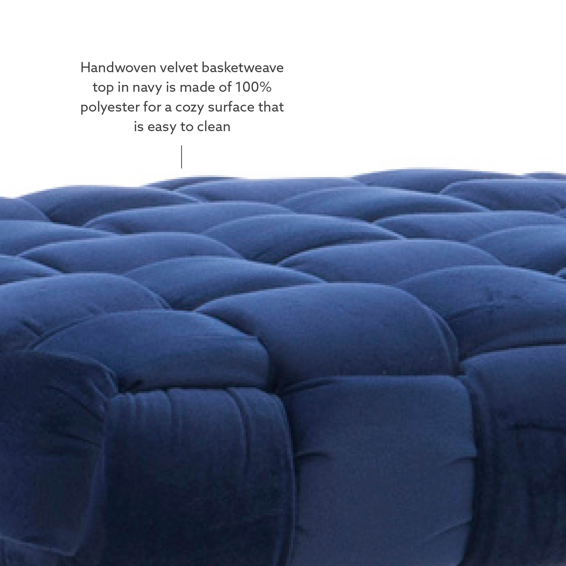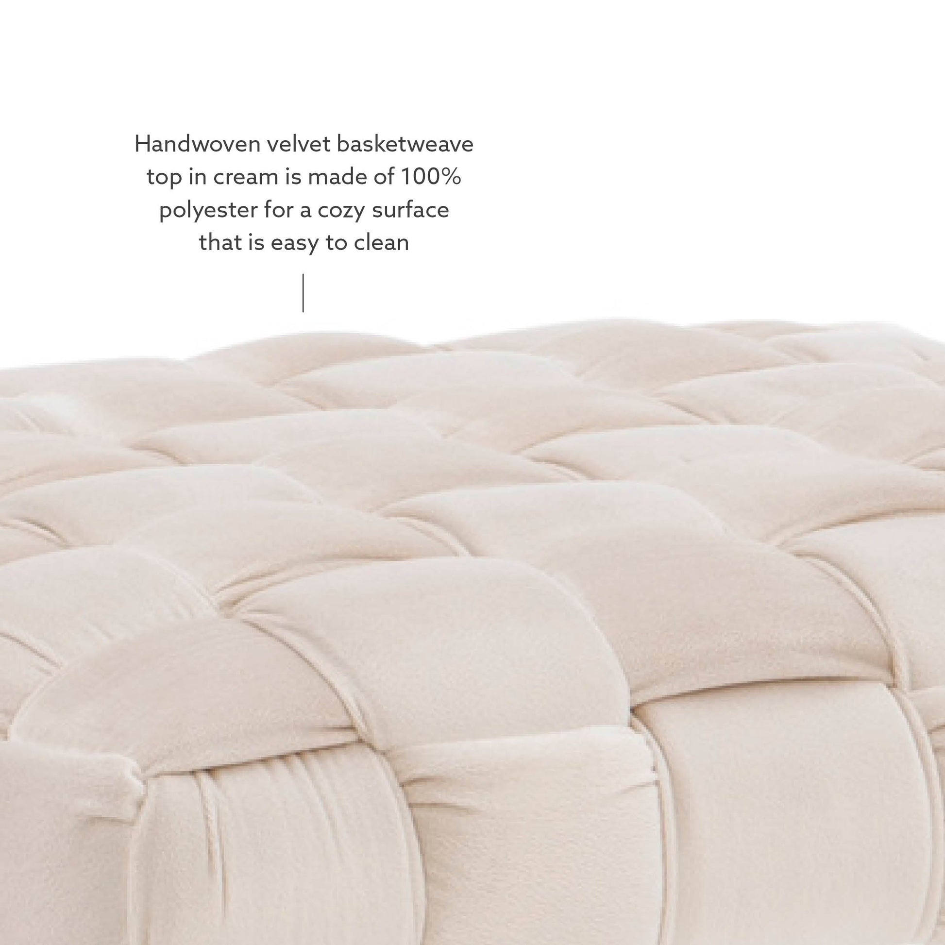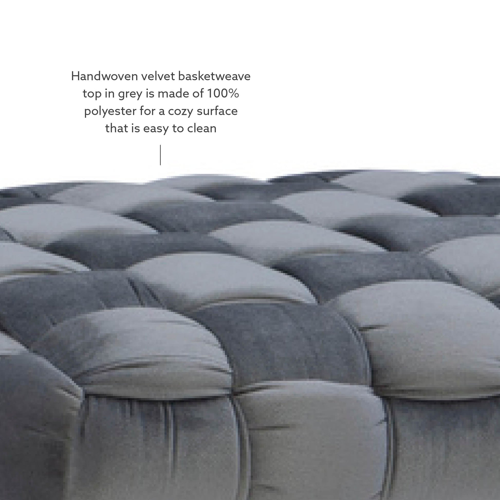 - Le dessus en velours tissé à la main, à motif panier, est fabriqué en polyester pour une surface confortable.