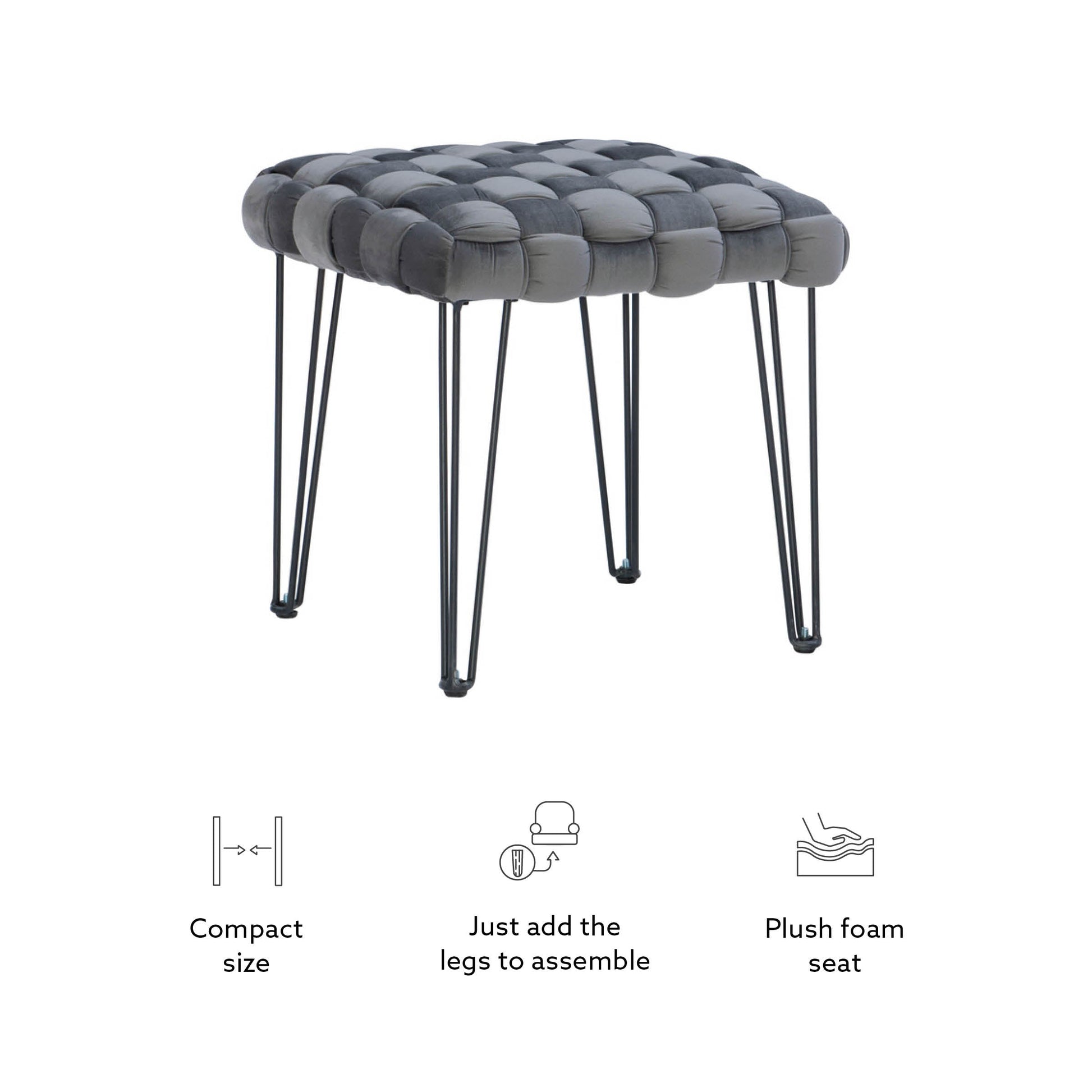- Hauteur d'assise de 45 cm, idéale à côté d'un canapé ou d'une coiffeuse.