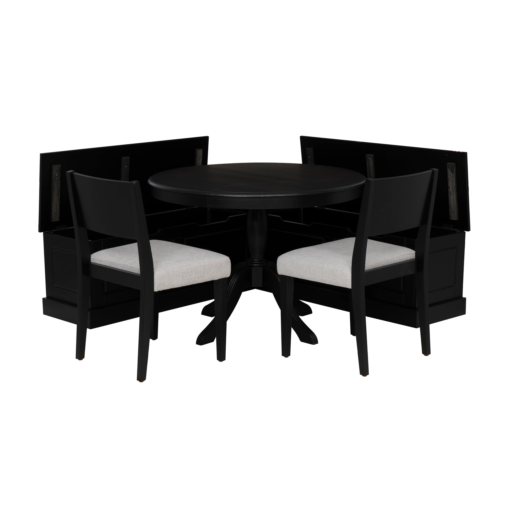 - Banquette d'angle sans dossier avec rangement : Optimise le nombre de places assises et la fonctionnalité grâce à des compartiments dissimulés sous chaque siège, parfaits pour ranger des serviettes, des jeux de société ou des objets du quotidien.