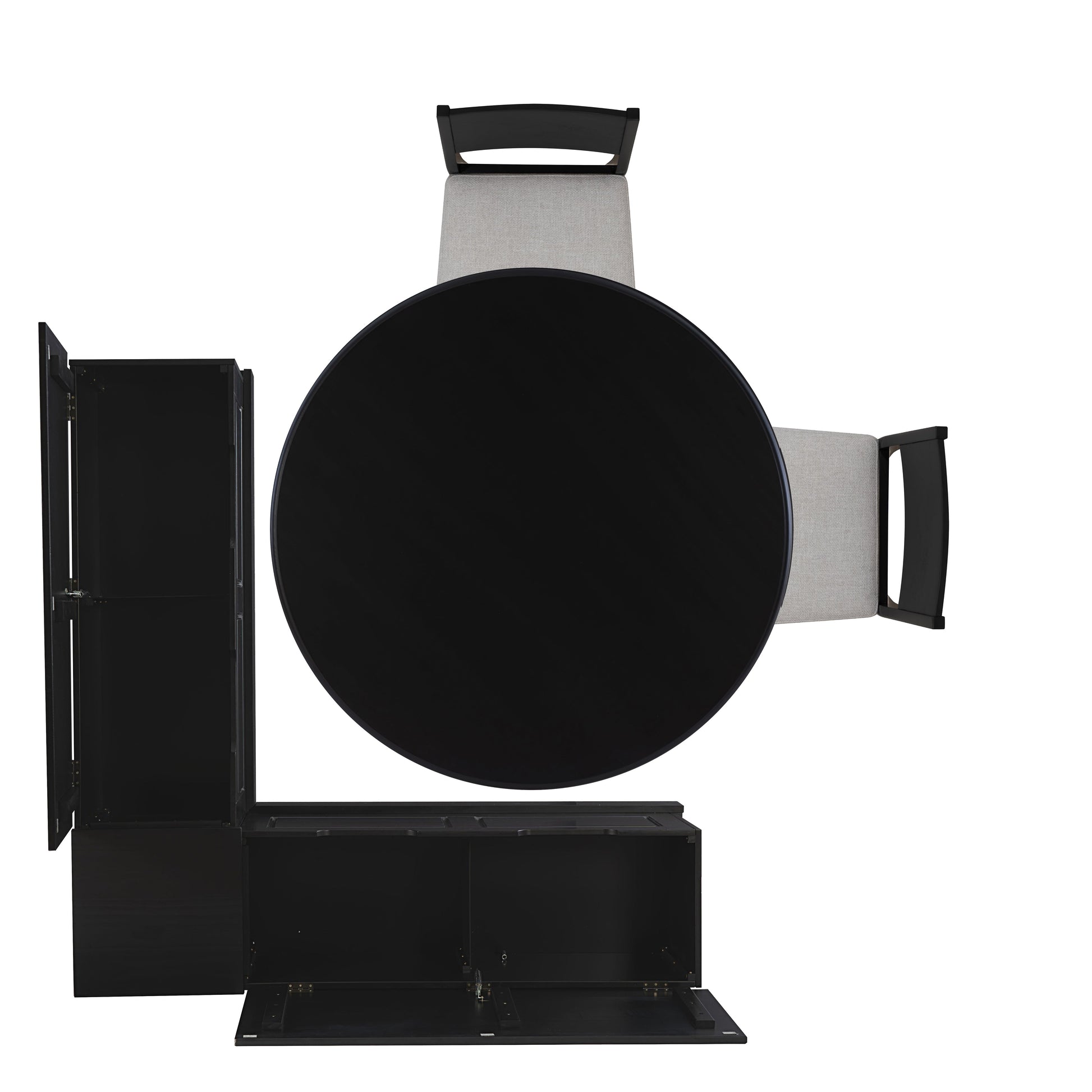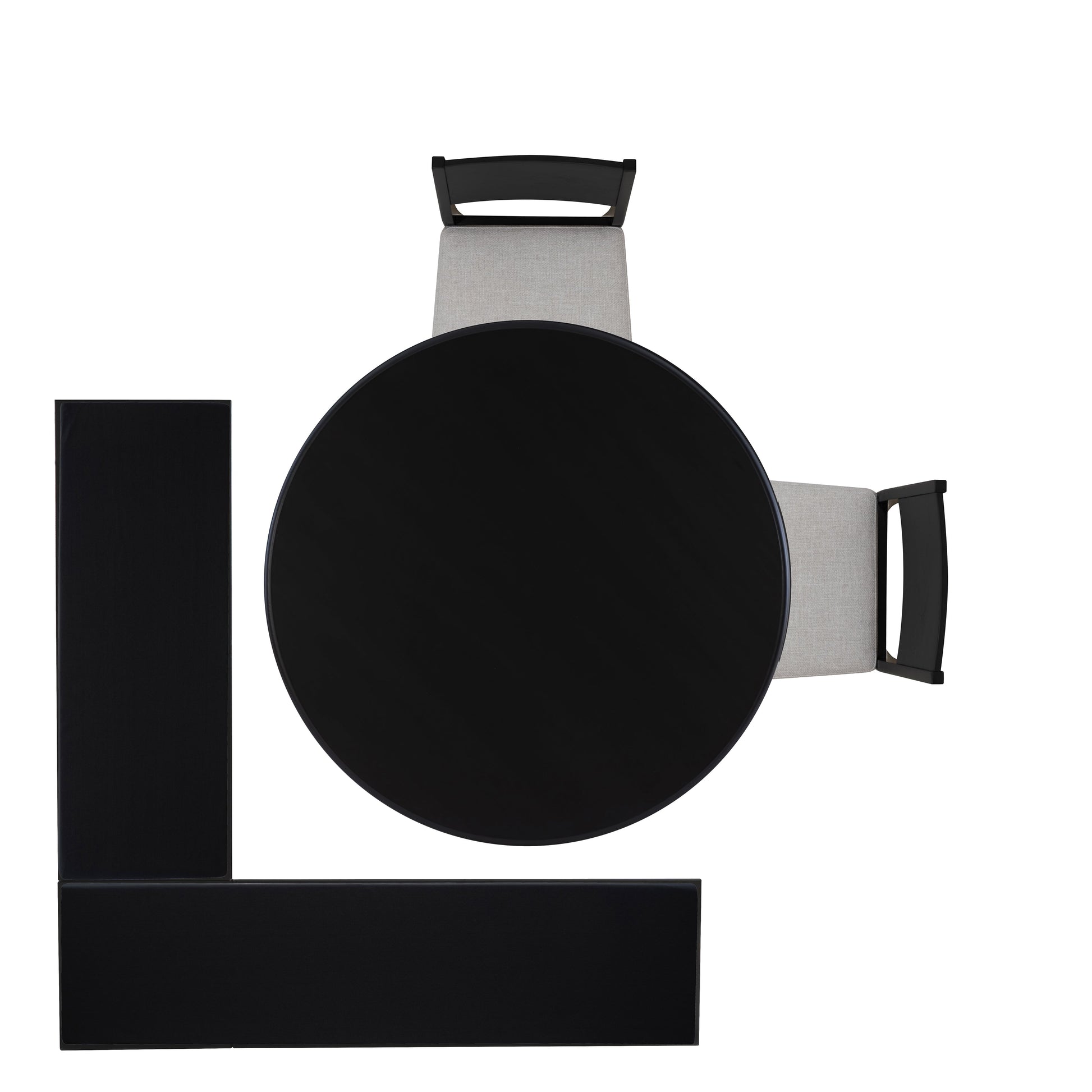 Sublimez votre salle à manger avec cet ensemble ingénieusement conçu, composé d'une banquette d'angle sans dossier, d'une table ronde à pied central et de deux chaises rembourrées. La banquette en pin massif, d'un noir profond, est dotée de rangements intégrés sous chaque assise, vous permettant de garder votre espace bien rangé sans sacrifier l'élégance. La table à pied central apporte une touche sculpturale grâce à son piètement épuré et son plateau rond. Deux chaises modernes complètent l'ensemble avec leurs dossiers confortables et leurs coussins moelleux gris clair. Idéal pour les cuisines, les appartements ouverts ou les petits espaces, cet ensemble allie fonctionnalité moderne et esthétique raffinée.