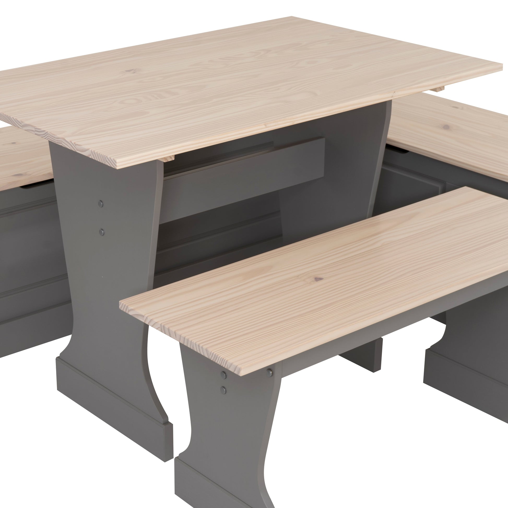 Créez un coin repas chaleureux et fonctionnel avec cet ensemble de salle à manger d'angle 3 pièces de style campagnard, conçu avec soin pour les repas décontractés, les cafés du matin et les moments du quotidien. L'ensemble comprend une banquette d'angle en L, une table tréteau assortie et un banc assorti, tous fabriqués en pin Elliotis massif et finis dans une charmante palette bicolore grise et érable. Le vernis UV met en valeur le grain naturel du bois tout en le protégeant de l'usure quotidienne. Chaque pièce allie le design campagnard classique à une praticité moderne, ce qui la rend idéale pour les petites cuisines, les coins repas ou les salles à manger ouvertes. Grâce à sa grande capacité de charge et à son style intemporel, cet ensemble transforme n'importe quel coin en un espace aussi agréable à vivre qu'à regarder.