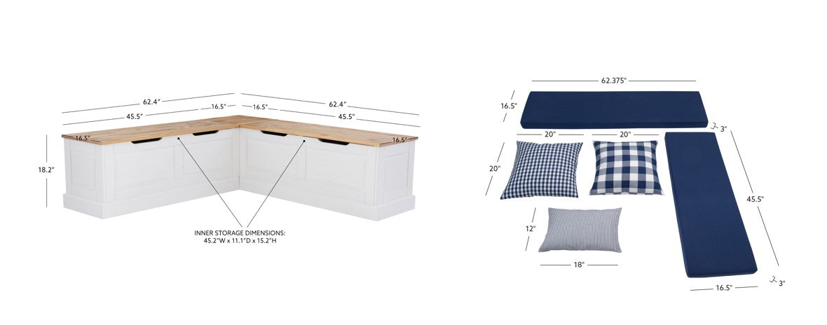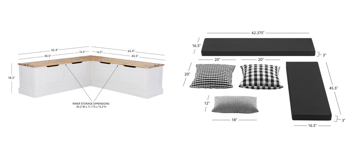 Installez-vous confortablement et avec style dans notre coin repas sans dossier, un modèle polyvalent au charmant design bicolore naturel et blanc qui allie la chaleur rustique à l'élégance champêtre. Chaque ensemble comprend un coussin et des oreillers assortis, disponibles dans un large choix de couleurs, pour une touche de personnalité et de confort dans votre espace. Conçu pour être pratique, ses housses amovibles facilitent l'entretien, tandis que le mélange de motifs et de textures crée une ambiance chaleureuse et accueillante. Idéal pour un coin repas cosy ou un espace de détente convivial, ce coin repas est aussi fonctionnel qu'invitant.