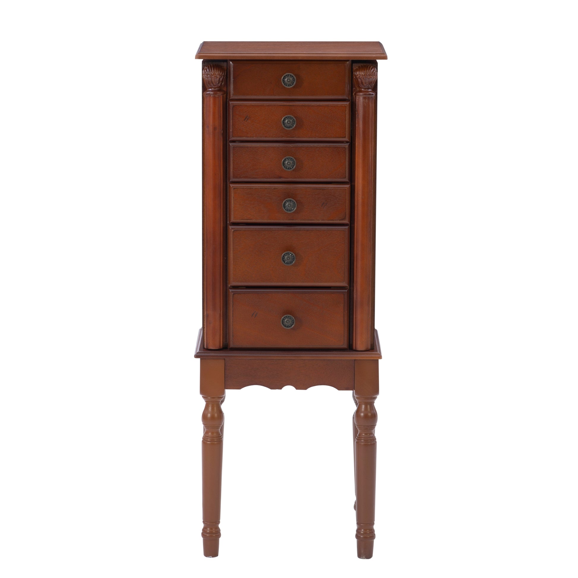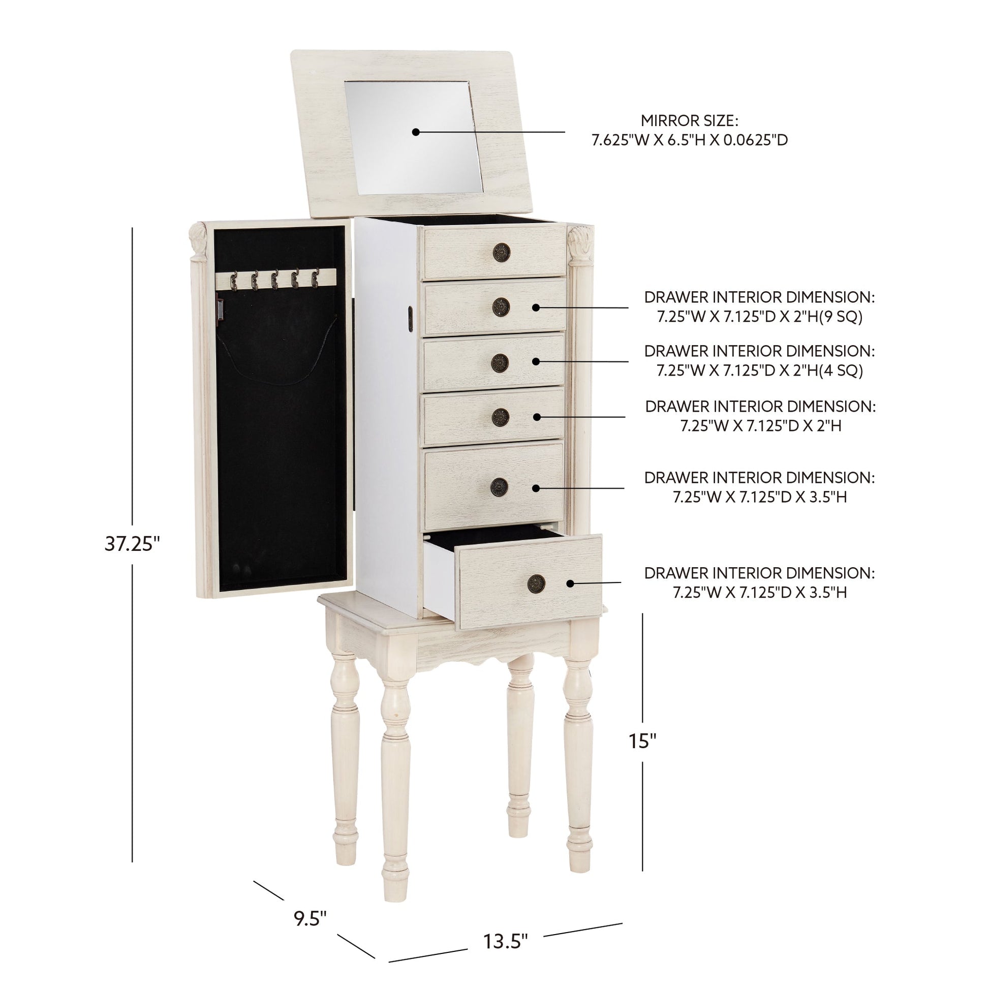 - Agencement polyvalent des tiroirs : Trois petits et deux grands tiroirs offrent un rangement flexible pour tout, des boucles d’oreilles délicates aux pièces plus imposantes.