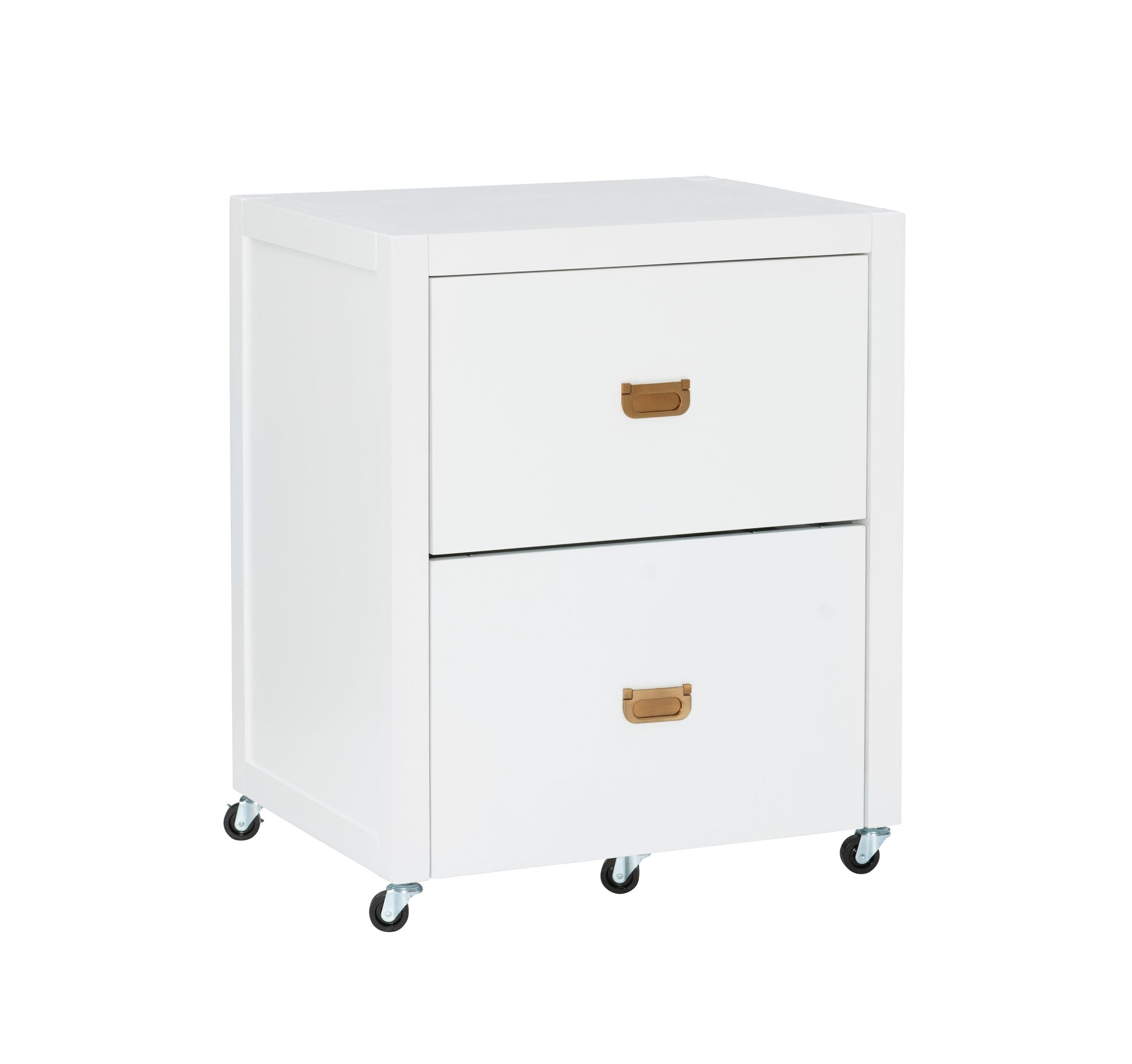 Organisez-vous facilement avec ce classeur à deux tiroirs. Ses roulettes pivotantes avec freins permettent un déplacement aisé, tandis que les glissières métalliques et les poignées de style campagne rose doré offrent un accès facile aux documents. Mesurant 68 cm de haut et 56 cm de profondeur, ce classeur se glisse facilement dans un coin et sert également de support idéal pour une imprimante. Le tiroir inférieur est conçu pour les dossiers de format standard ou légal, et le tiroir supérieur est pratique pour ranger diverses fournitures. Sa finition laquée blanche s'harmonise avec tous les styles de décoration.