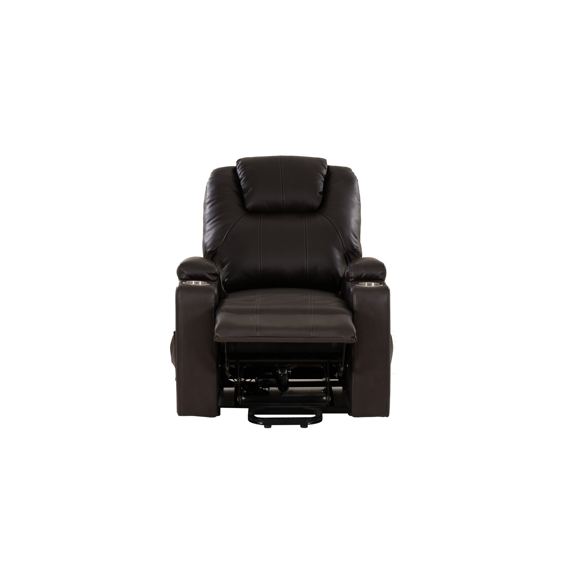 Offrez-vous une détente absolue avec ce fauteuil inclinable dernier cri, conçu pour apporter le confort d'un spa directement dans votre salon. Doté de 8 points de massage et d'une fonction chauffante, ce fauteuil soulage les zones clés de votre corps, contribuant à apaiser les tensions et à améliorer la circulation. Revêtu d'un somptueux similicuir couleur chocolat ou champignon, son revêtement respirant offre l'aspect luxueux du cuir véritable, avec une durabilité et un confort exceptionnels. Grâce à sa télécommande d'inclinaison, vous pouvez facilement ajuster le fauteuil à votre position idéale, tandis que deux porte-gobelets en acier inoxydable et des poches de rangement latérales vous permettent de garder vos essentiels à portée de main. Que ce soit pour vous détendre après une longue journée ou pour profiter d'une soirée cinéma confortable, ce fauteuil inclinable transforme n'importe quel espace en un havre de paix et de bien-être.