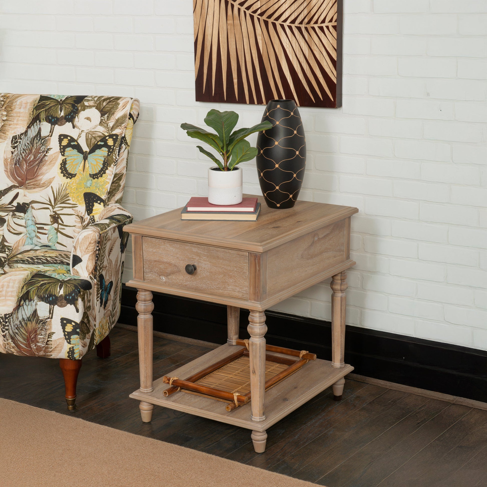 Simple, robuste et d'une polyvalence infinie, cette table d'appoint apporte une touche chaleureuse et intemporelle aux intérieurs contemporains comme classiques. Disponible en noir, noisette, naturel et blanc, elle est dotée de pieds tournés en acacia massif et d'une structure en MDF résistant, avec un plateau en placage d'acacia assorti qui met en valeur le veinage riche et naturel du bois. Le savoir-faire artisanal se révèle dans les bords biseautés et la teinture appliquée à la main, tandis qu'un tiroir unique permet de ranger discrètement les petits objets. Une étagère inférieure ouverte offre un espace de rangement pour les livres, les paniers ou les objets du quotidien. D'une hauteur de 76 cm et supportant jusqu'à 68 kg, elle s'accorde parfaitement avec les sièges d'une hauteur comprise entre 41 et 58 cm – idéale dans une entrée, à côté d'un canapé ou comme table de chevet.