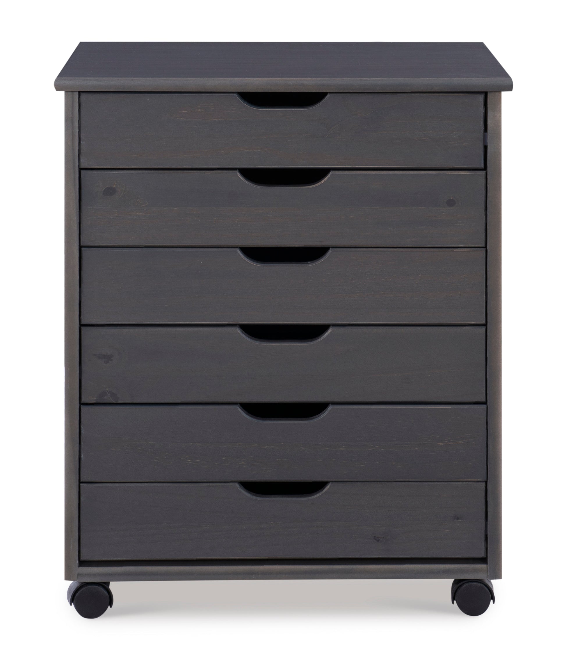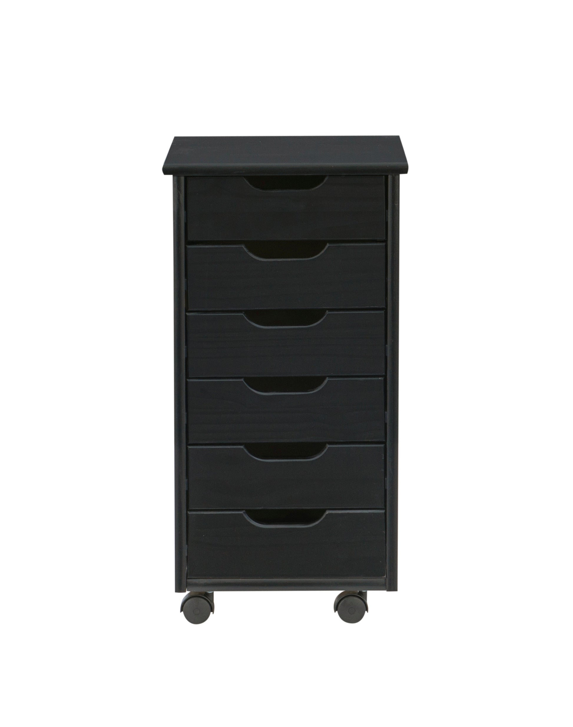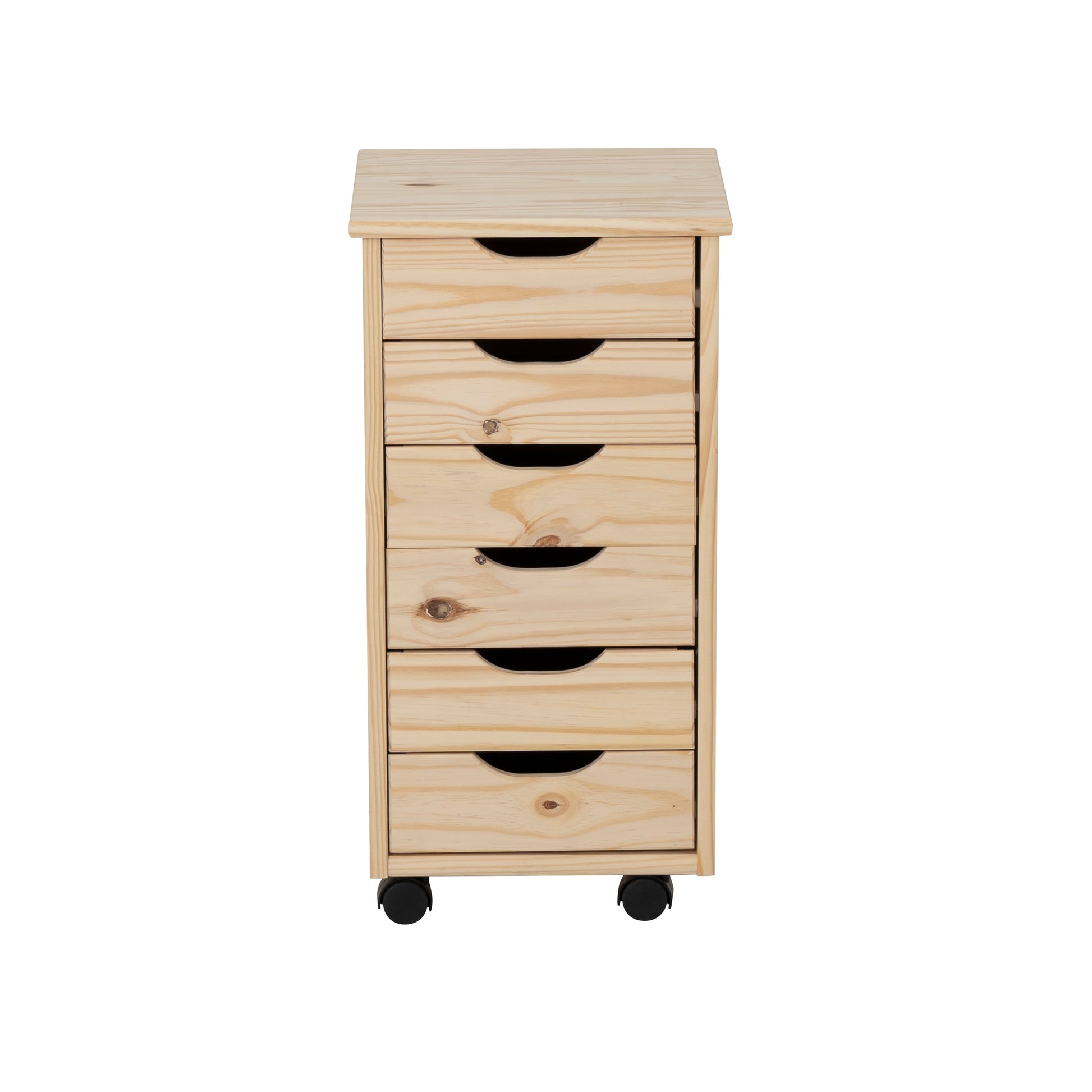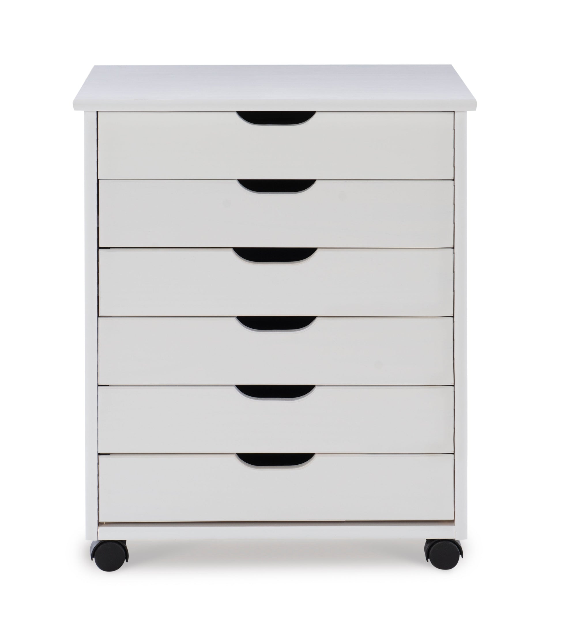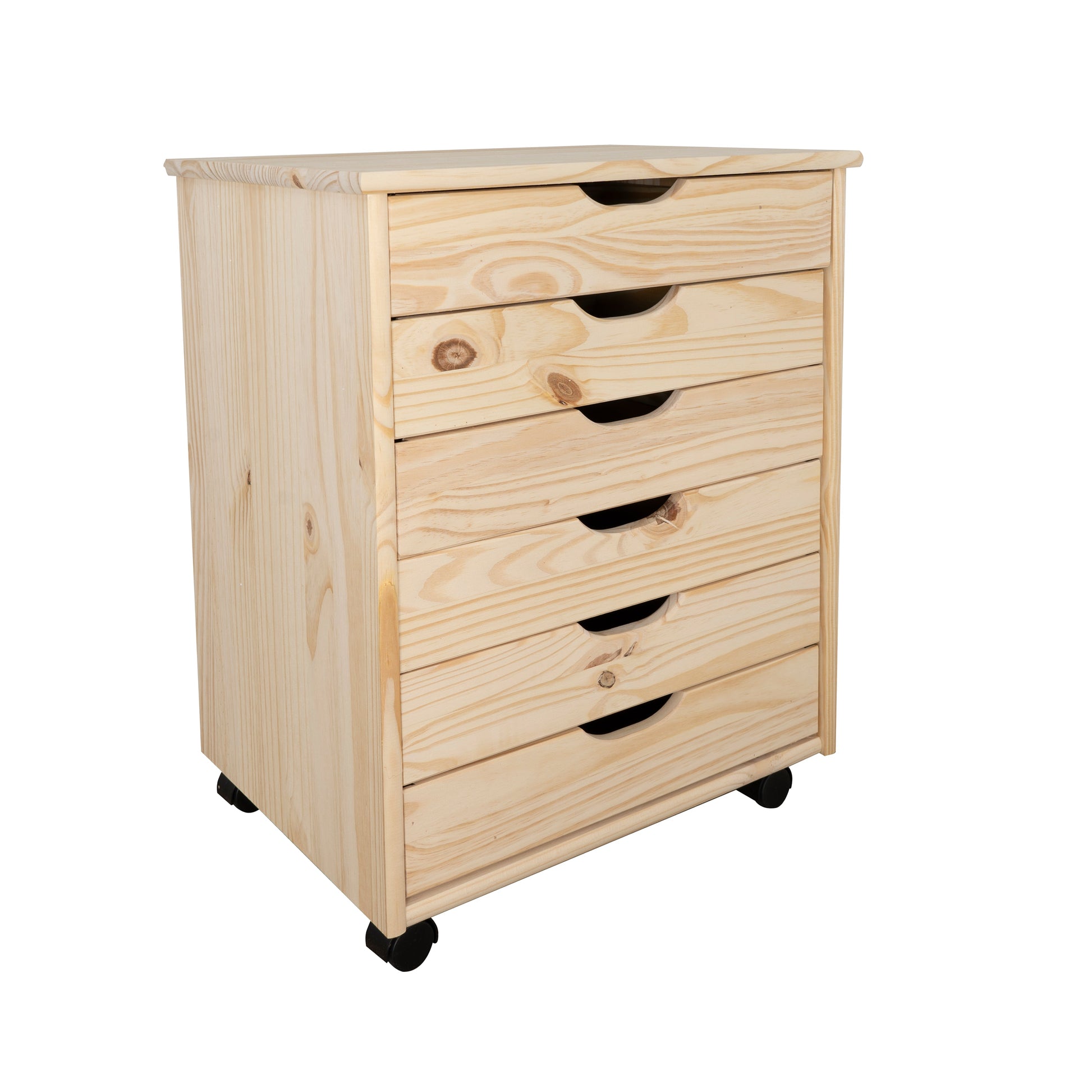 Fabriqué avec une structure robuste en pin et disponible en plusieurs finitions, ce meuble offre un rangement fonctionnel et une esthétique moderne et épurée. Ses six tiroirs offrent un espace généreux pour ranger fournitures de bureau, matériel de loisirs créatifs, accessoires de mode et articles ménagers essentiels. Le système de fermeture à glissières fluides et les poignées encastrées permettent une ouverture et une fermeture sans effort, tandis que sa conception compacte est idéale pour optimiser les petits espaces. Les roulettes assurent un déplacement aisé et fluide. D'une hauteur de 65,4 cm, ce meuble se place parfaitement à côté d'un bureau, d'une coiffeuse, d'un lavabo ou dans un placard.