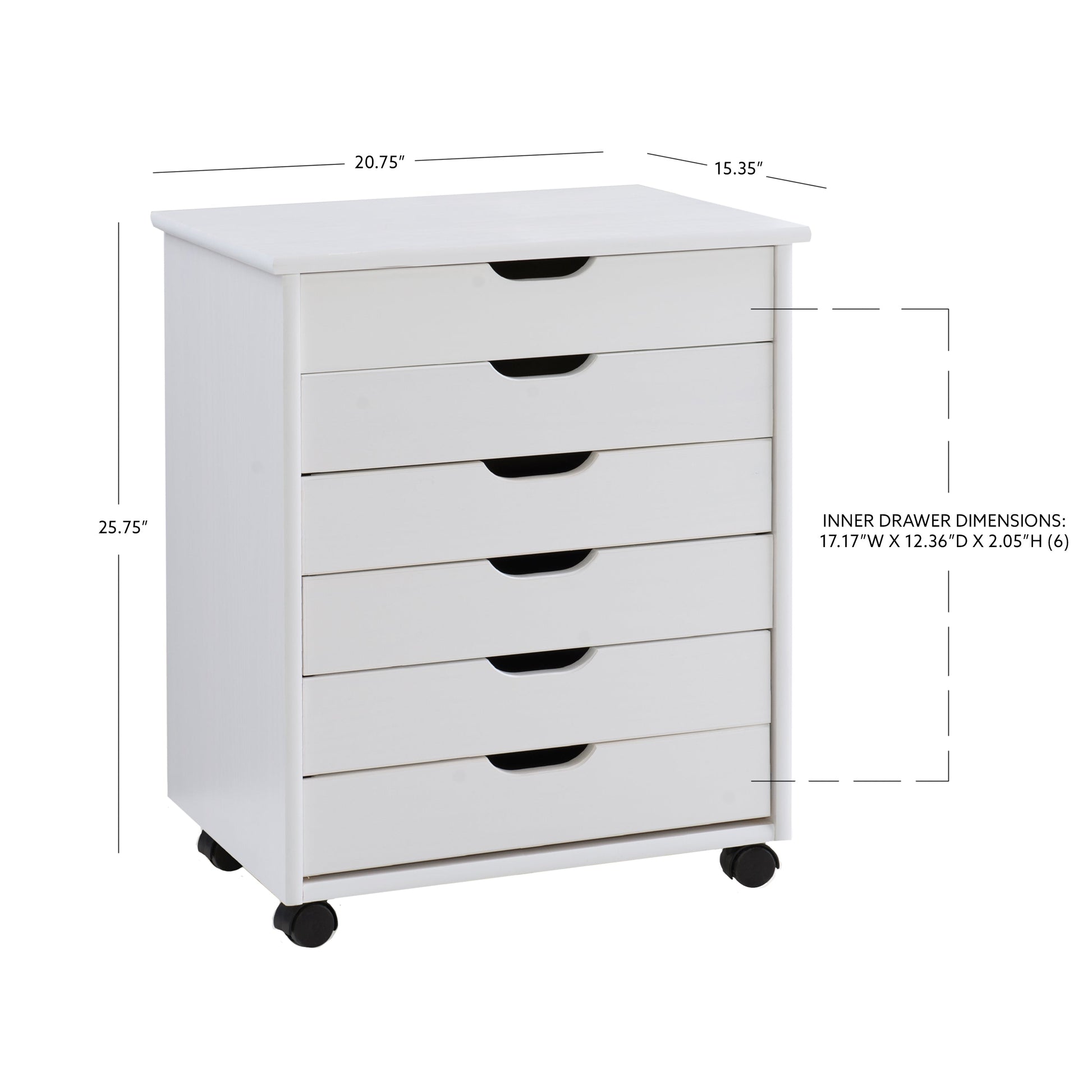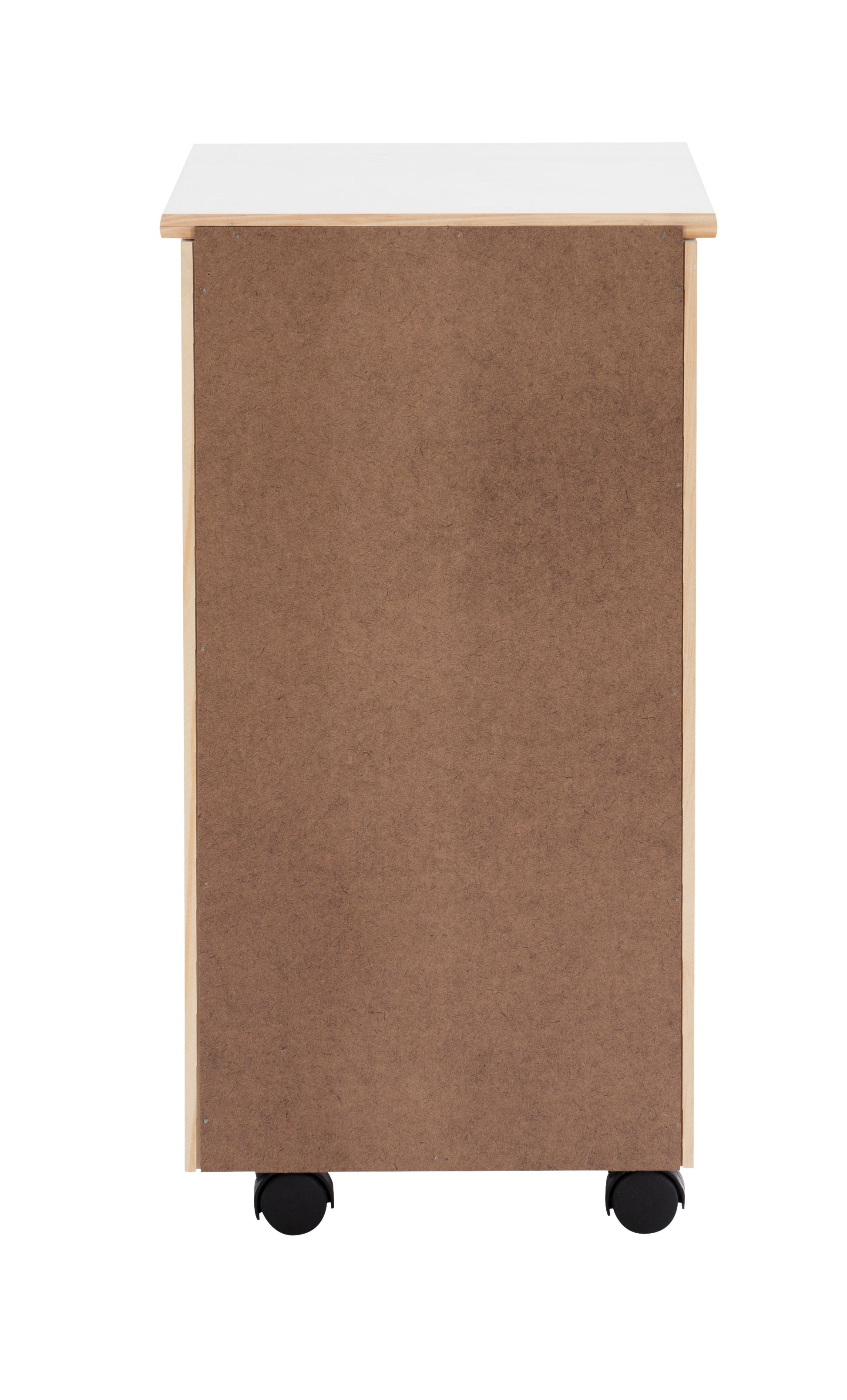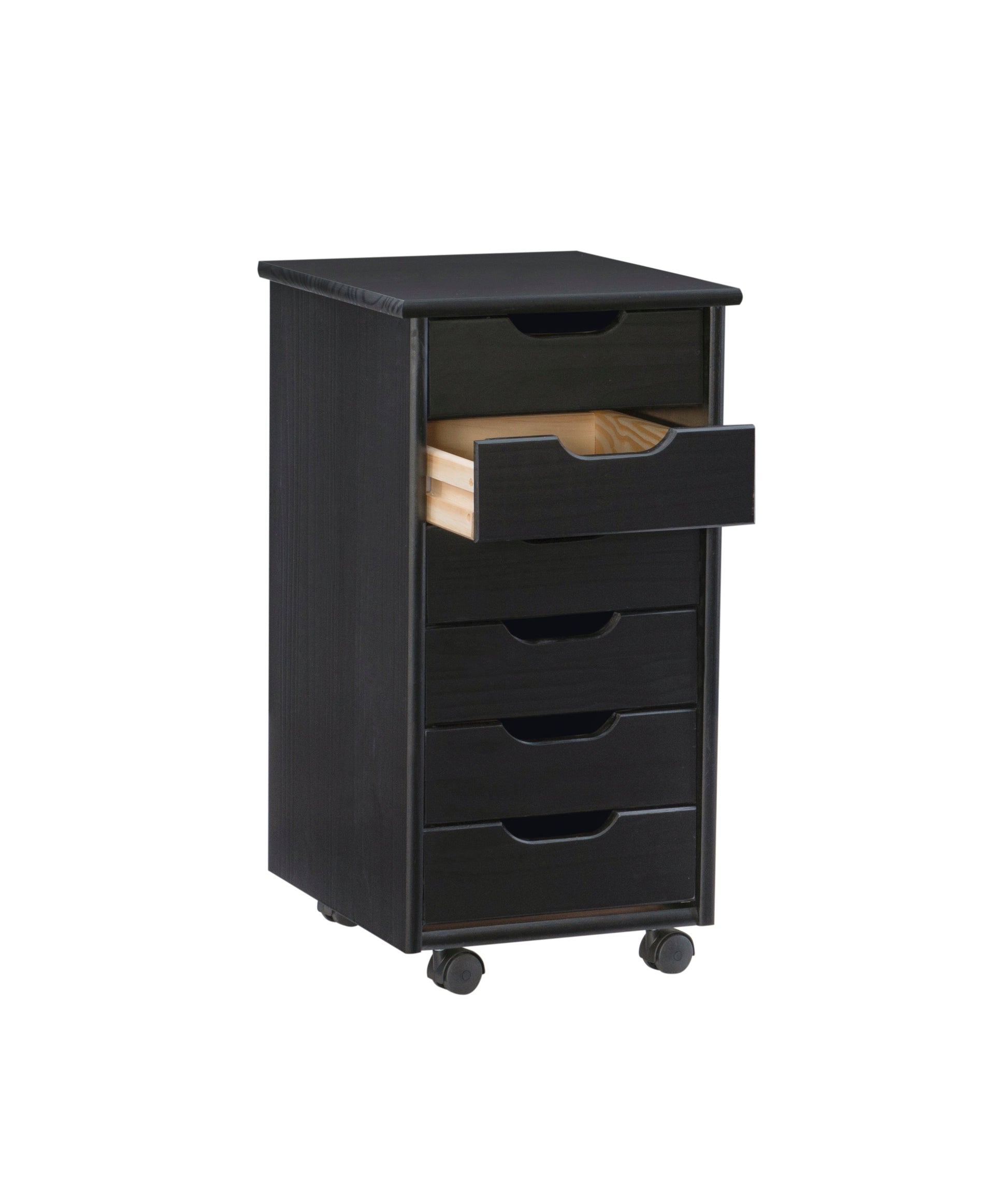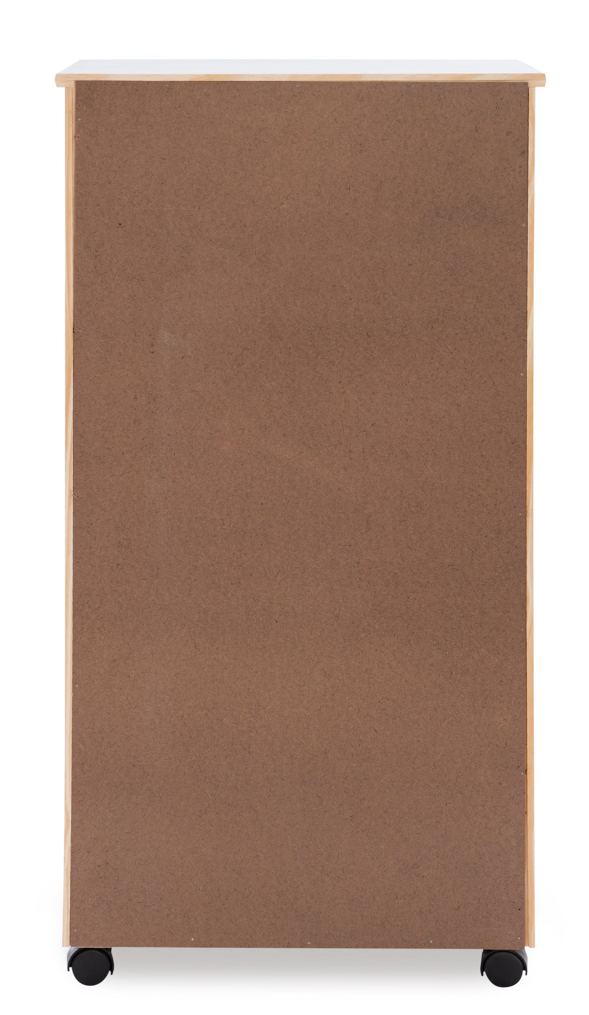 Fabriqué avec une structure robuste en pin et disponible en plusieurs finitions, ce meuble offre un rangement fonctionnel et une esthétique moderne et épurée. Ses six tiroirs offrent un espace généreux pour ranger fournitures de bureau, matériel de loisirs créatifs, accessoires de mode et articles ménagers essentiels. Le système de fermeture à glissières fluides et les poignées encastrées permettent une ouverture et une fermeture sans effort, tandis que sa conception compacte est idéale pour optimiser les petits espaces. Les roulettes assurent un déplacement aisé et fluide. D'une hauteur de 65,4 cm, ce meuble se place parfaitement à côté d'un bureau, d'une coiffeuse, d'un lavabo ou dans un placard.