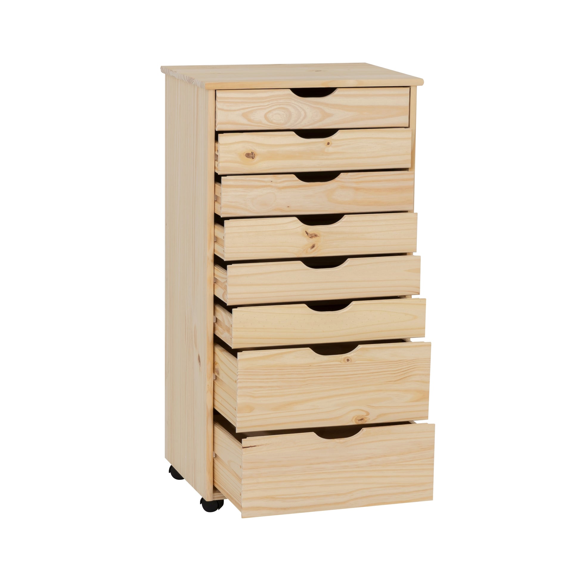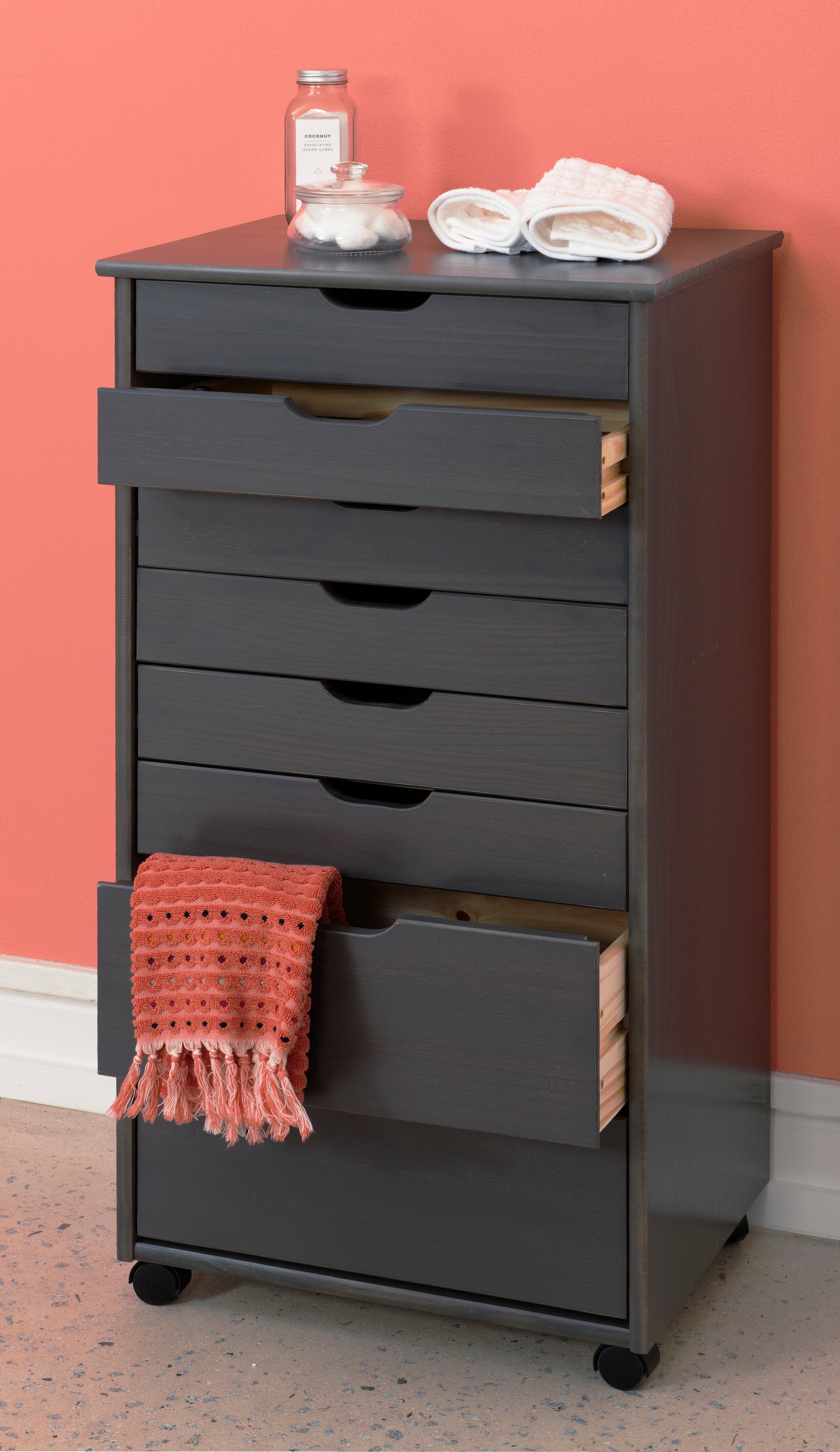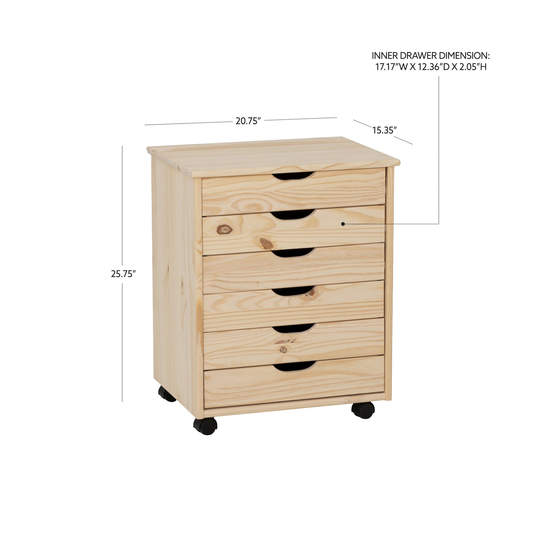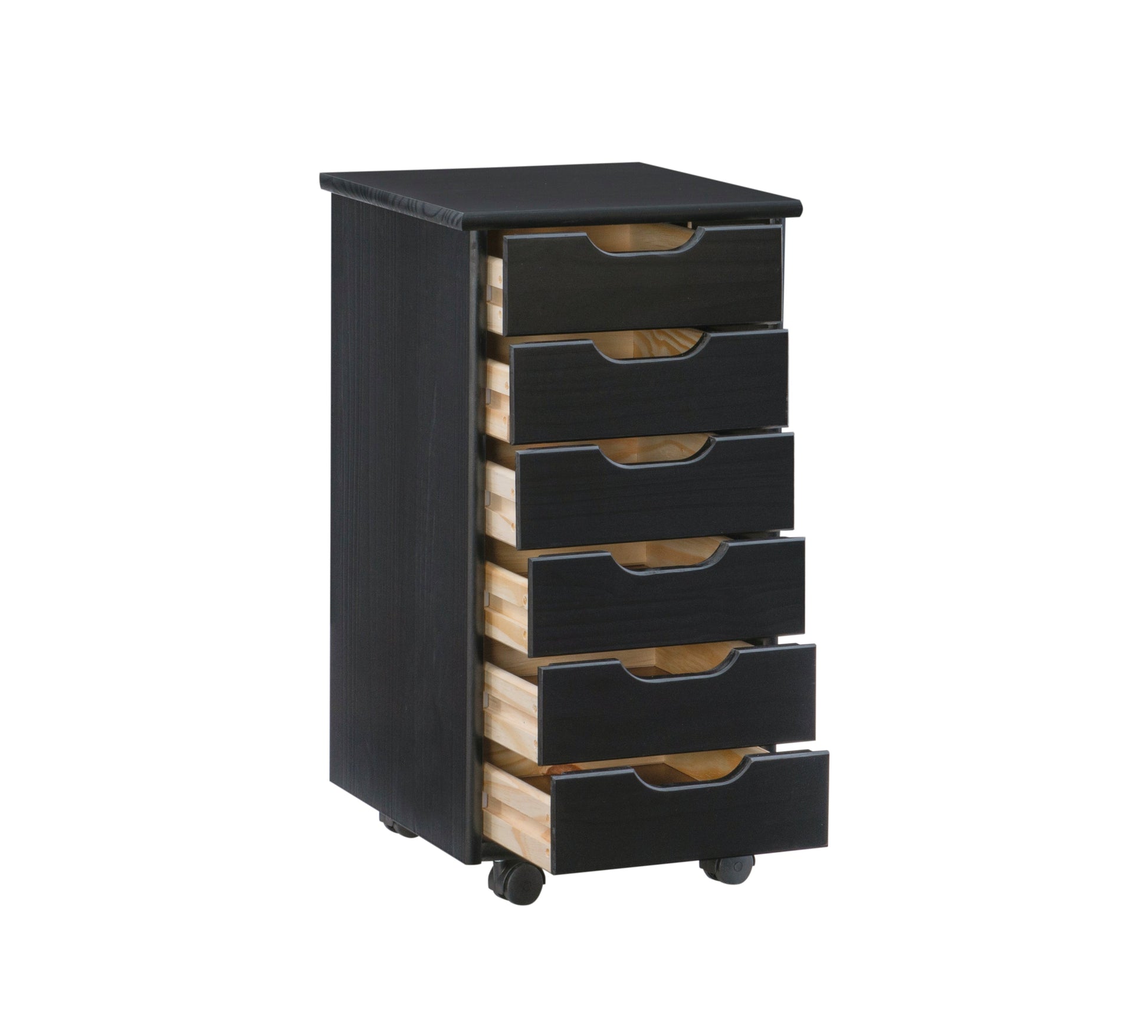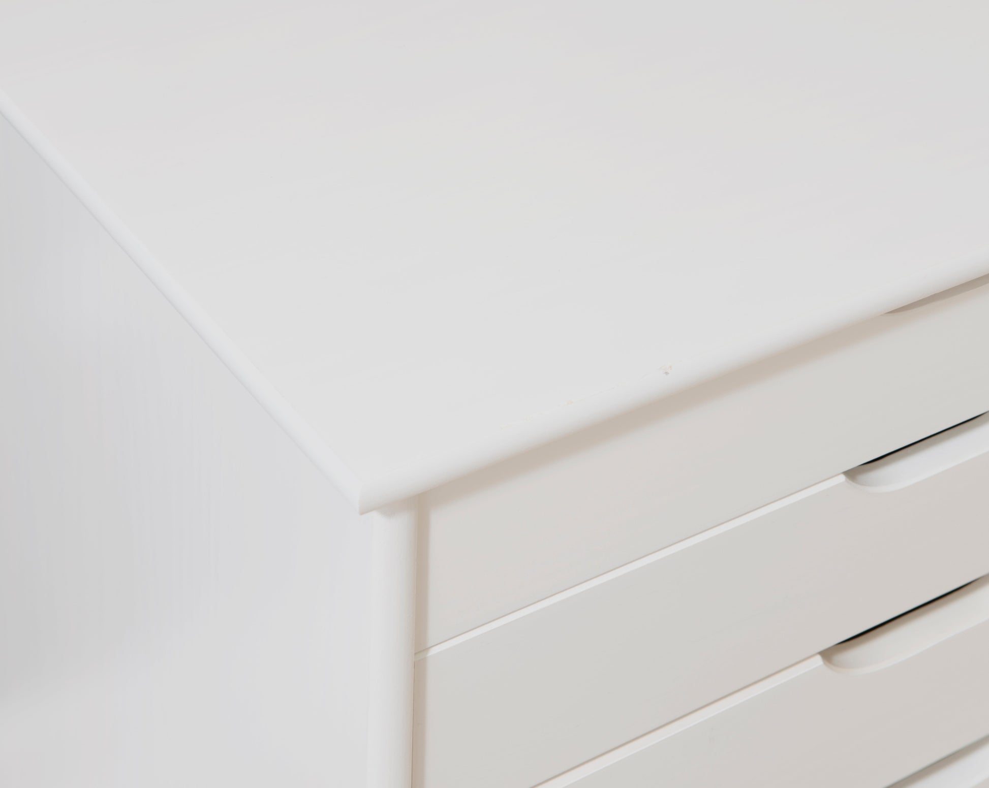Fabriqué avec une structure robuste en pin et disponible en plusieurs finitions, ce meuble offre un rangement fonctionnel et une esthétique moderne et épurée. Ses six tiroirs offrent un espace généreux pour ranger fournitures de bureau, matériel de loisirs créatifs, accessoires de mode et articles ménagers essentiels. Le système de fermeture à glissières fluides et les poignées encastrées permettent une ouverture et une fermeture sans effort, tandis que sa conception compacte est idéale pour optimiser les petits espaces. Les roulettes assurent un déplacement aisé et fluide. D'une hauteur de 65,4 cm, ce meuble se place parfaitement à côté d'un bureau, d'une coiffeuse, d'un lavabo ou dans un placard.