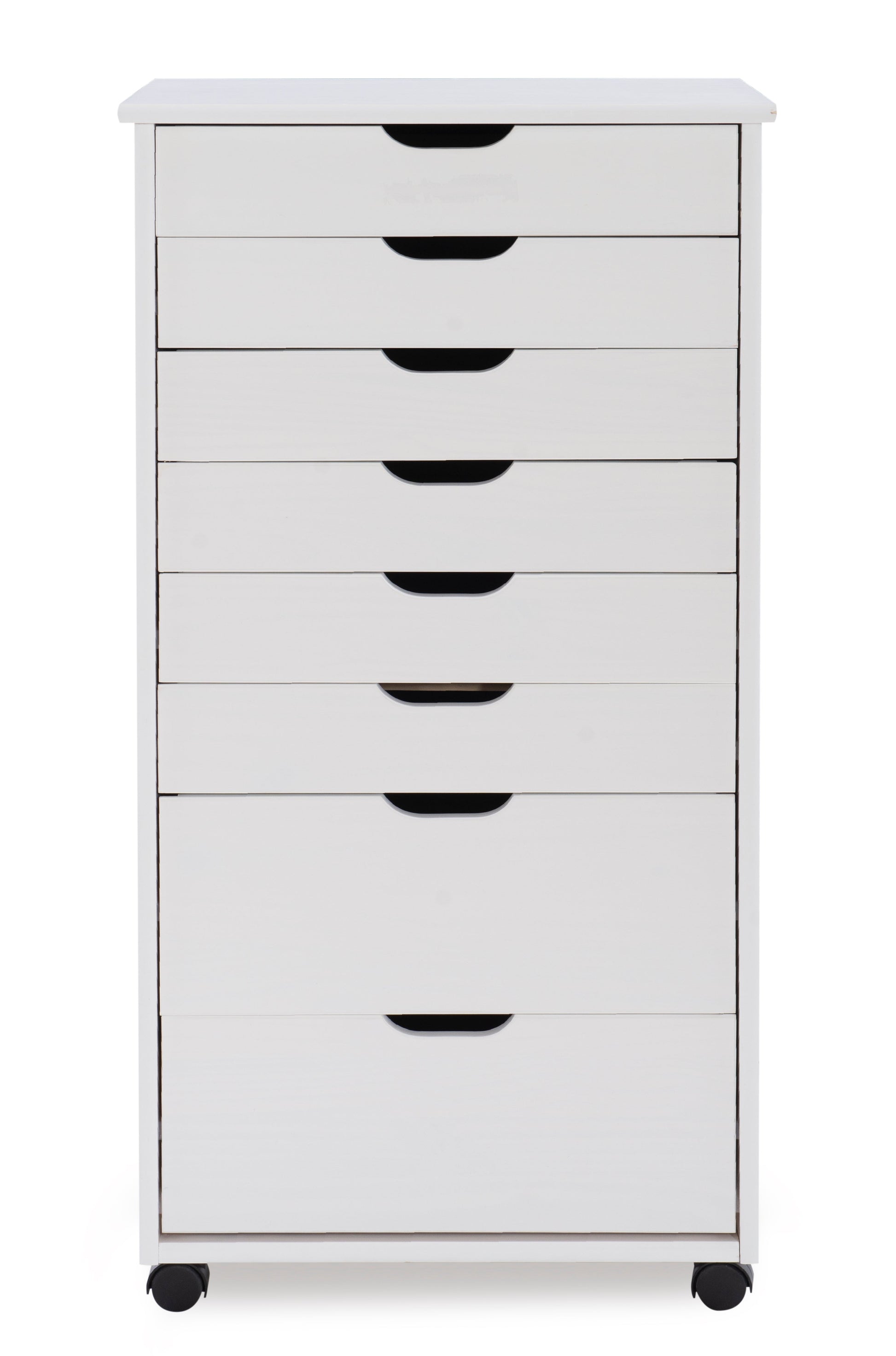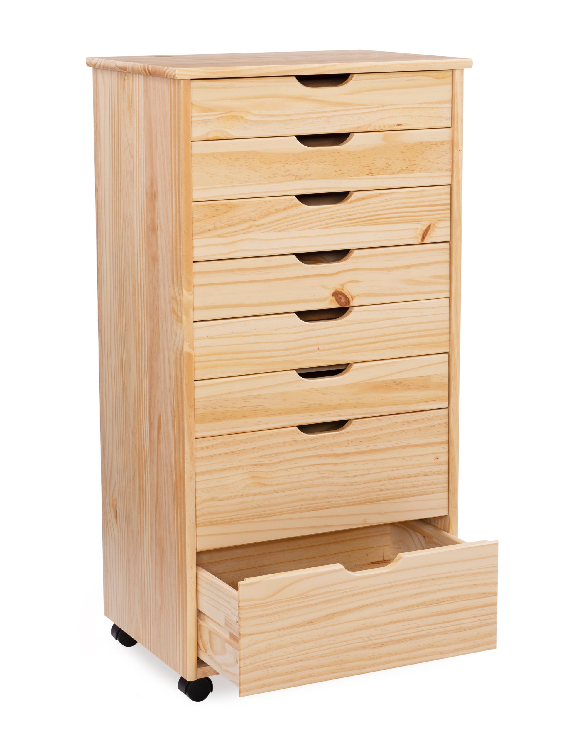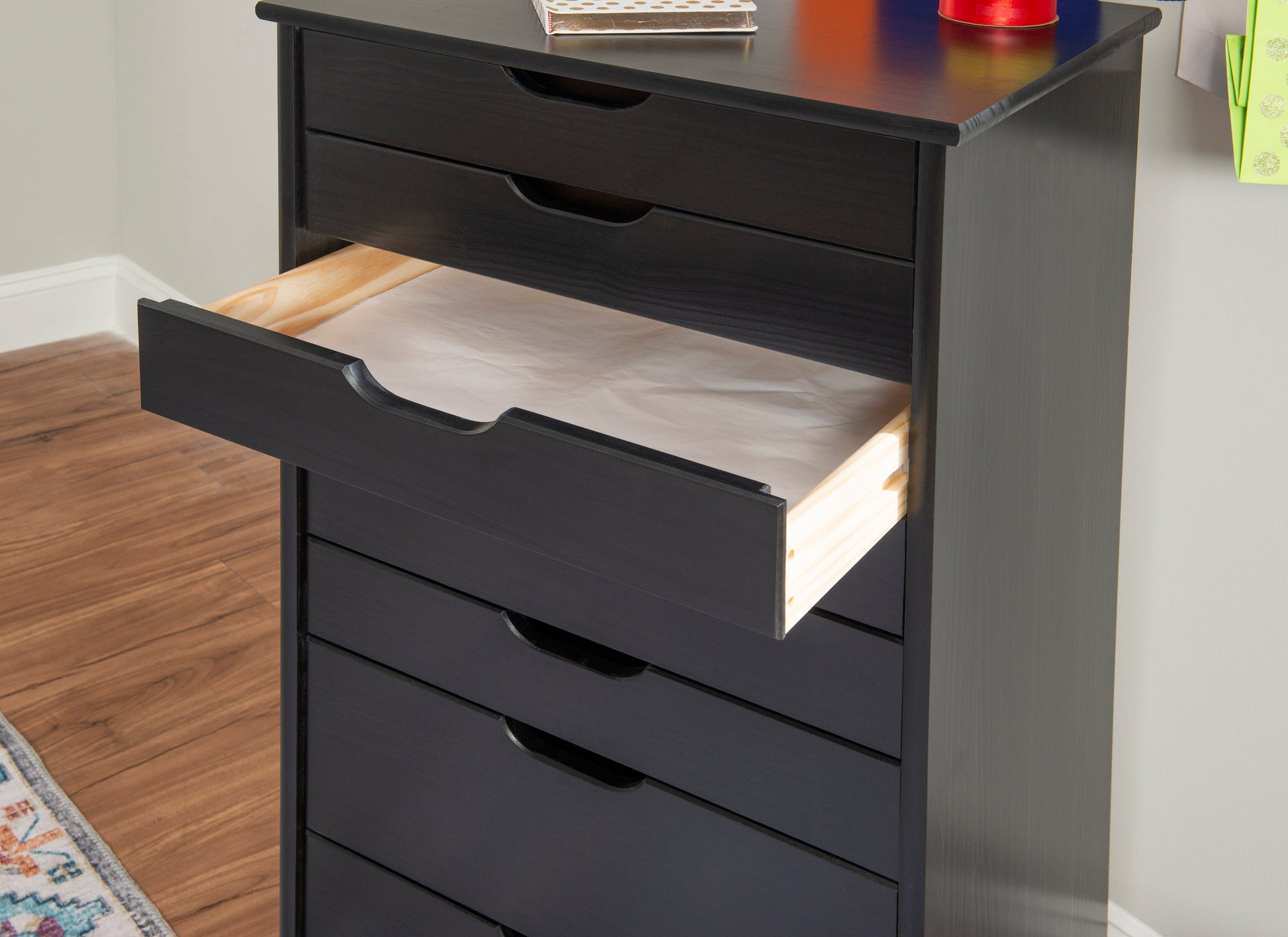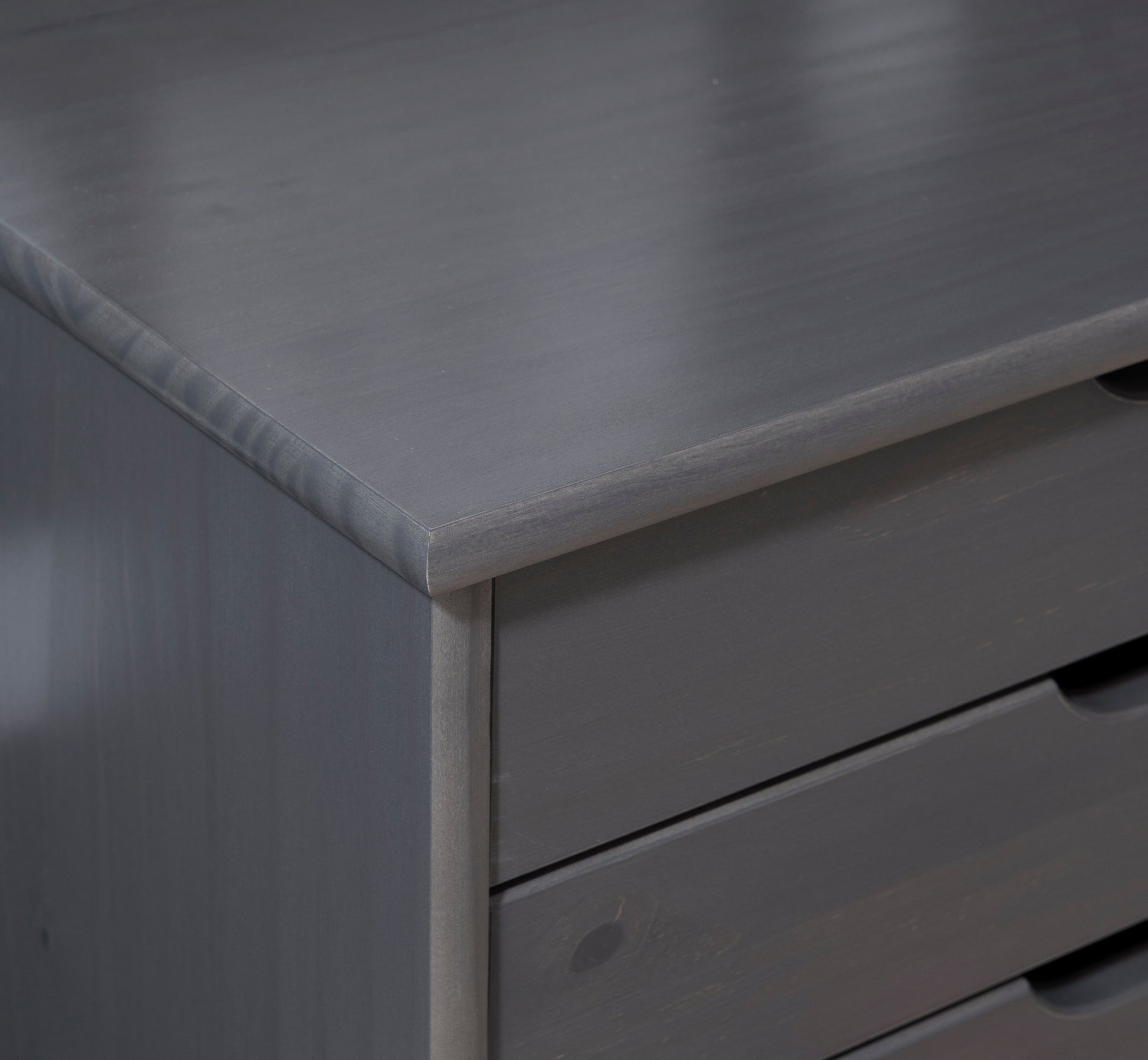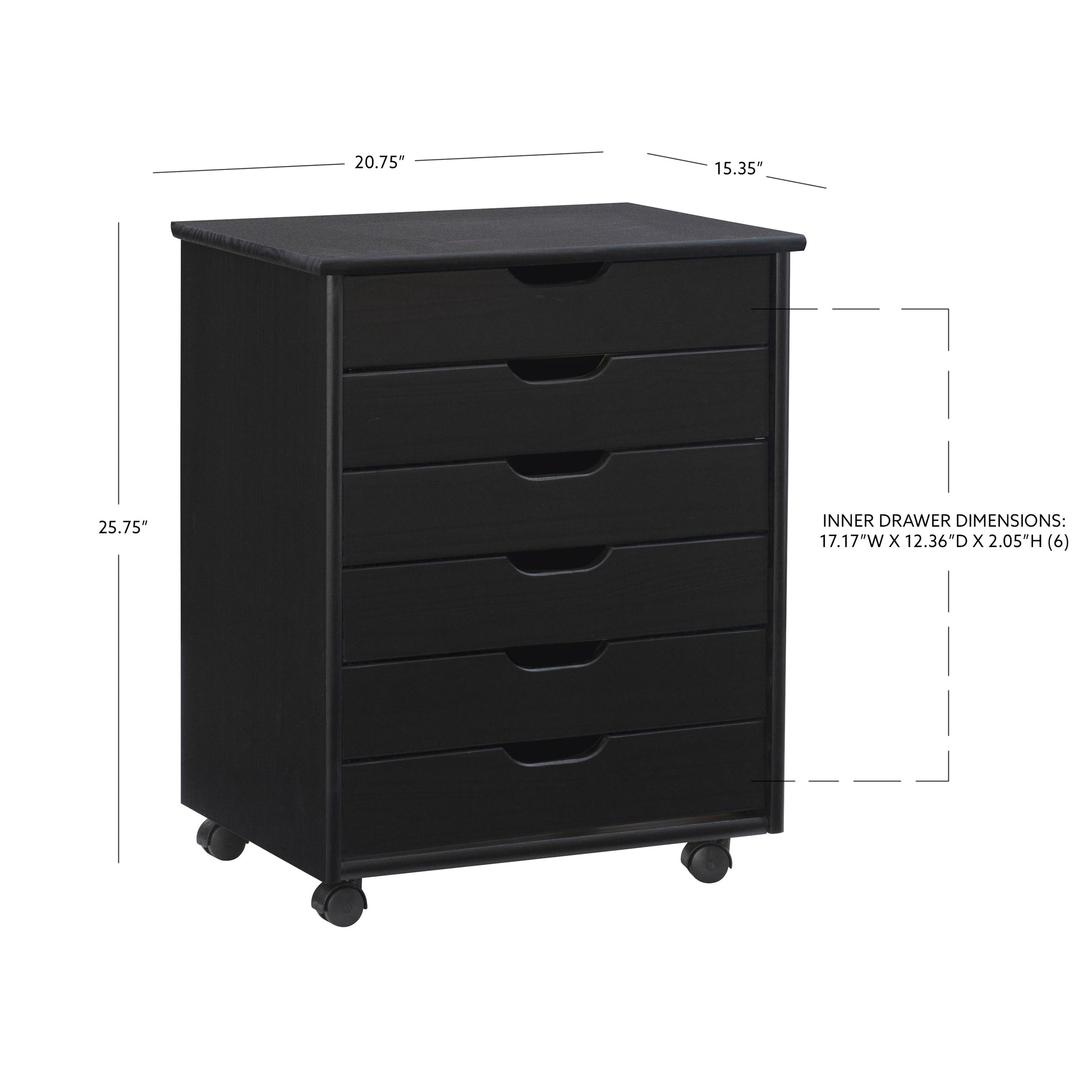 Fabriqué avec une structure robuste en pin et disponible en plusieurs finitions, ce meuble offre un rangement fonctionnel et une esthétique moderne et épurée. Ses six tiroirs offrent un espace généreux pour ranger fournitures de bureau, matériel de loisirs créatifs, accessoires de mode et articles ménagers essentiels. Le système de fermeture à glissières fluides et les poignées encastrées permettent une ouverture et une fermeture sans effort, tandis que sa conception compacte est idéale pour optimiser les petits espaces. Les roulettes assurent un déplacement aisé et fluide. D'une hauteur de 65,4 cm, ce meuble se place parfaitement à côté d'un bureau, d'une coiffeuse, d'un lavabo ou dans un placard.