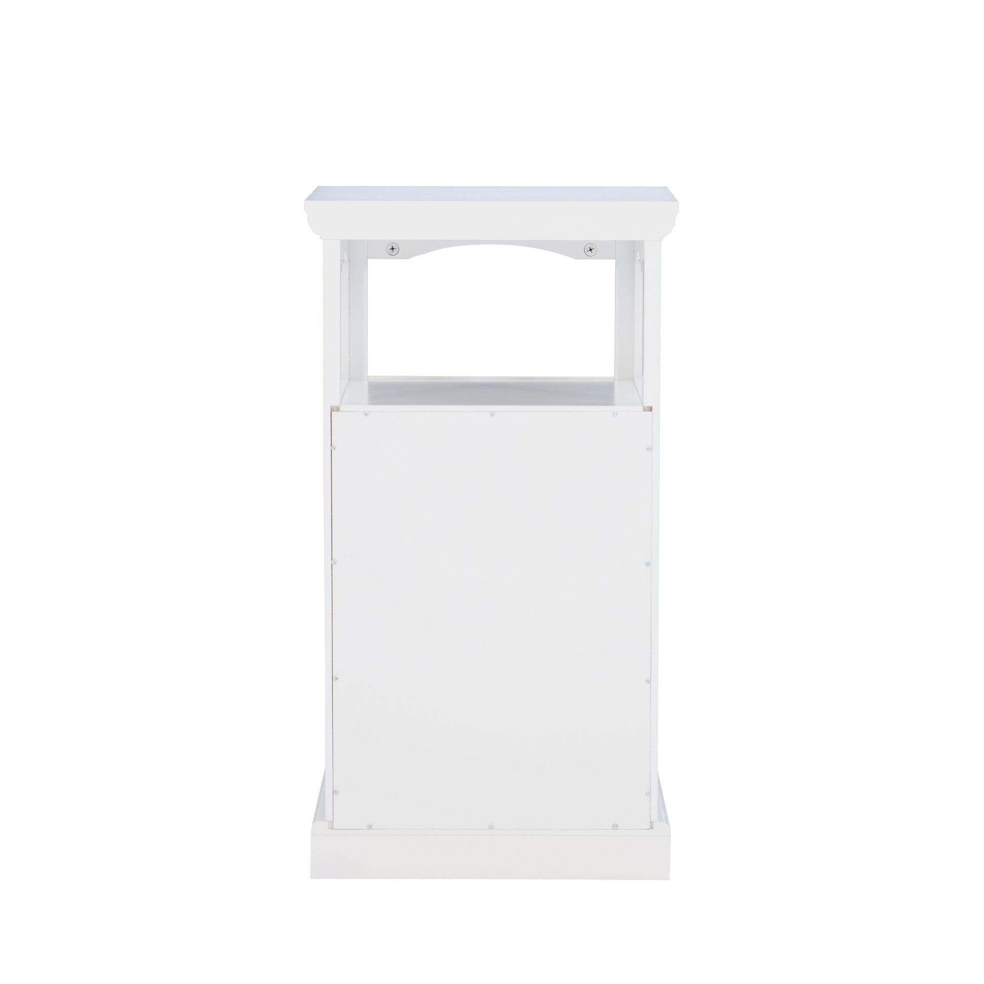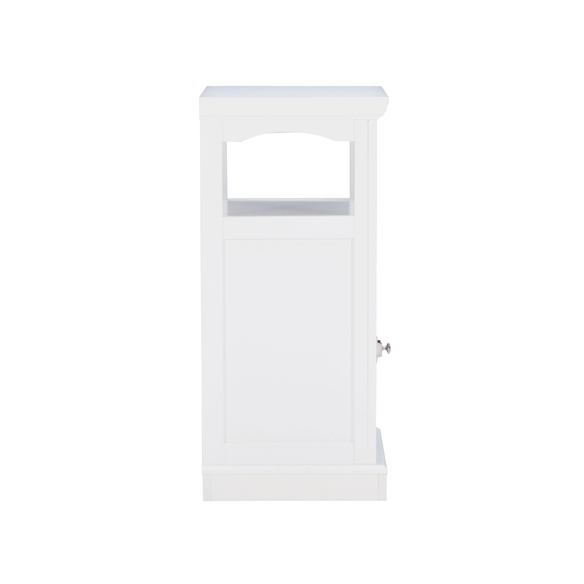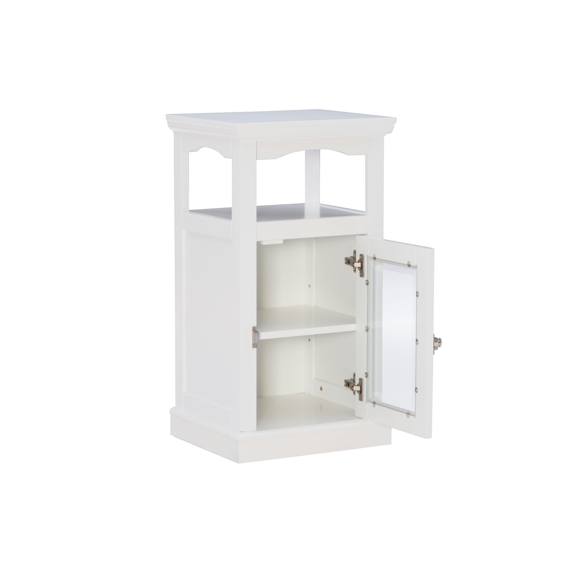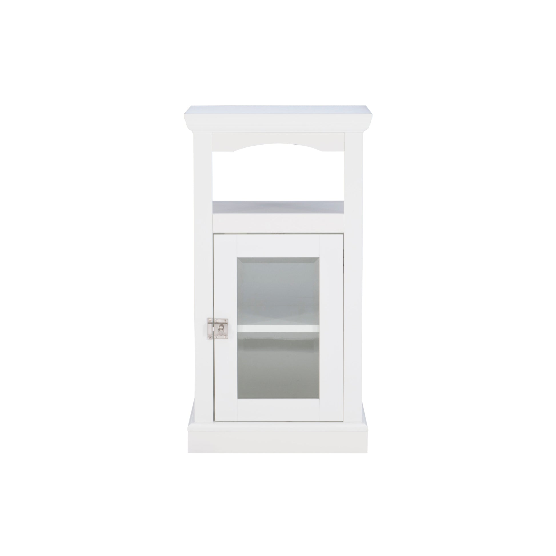 Ce meuble demi-armoire est idéal pour optimiser le rangement dans un petit espace. Sa finition blanche s'harmonise facilement avec tous les styles de décoration. Une porte vitrée, ornée d'une charnière argentée, s'ouvre sur deux étagères. L'une d'elles, ouverte, est parfaite pour garder le linge de maison à portée de main.