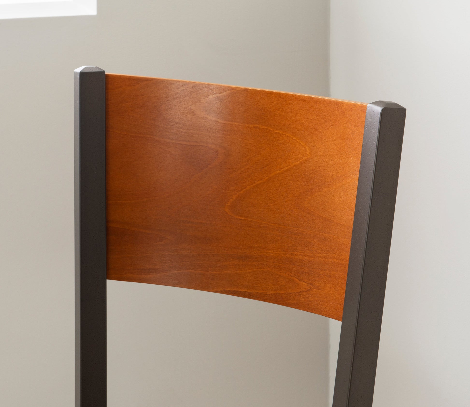 - La finition chêne moyen du dossier en bois s'harmonise avec le brun foncé de l'assise et du cadre.