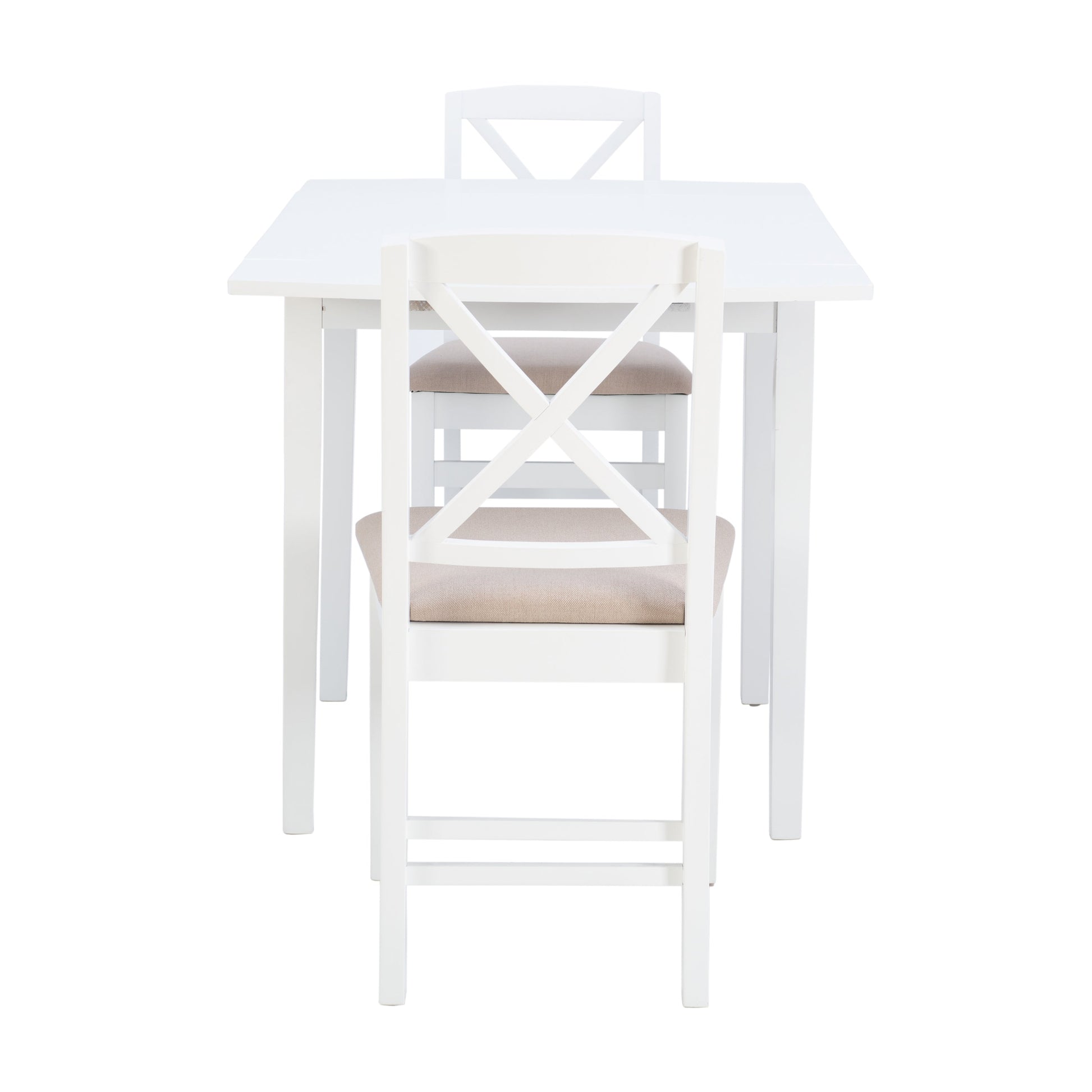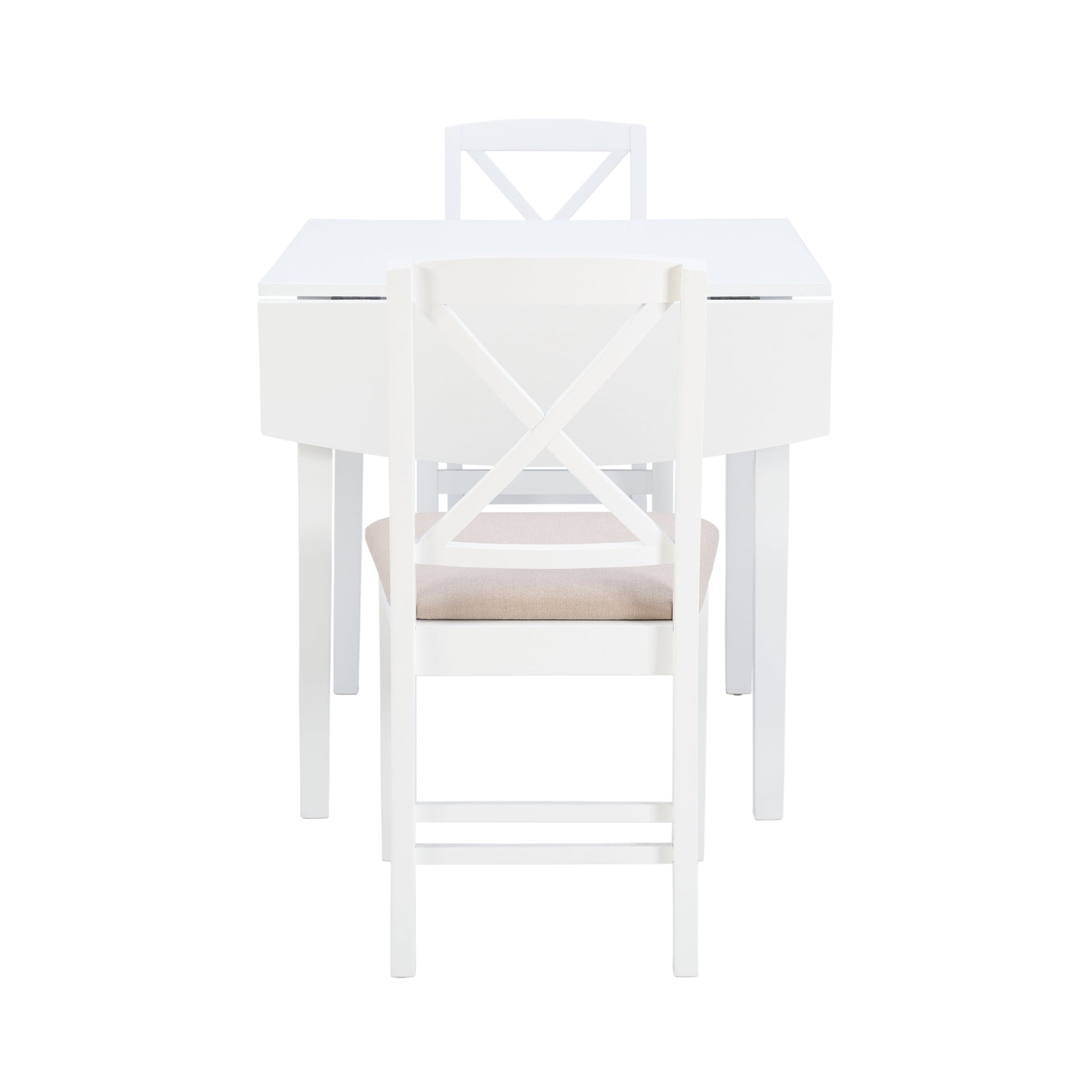 - Chaises assorties à dossier en X : Cet ensemble de salle à manger comprend 2 chaises assorties à dossier en X qui s’adaptent parfaitement sous la table.