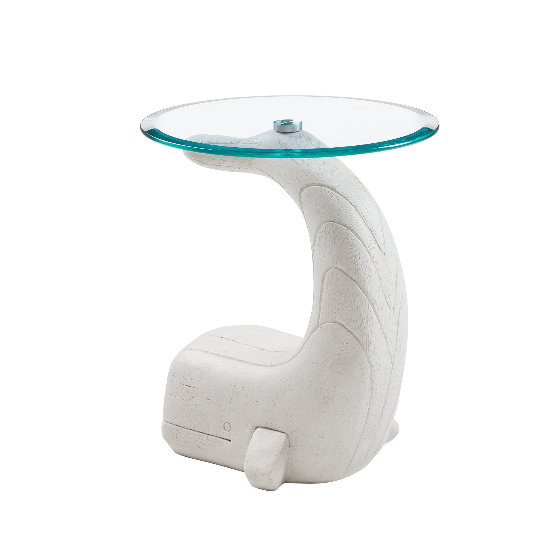 Créez une ambiance unique avec cette table d'appoint sculpturale, moulée d'après un dessin original d'artiste pour imiter l'aspect du bois sculpté. Son piètement en forme de baleine à la finition rustique est à la fois robuste et captivant, surmonté d'un plateau en verre trempé biseauté, résistant à la chaleur et incassable. Avec un diamètre de 50 cm, le plateau en verre offre un espace généreux pour une lampe, des livres ou une composition florale, faisant de cette pièce un objet aussi fonctionnel qu'esthétique.