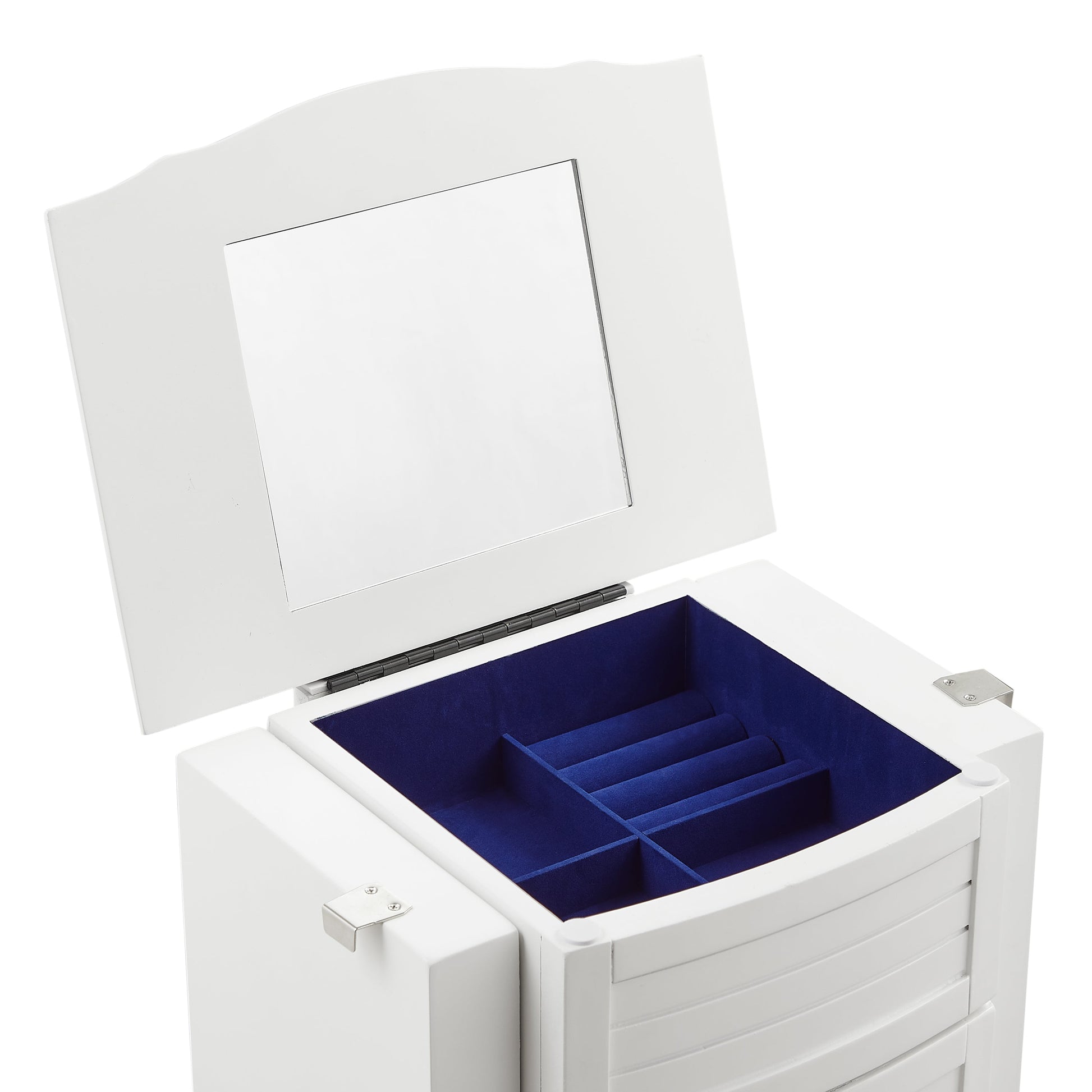 Apportez une touche de charme intemporel et une organisation pratique à votre espace grâce à cette armoire à bijoux polyvalente. Au premier coup d'œil, sa façade à panneaux évoque l'élégance décontractée d'une fenêtre à volets typique des côtes de la Nouvelle-Angleterre. Ouvrez-la et découvrez un intérieur ingénieusement conçu, offrant de multiples espaces de rangement, un miroir et une doublure en feutre doux qui protège vos précieux bijoux. Sa finition blanche éclatante s'harmonise avec tous les styles de décoration. Ce meuble allie le charme côtier à un style transitionnel, pour une fonctionnalité aussi remarquable qu'élégance.