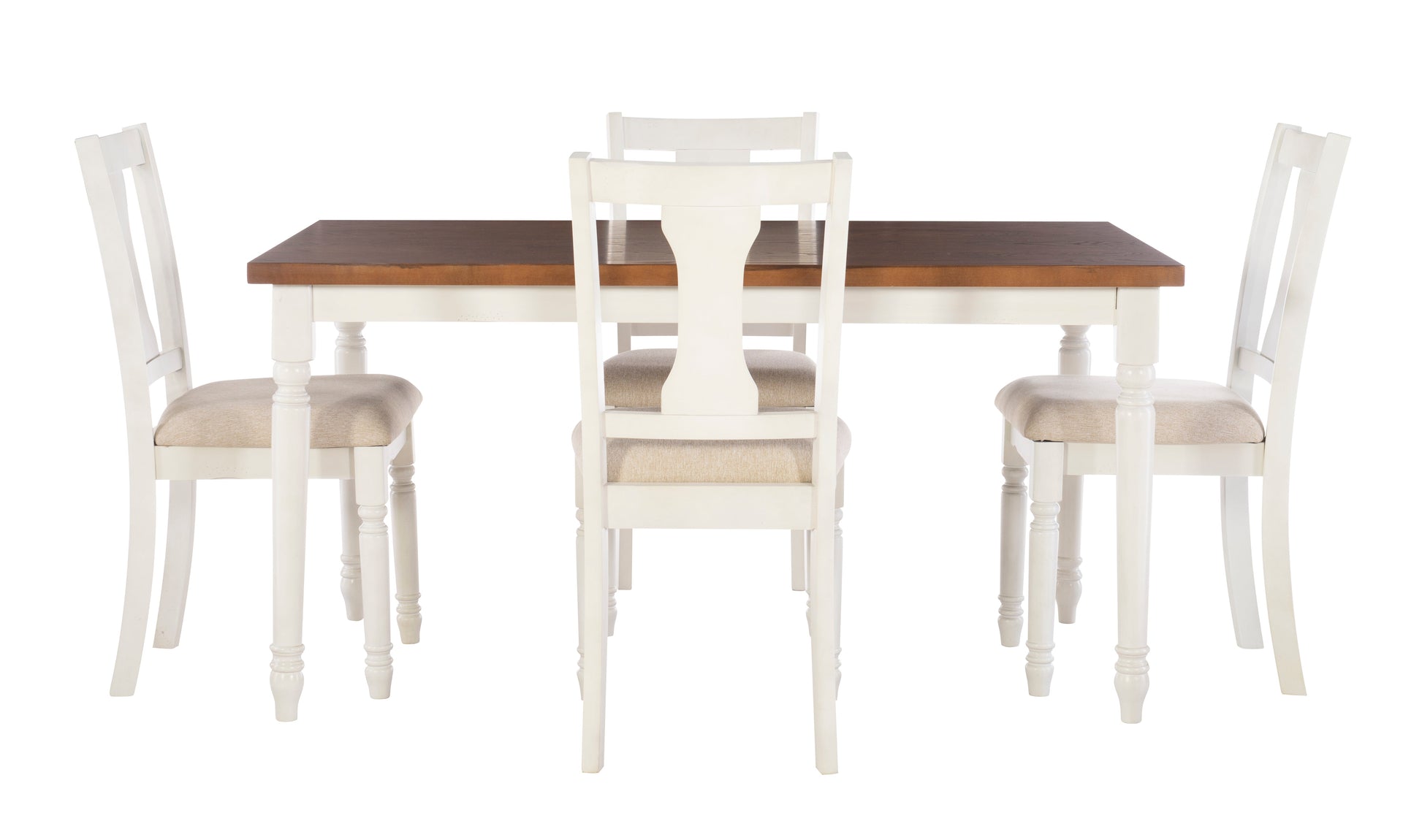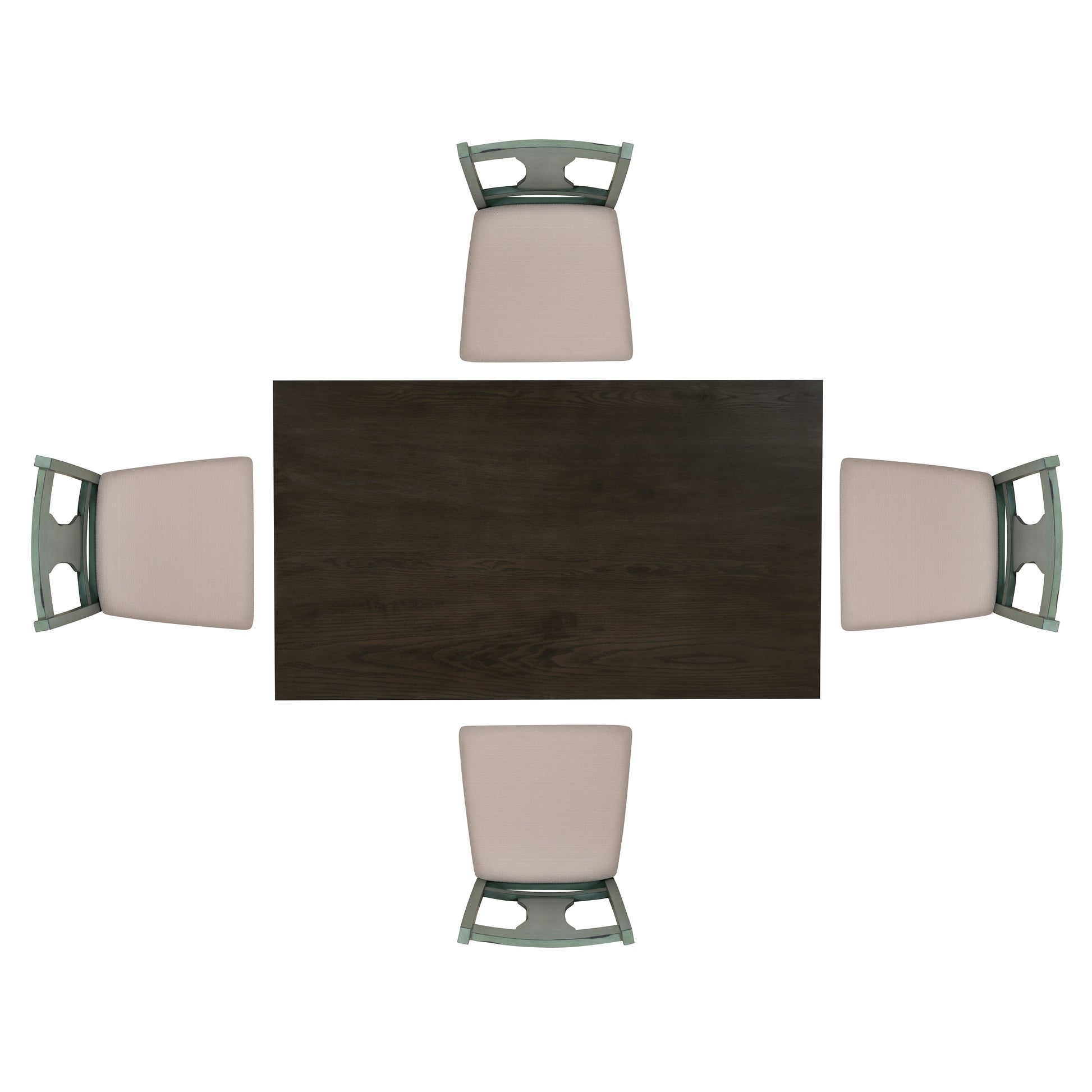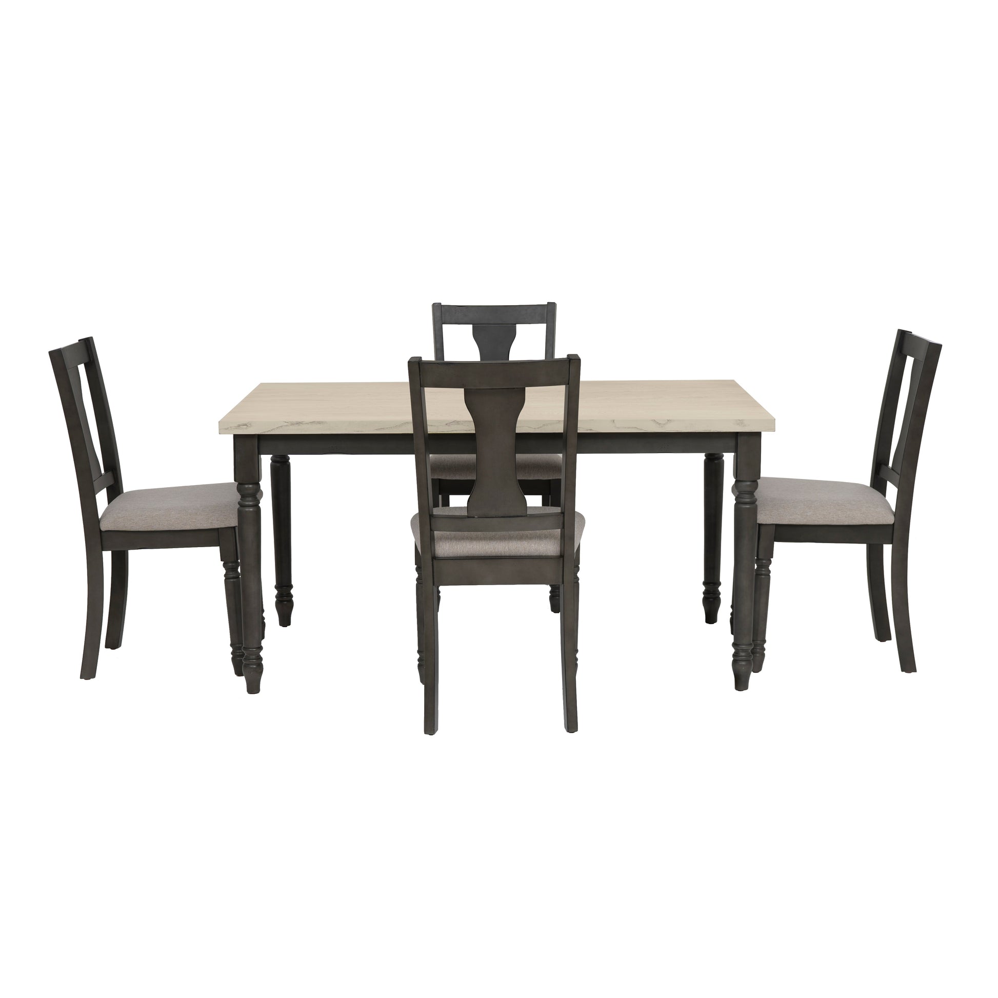 - Assises confortables : Les quatre chaises latérales sont dotées de sièges rembourrés recouverts d'un tissu doux 100 % polyester, offrant une expérience de repas confortable et accueillante.